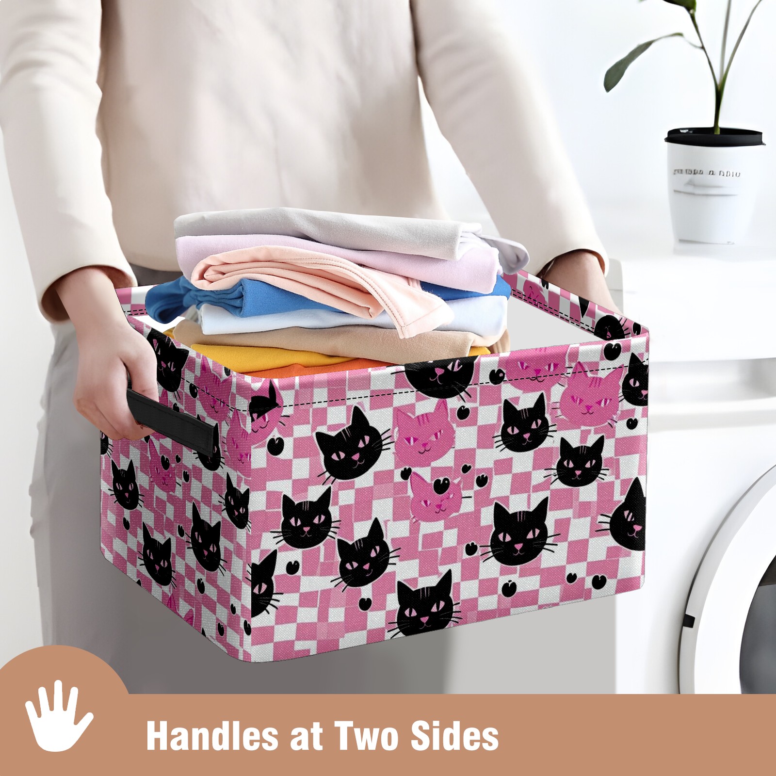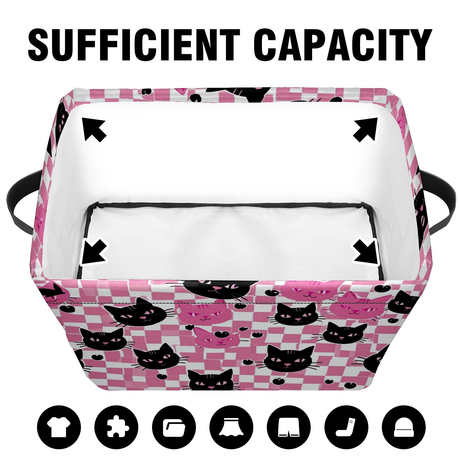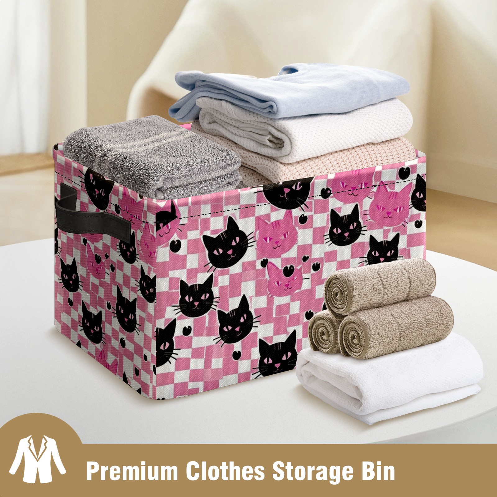 Foldable and Stackable Fabric Storage Basket for Home Organization with Handles, Decorative Closet Bins for Shelves and Laundry Storage( Pink Black Cat)