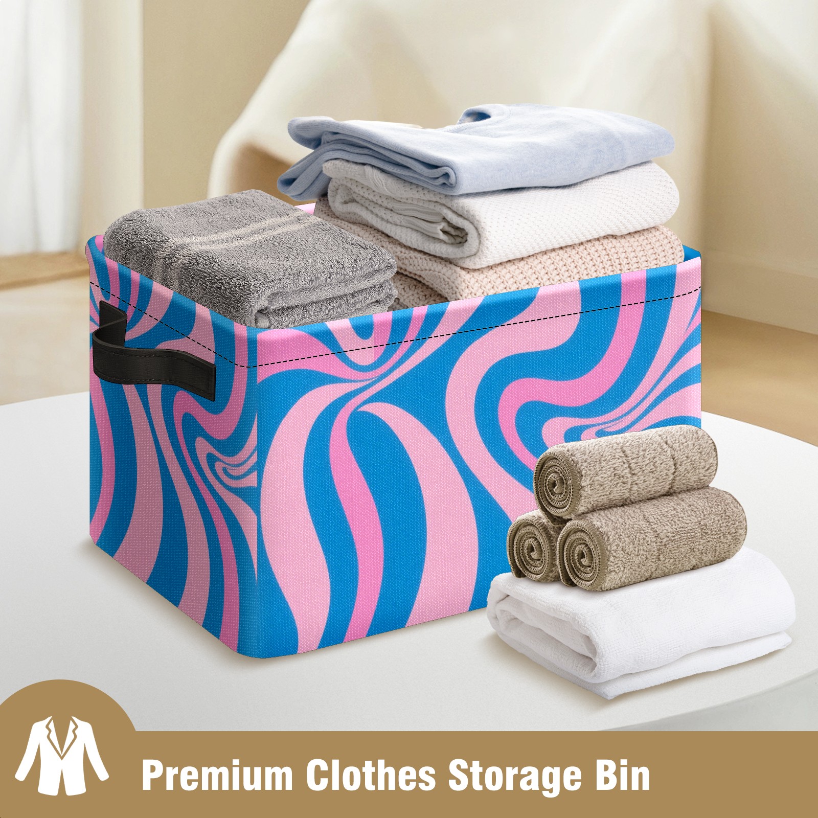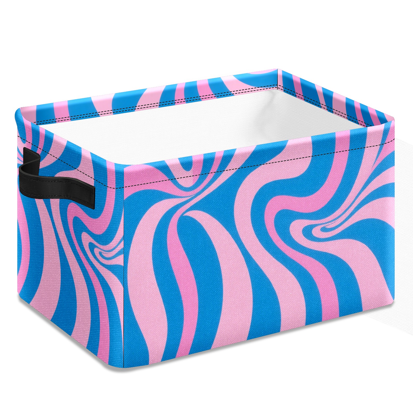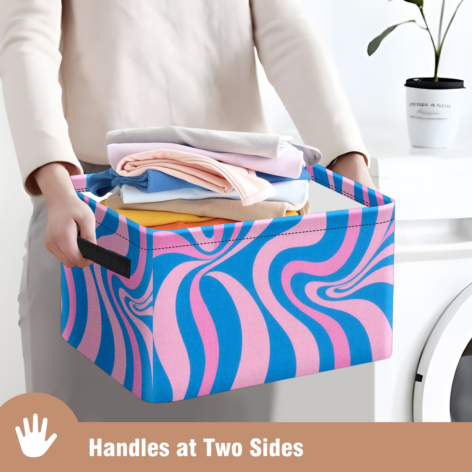 Foldable and Stackable Fabric Storage Basket for Home Organization with Handles, Decorative Closet Bins for Shelves and Laundry Storage( Pink Blue Wavy)