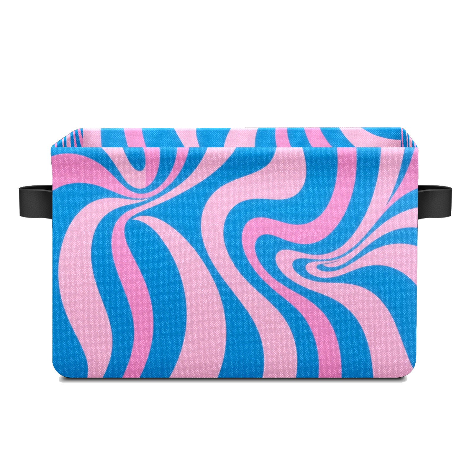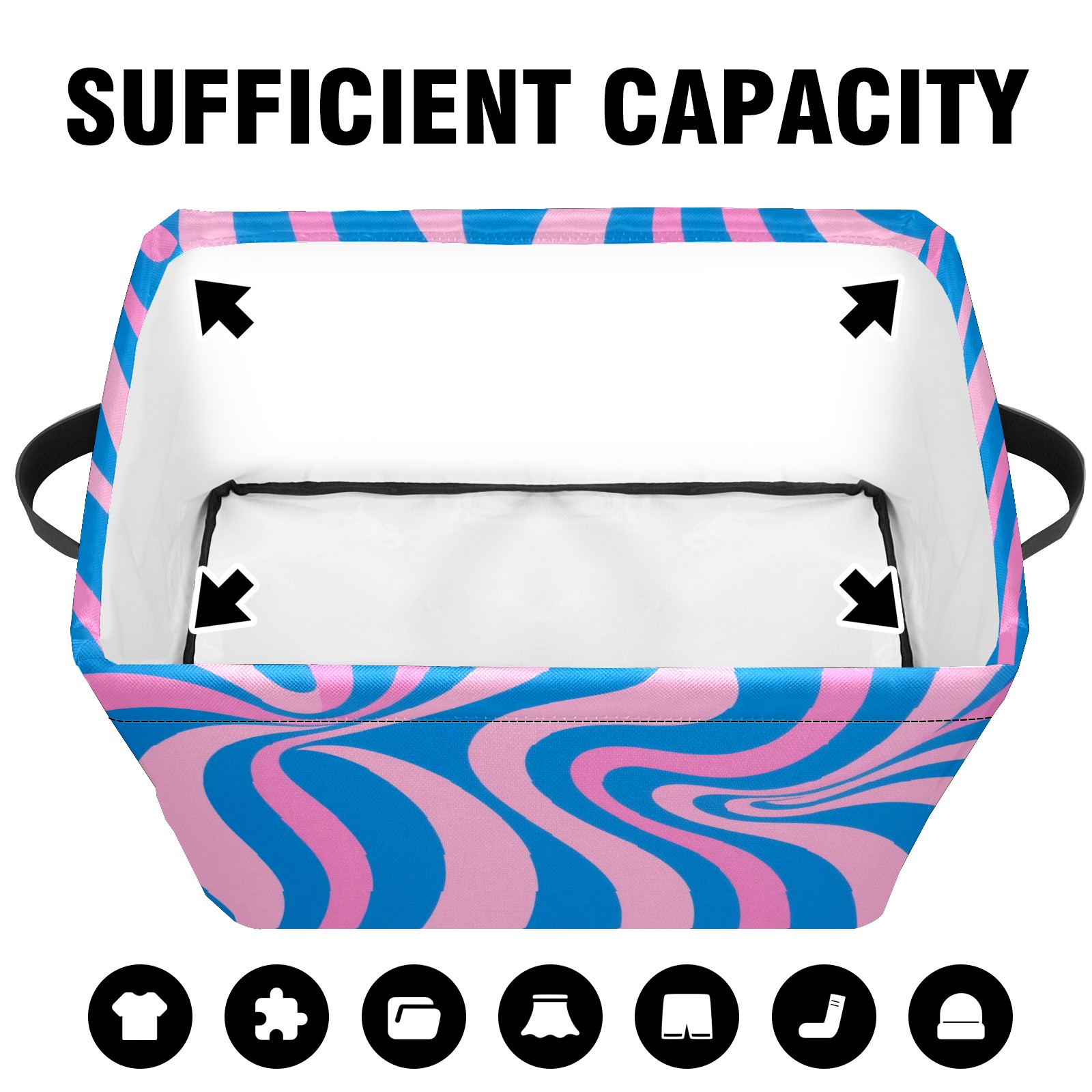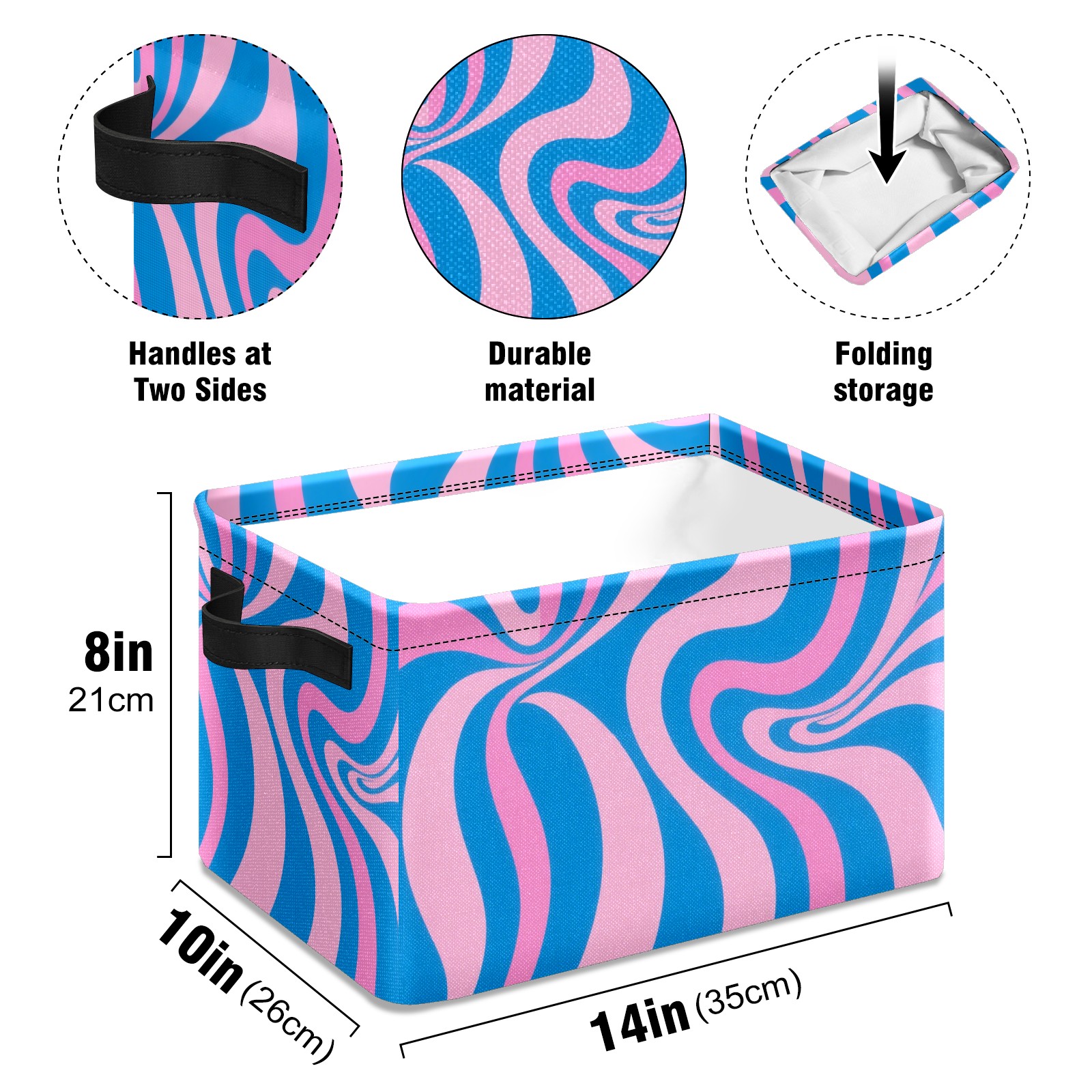 Foldable and Stackable Fabric Storage Basket for Home Organization with Handles, Decorative Closet Bins for Shelves and Laundry Storage( Pink Blue Wavy)
