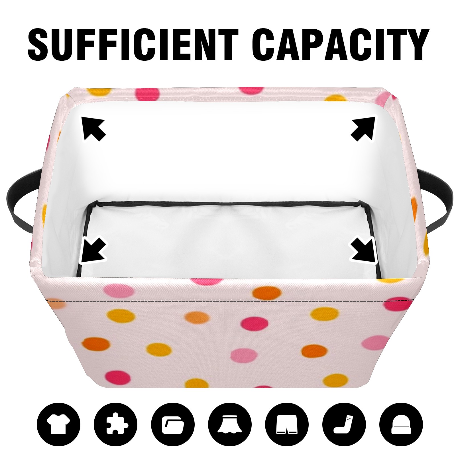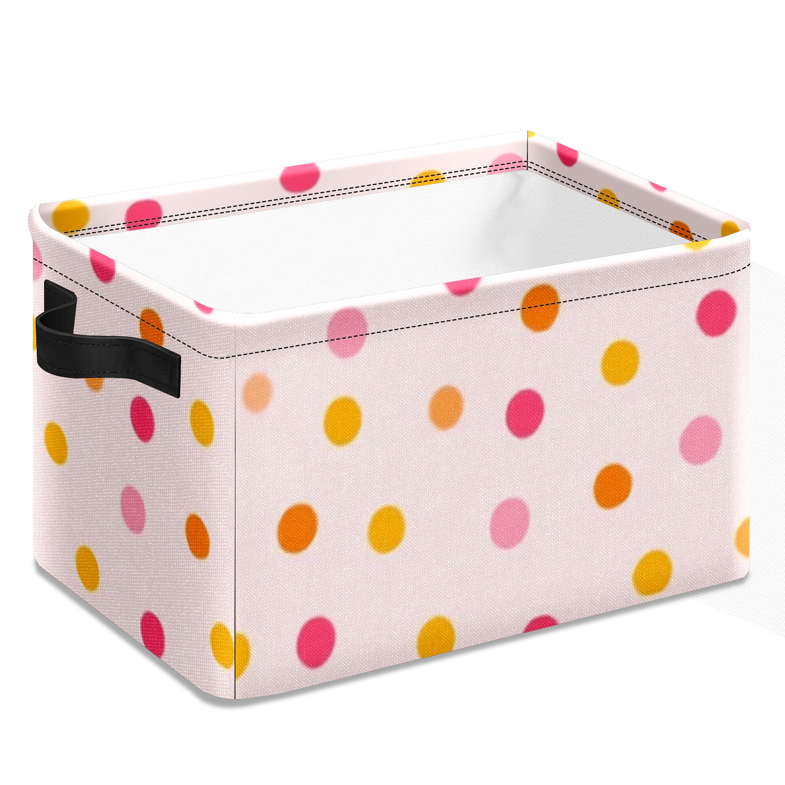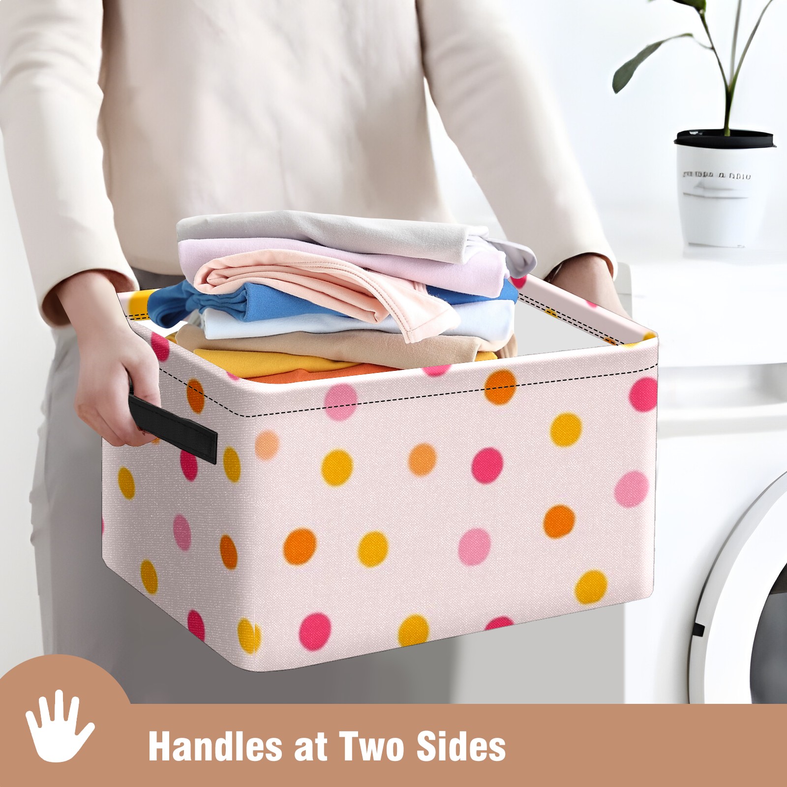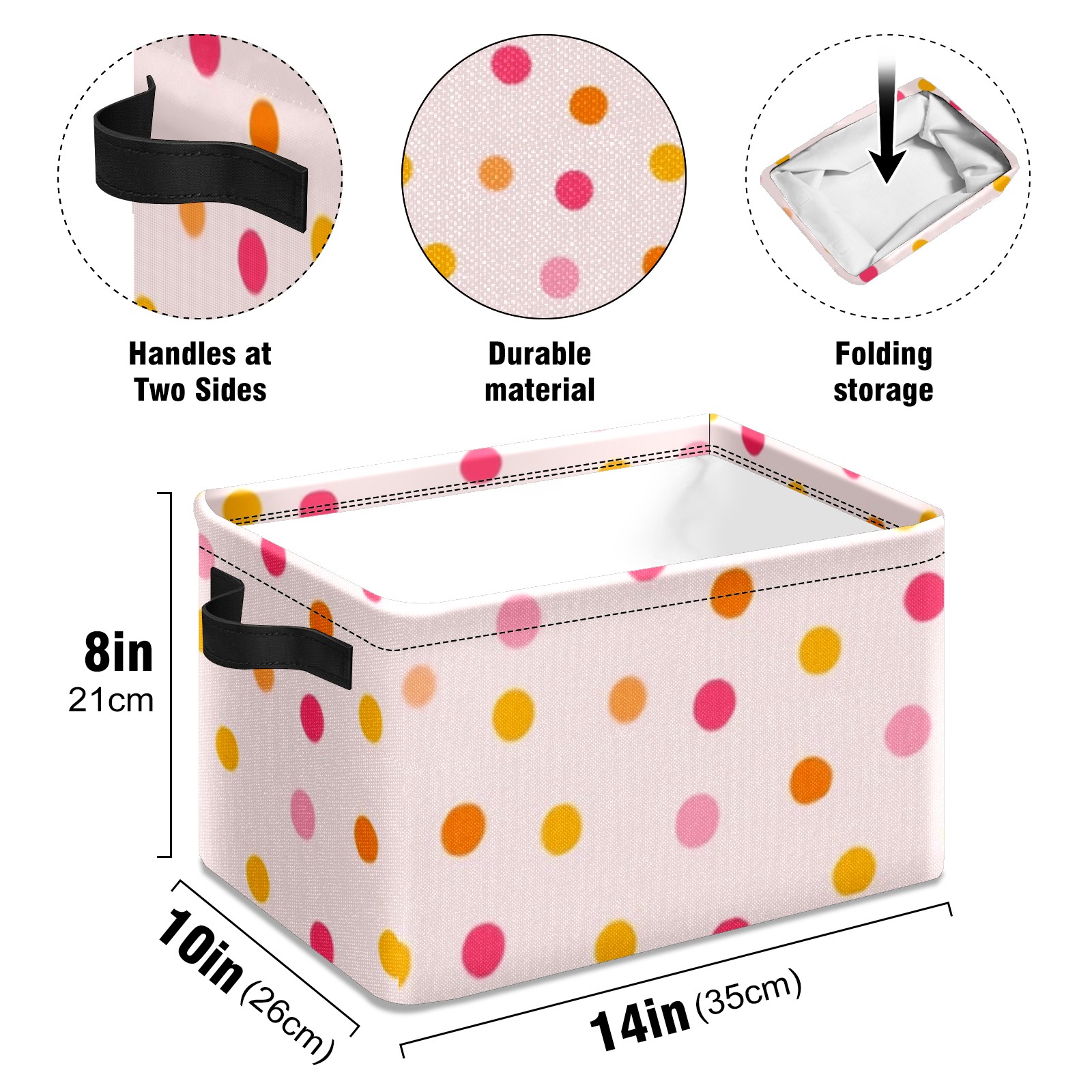 Foldable and Stackable Fabric Storage Basket for Home Organization with Handles, Decorative Closet Bins for Shelves and Laundry Storage( Pink Polka Dot)