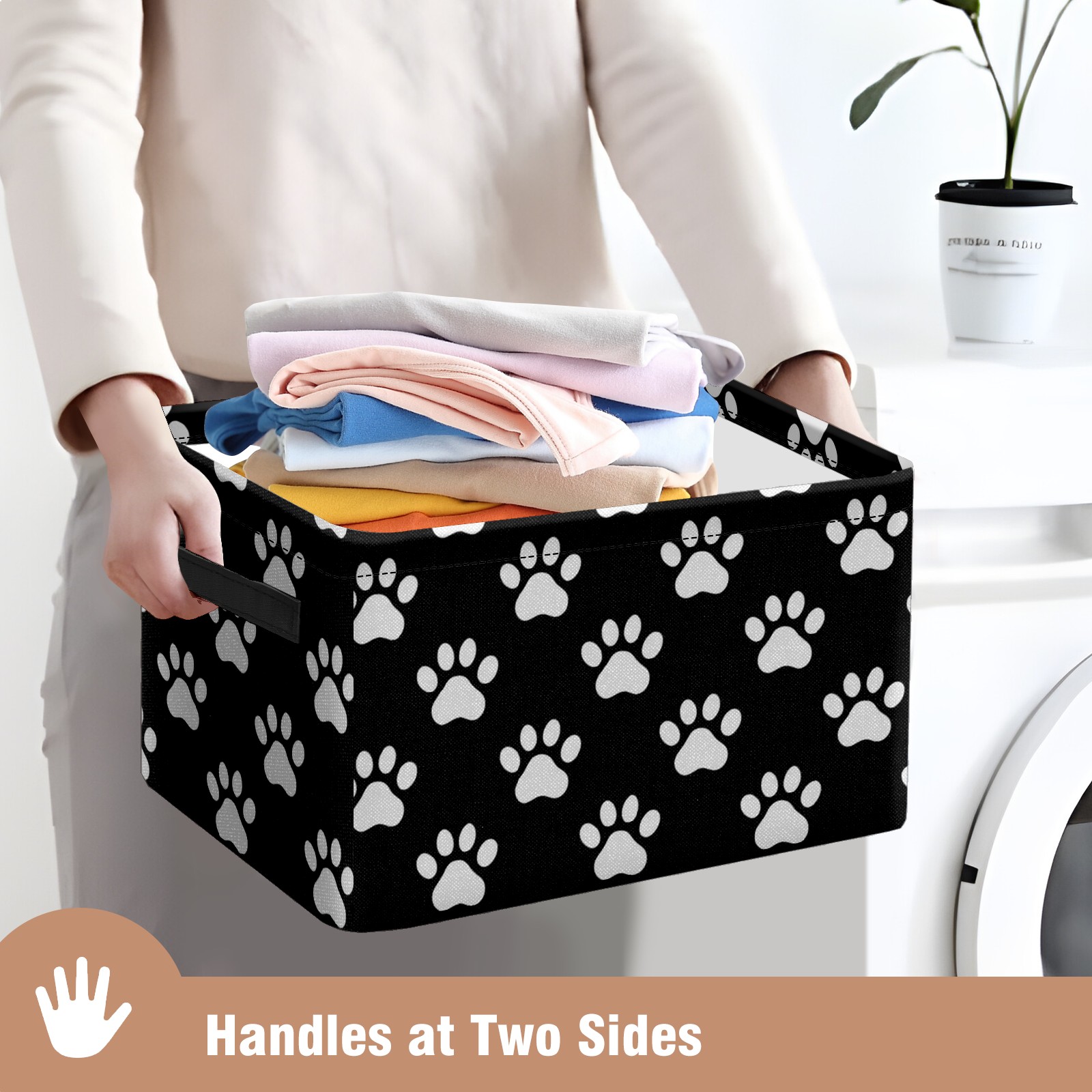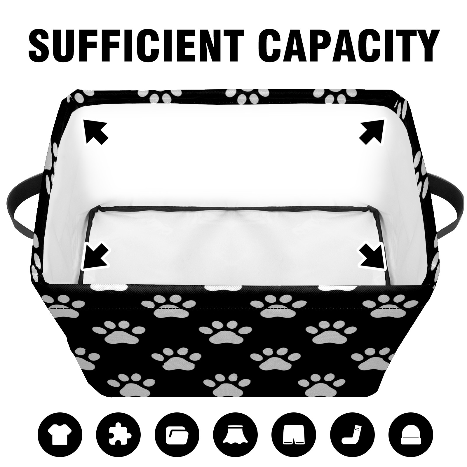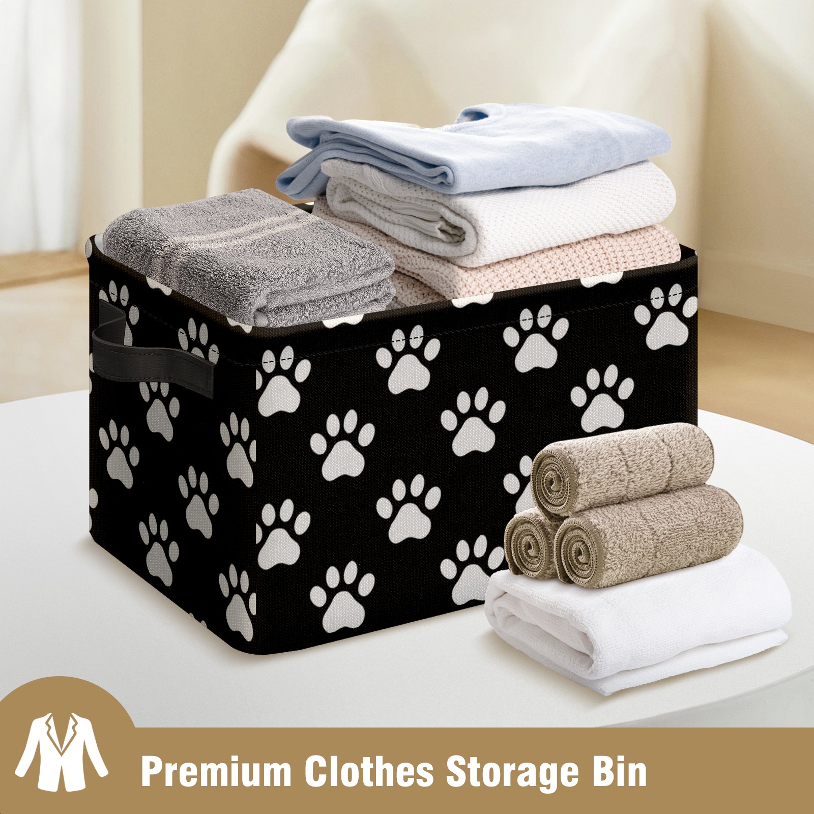 Foldable and Stackable Fabric Storage Basket for Home Organization with Handles, Decorative Closet Bins for Shelves and Laundry Storage( Paw Print)