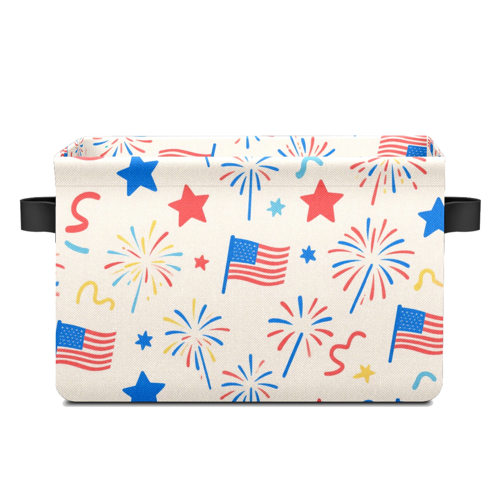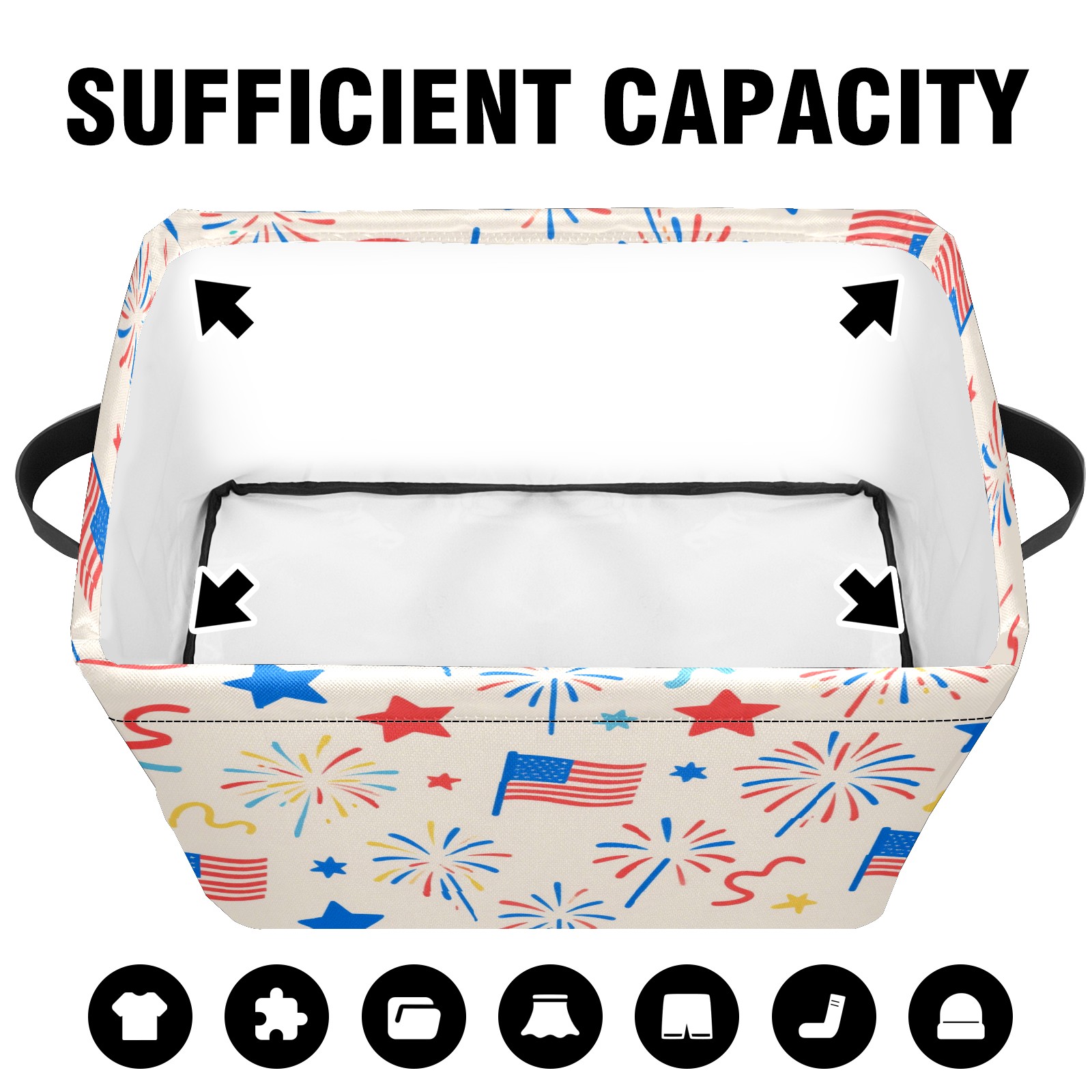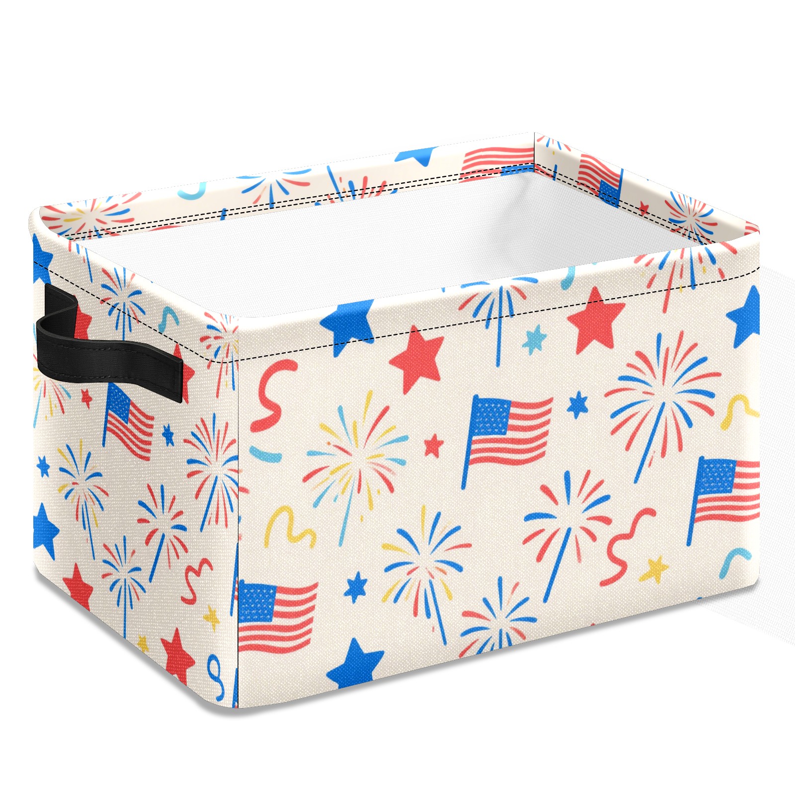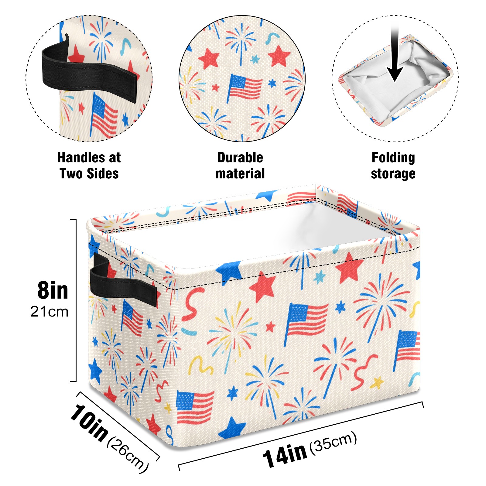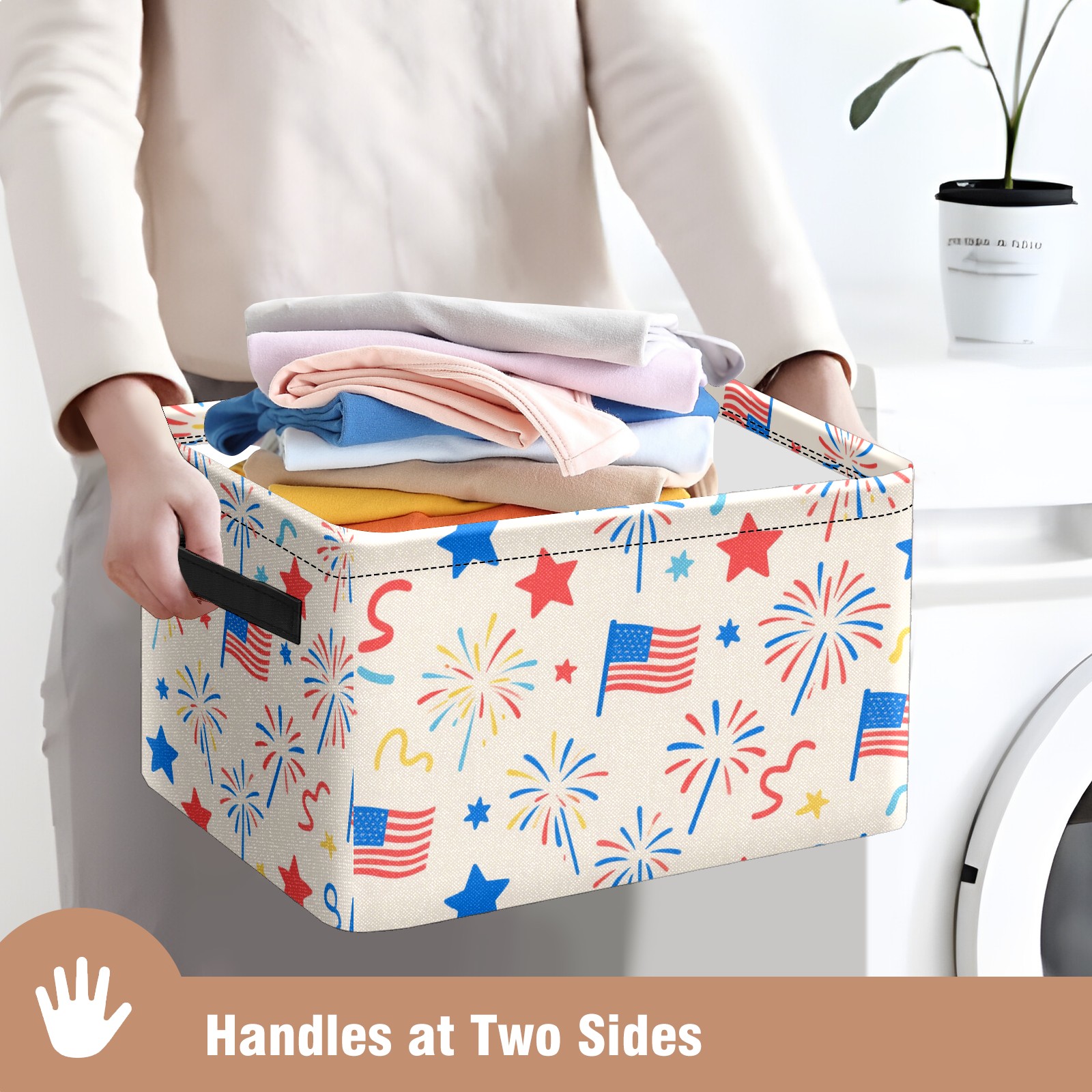 Foldable and Stackable Fabric Storage Basket for Home Organization with Handles, Decorative Closet Bins for Shelves and Laundry Storage( American Flag Firework)