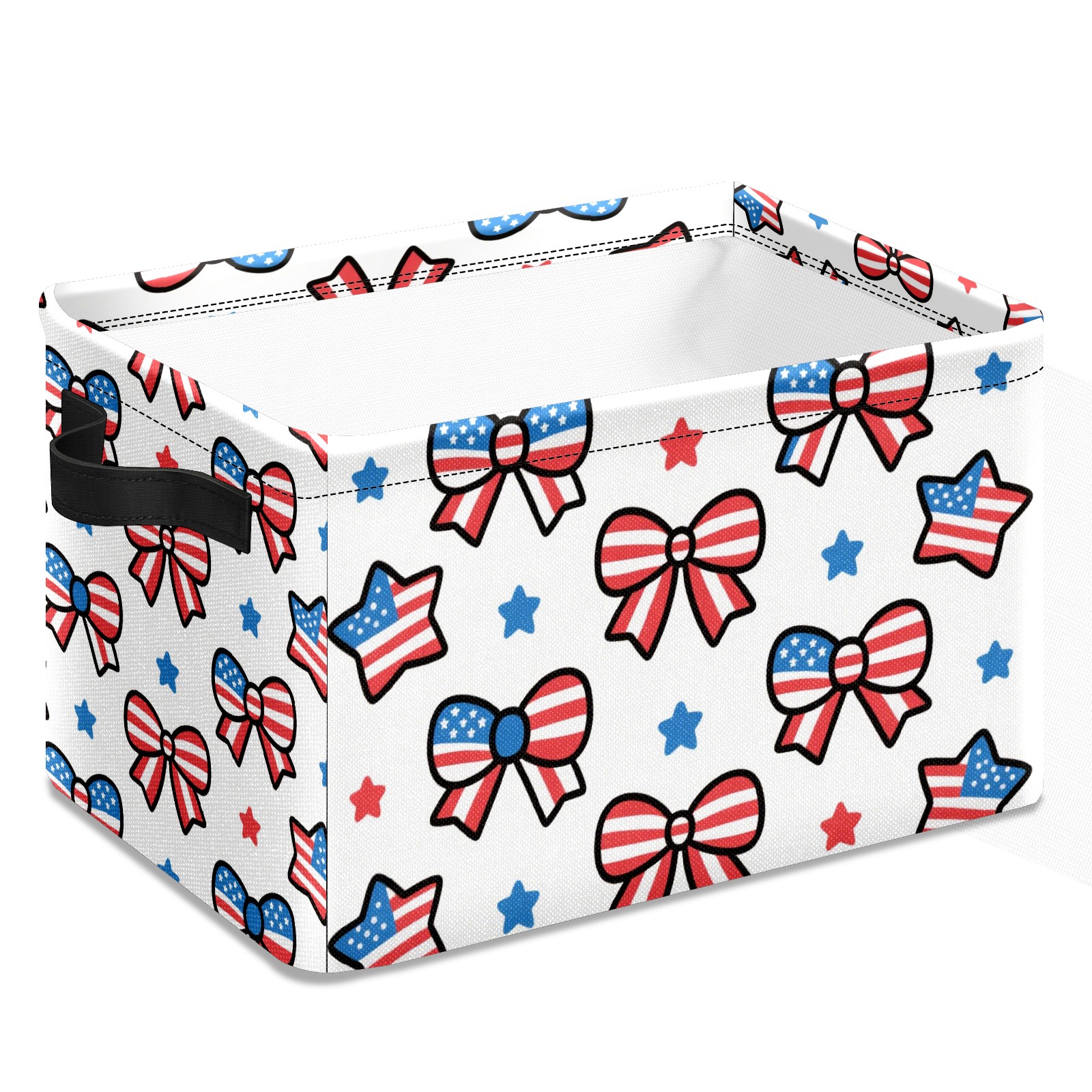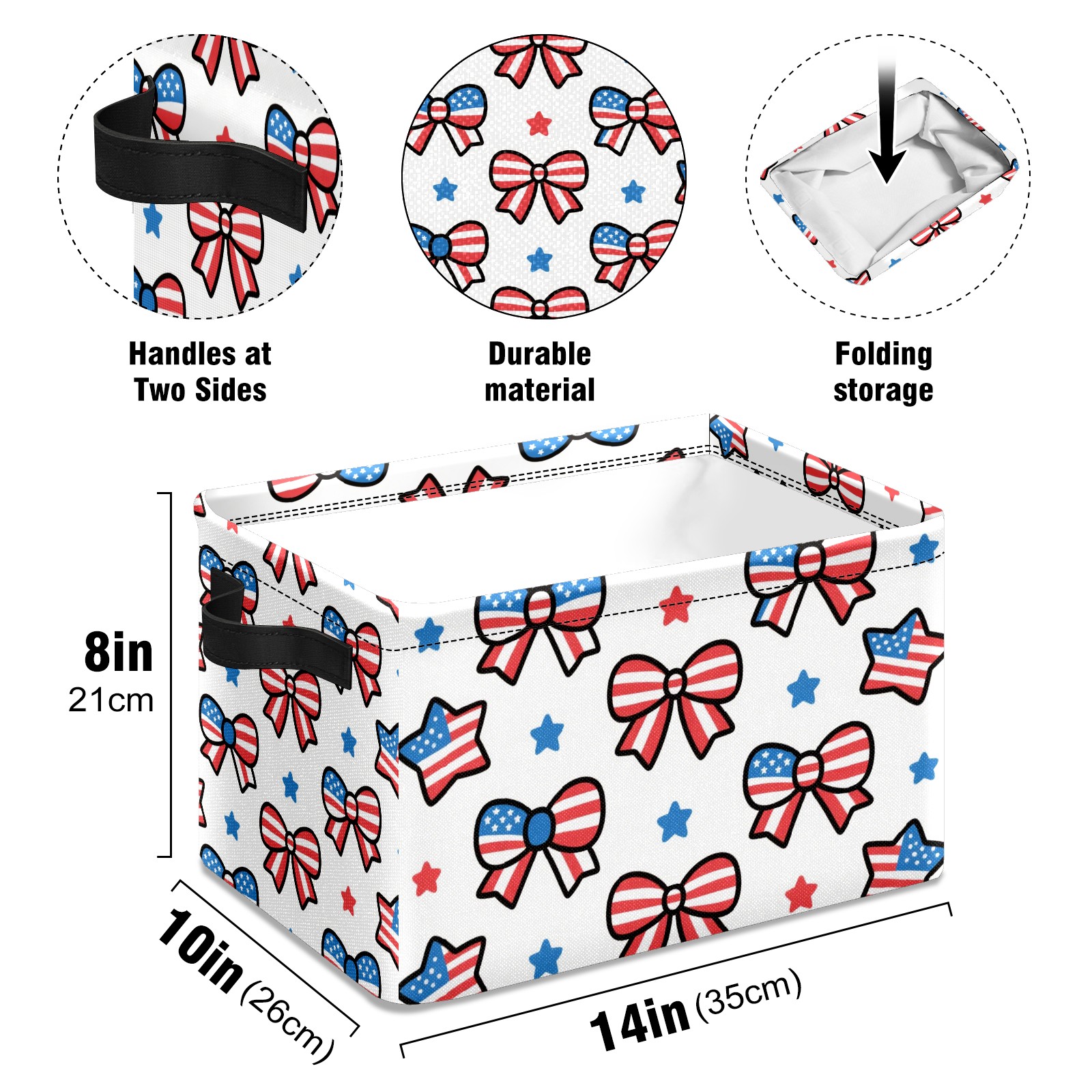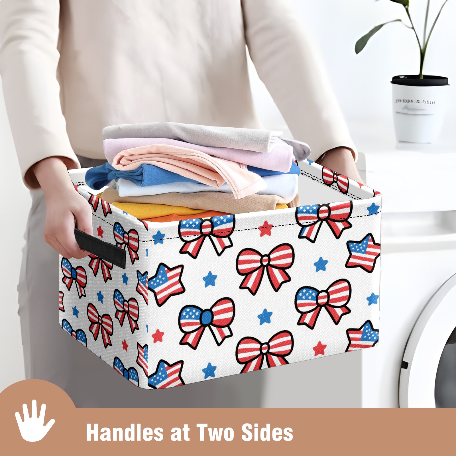 Foldable and Stackable Fabric Storage Basket for Home Organization with Handles, Decorative Closet Bins for Shelves and Laundry Storage( American Flag Star Bow)