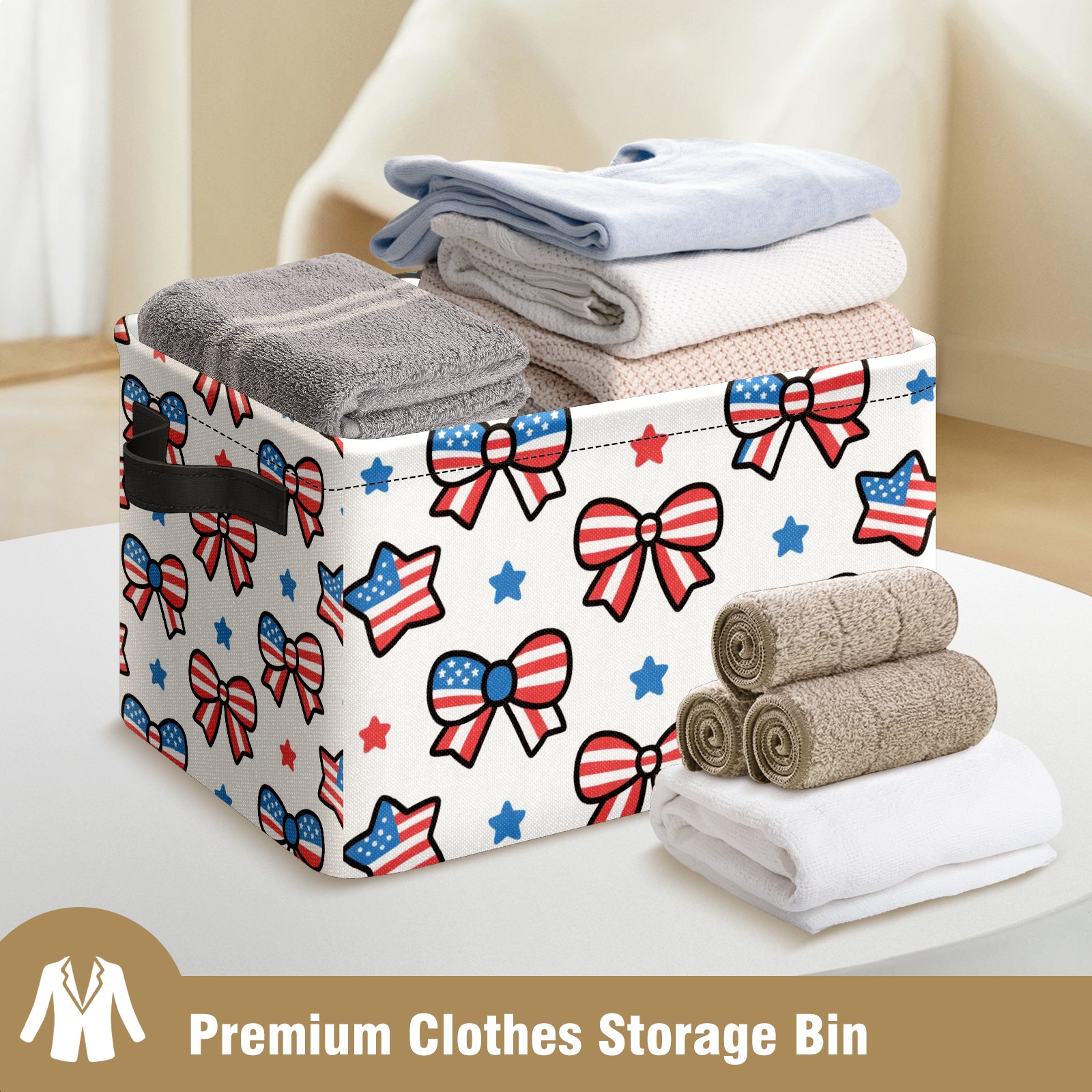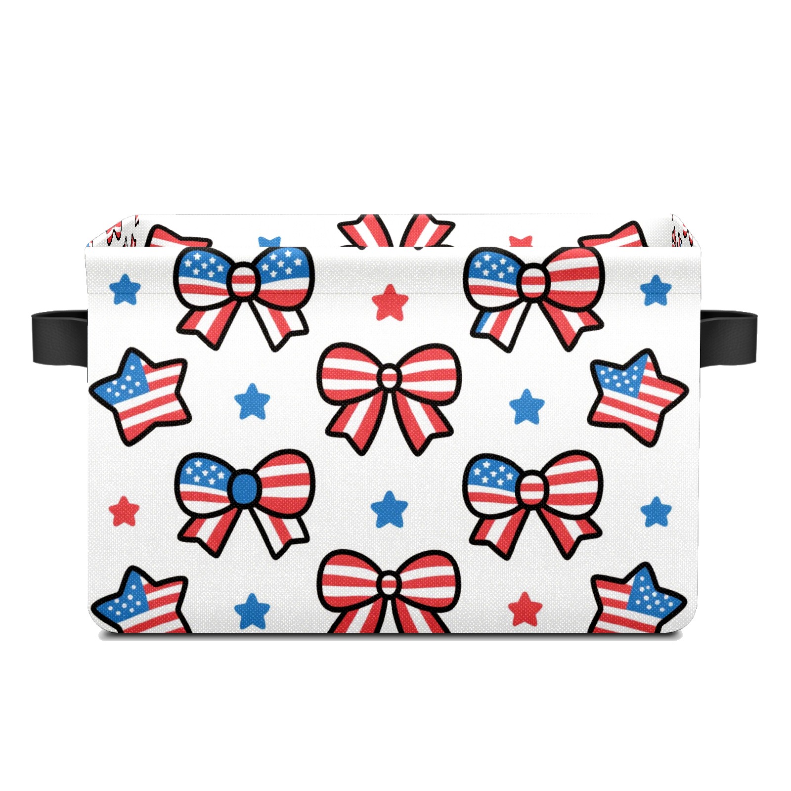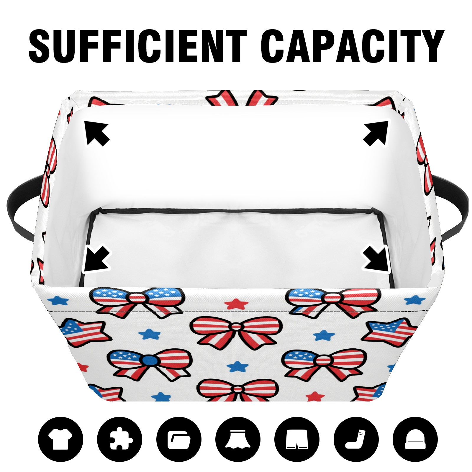 Foldable and Stackable Fabric Storage Basket for Home Organization with Handles, Decorative Closet Bins for Shelves and Laundry Storage( American Flag Star Bow)