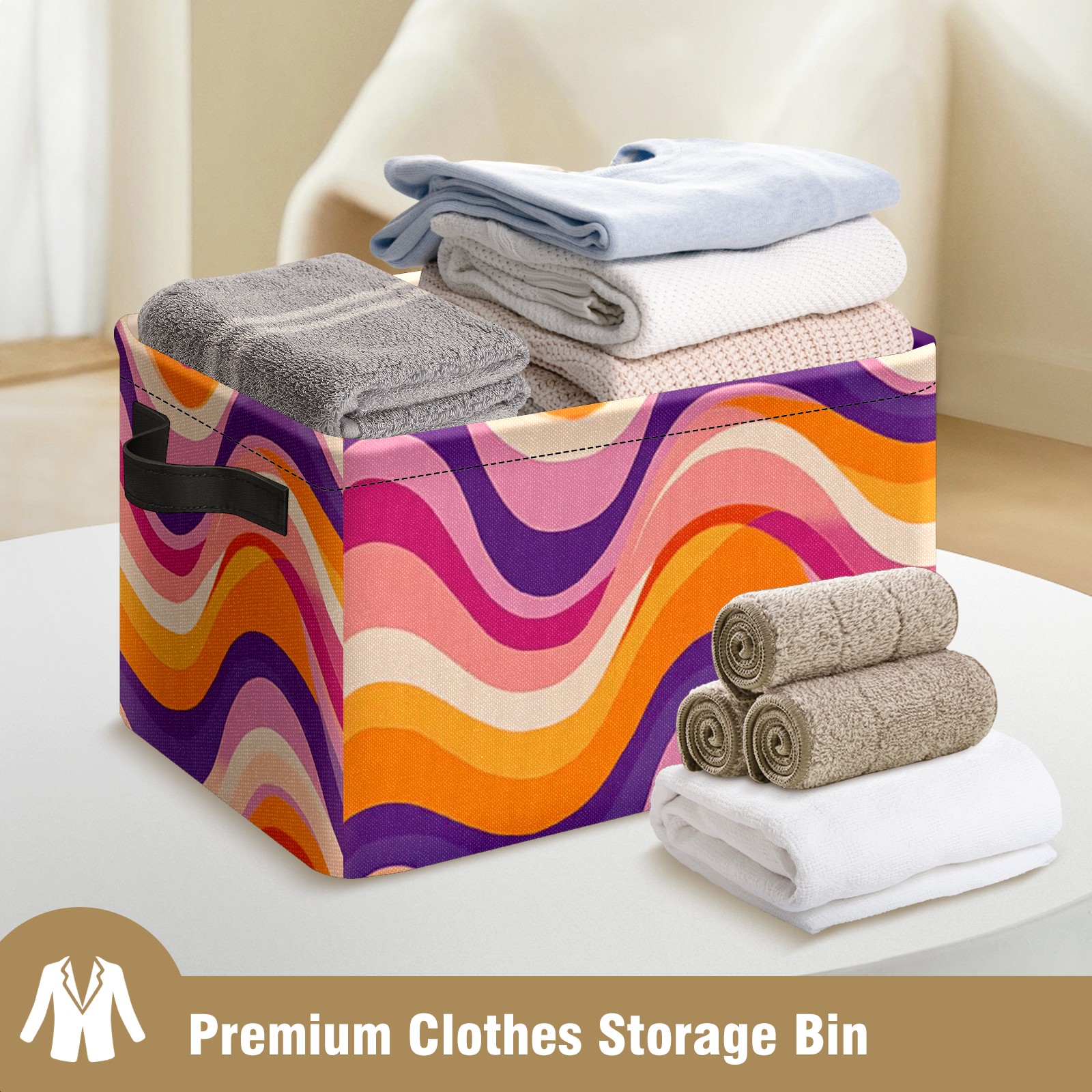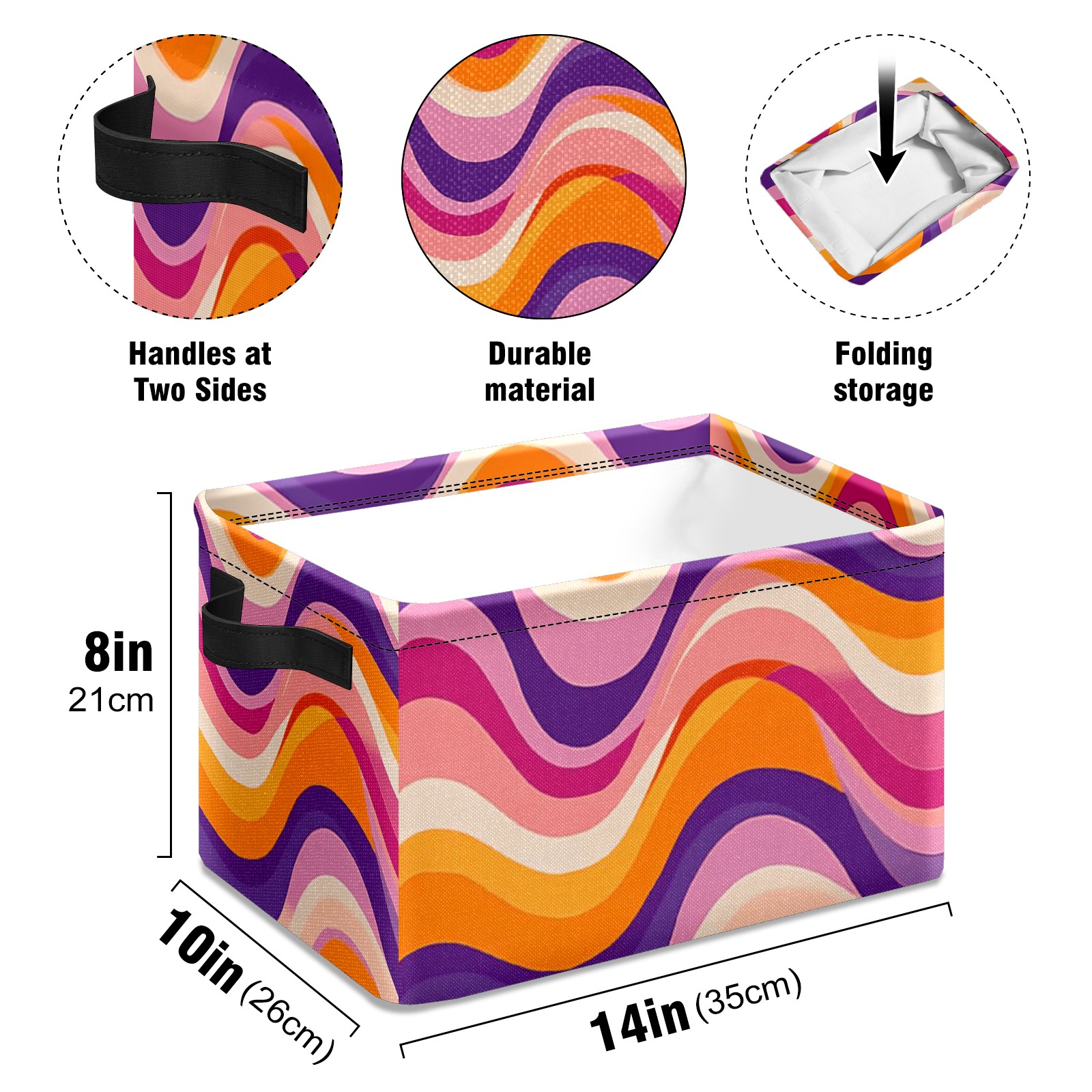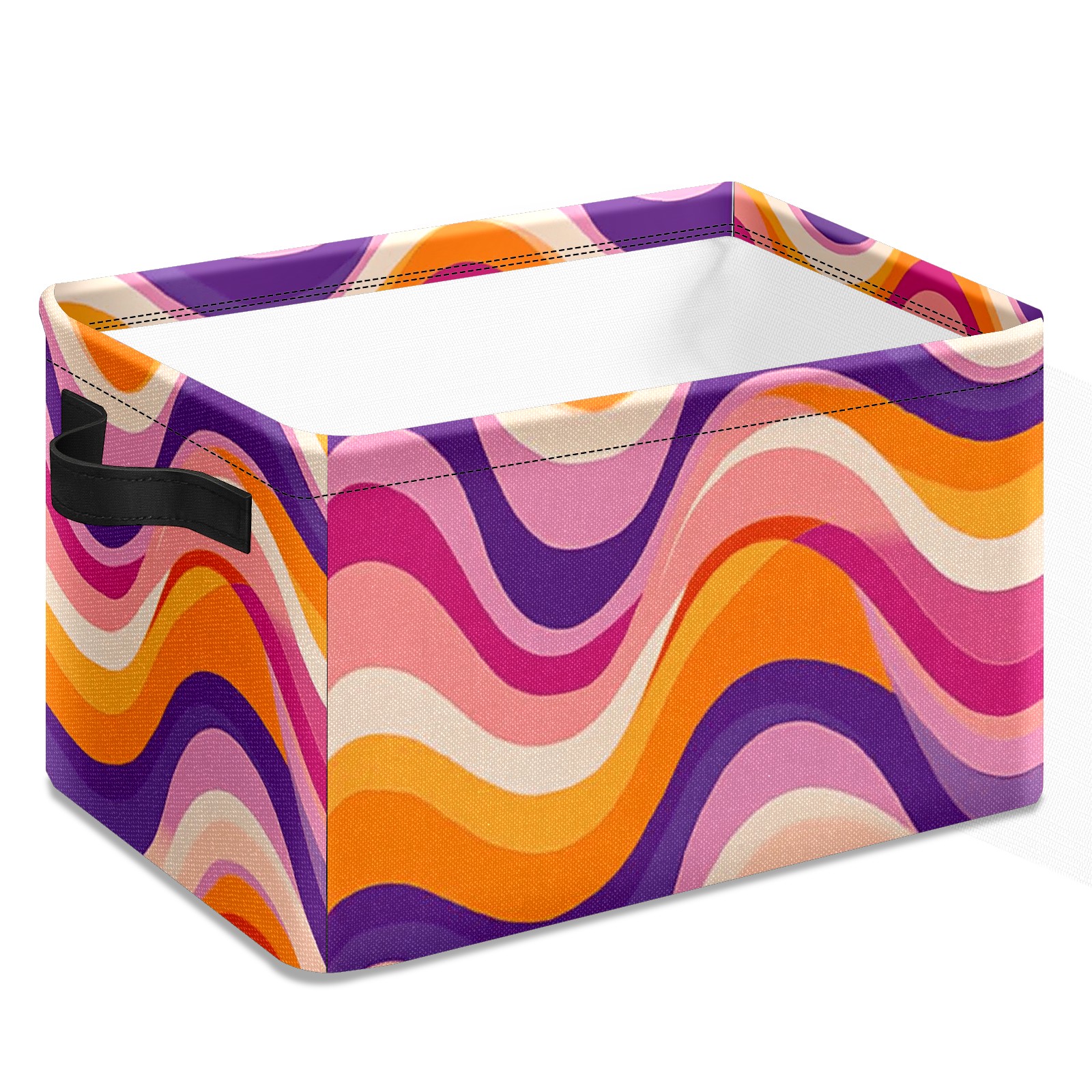 Foldable and Stackable Fabric Storage Basket for Home Organization with Handles, Decorative Closet Bins for Shelves and Laundry Storage( Groovy Wavy)
