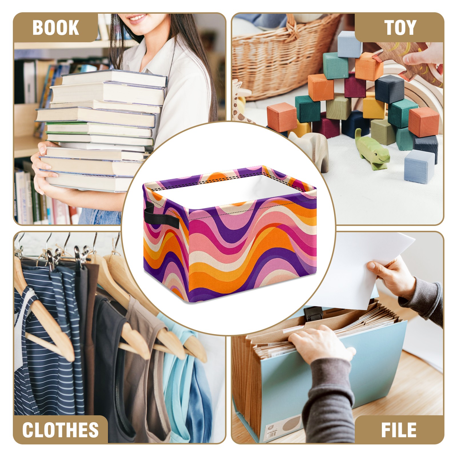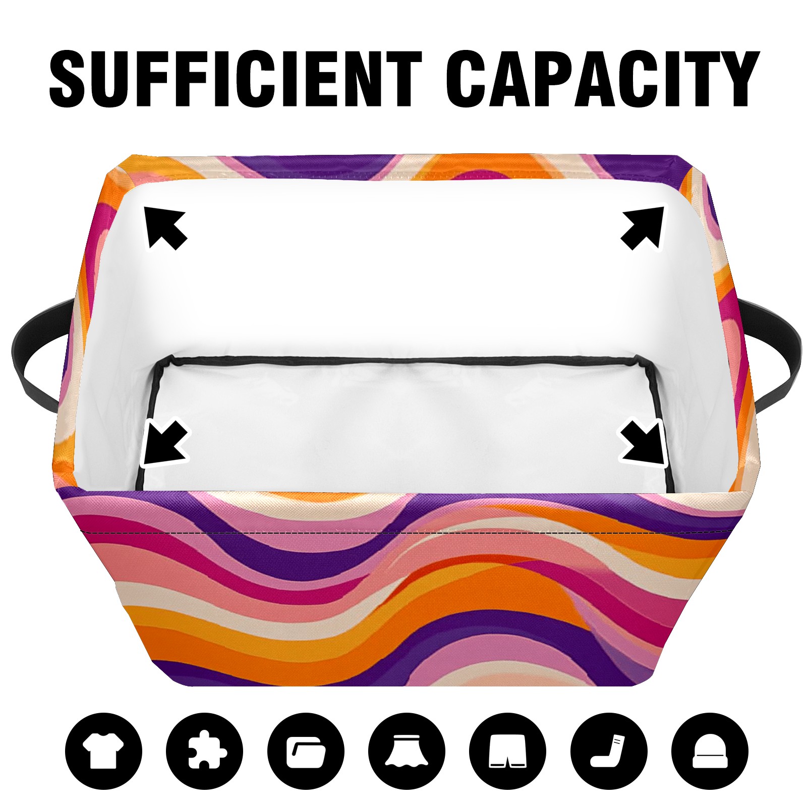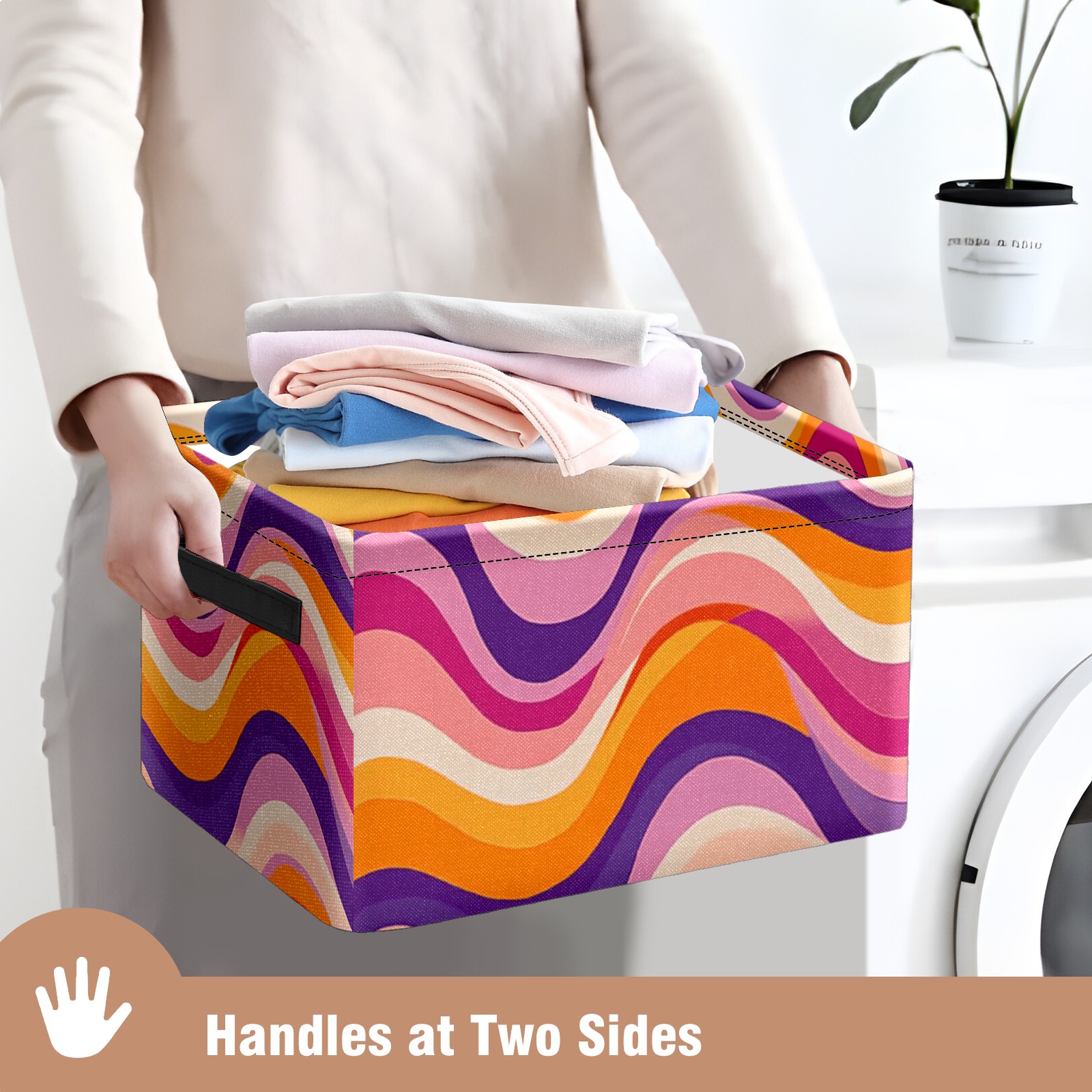 Foldable and Stackable Fabric Storage Basket for Home Organization with Handles, Decorative Closet Bins for Shelves and Laundry Storage( Groovy Wavy)