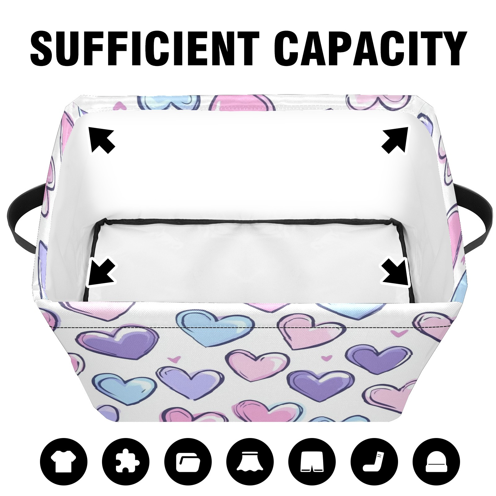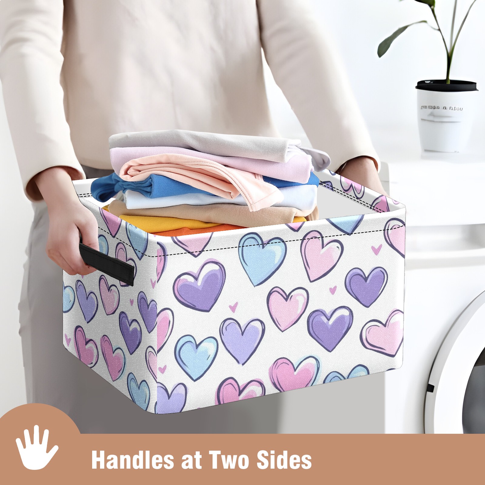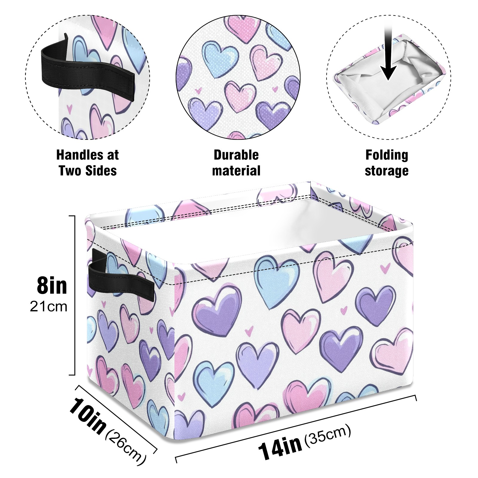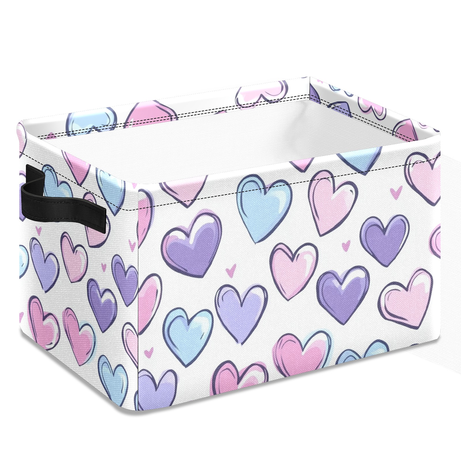 Foldable and Stackable Fabric Storage Basket for Home Organization with Handles, Decorative Closet Bins for Shelves and Laundry Storage( Colorful Hearts)