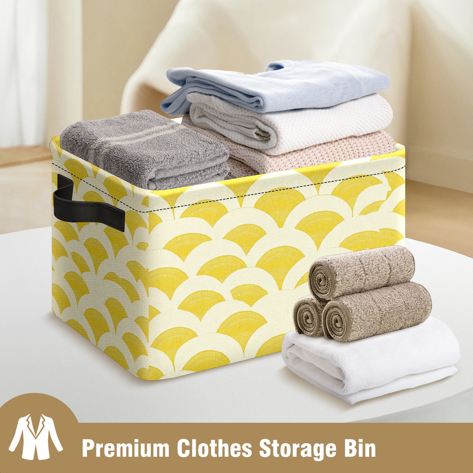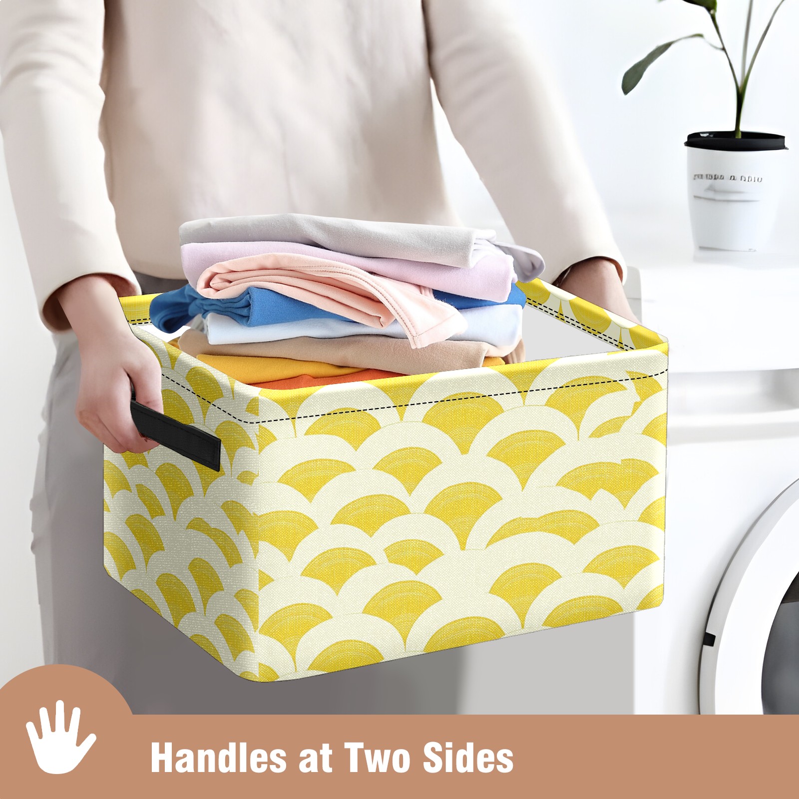 Foldable and Stackable Fabric Storage Basket for Home Organization with Handles, Decorative Closet Bins for Shelves and Laundry Storage( Japanese-inspired Geometric)