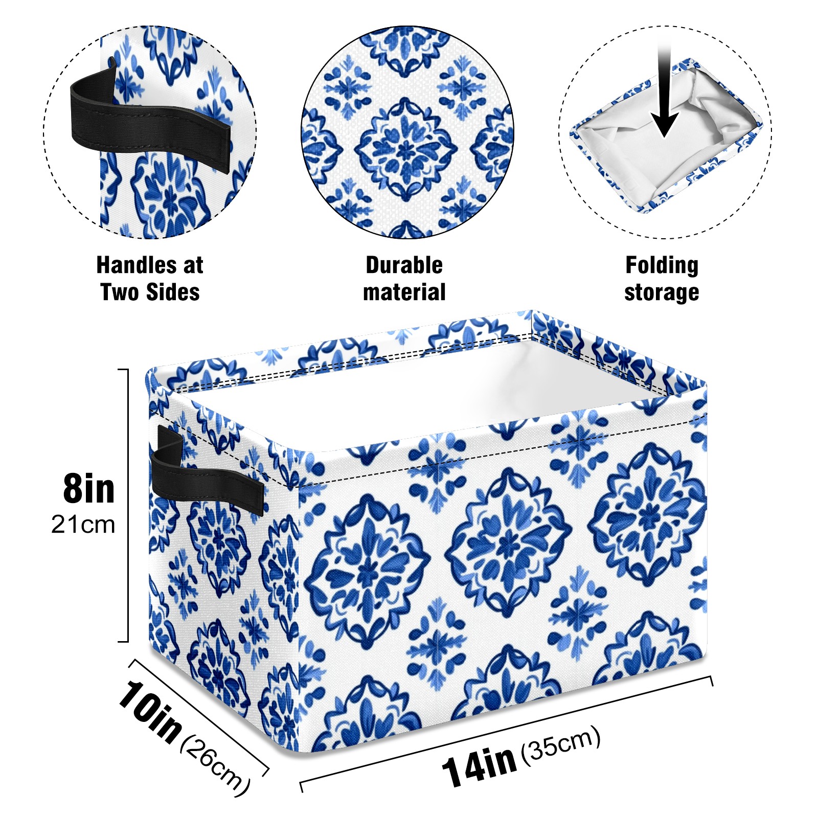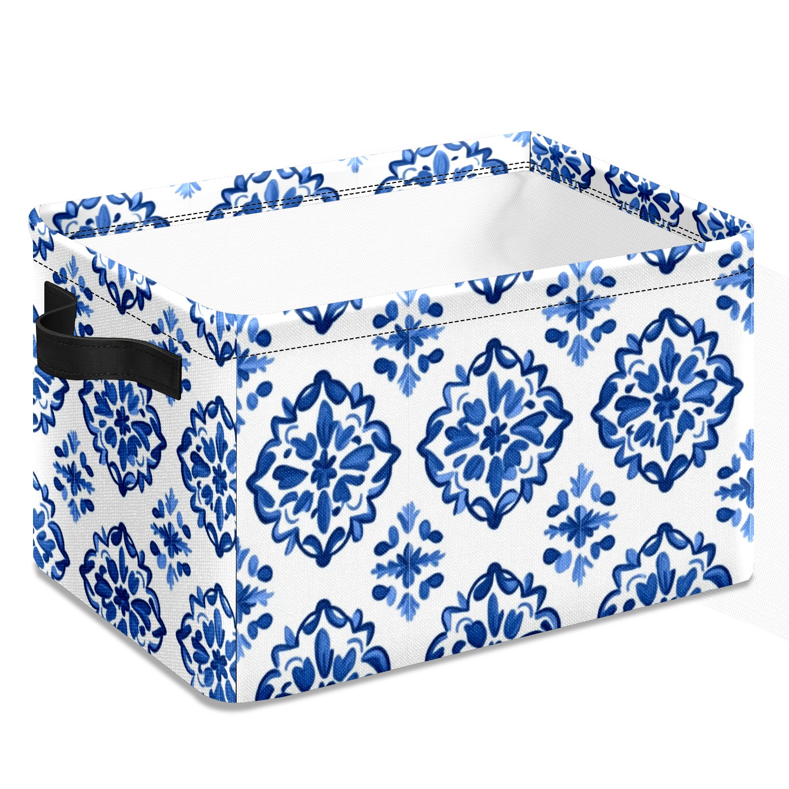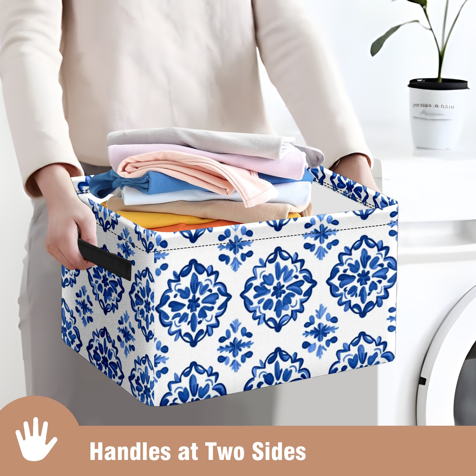 Foldable and Stackable Fabric Storage Basket for Home Organization with Handles, Decorative Closet Bins for Shelves and Laundry Storage( Blue And White Tile)