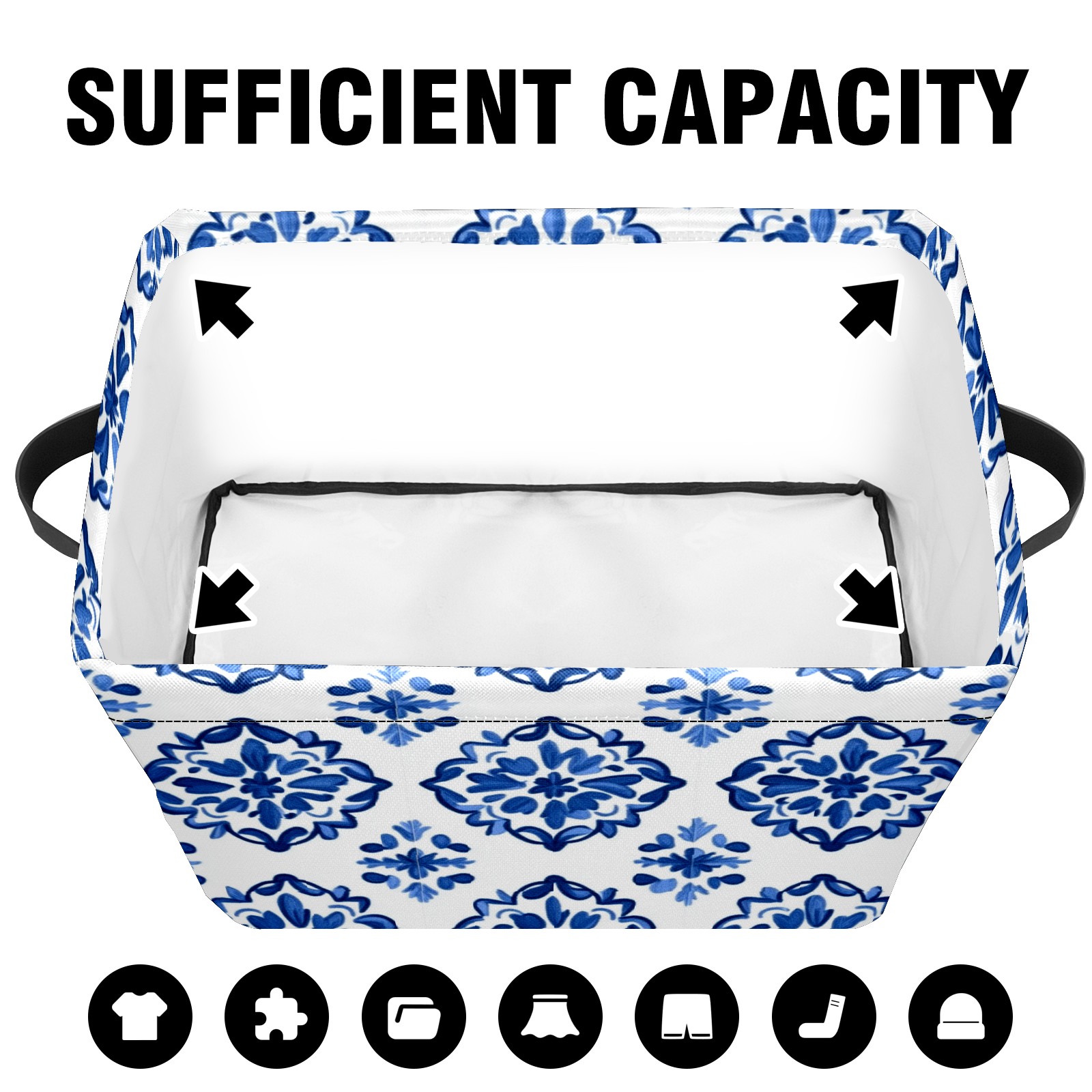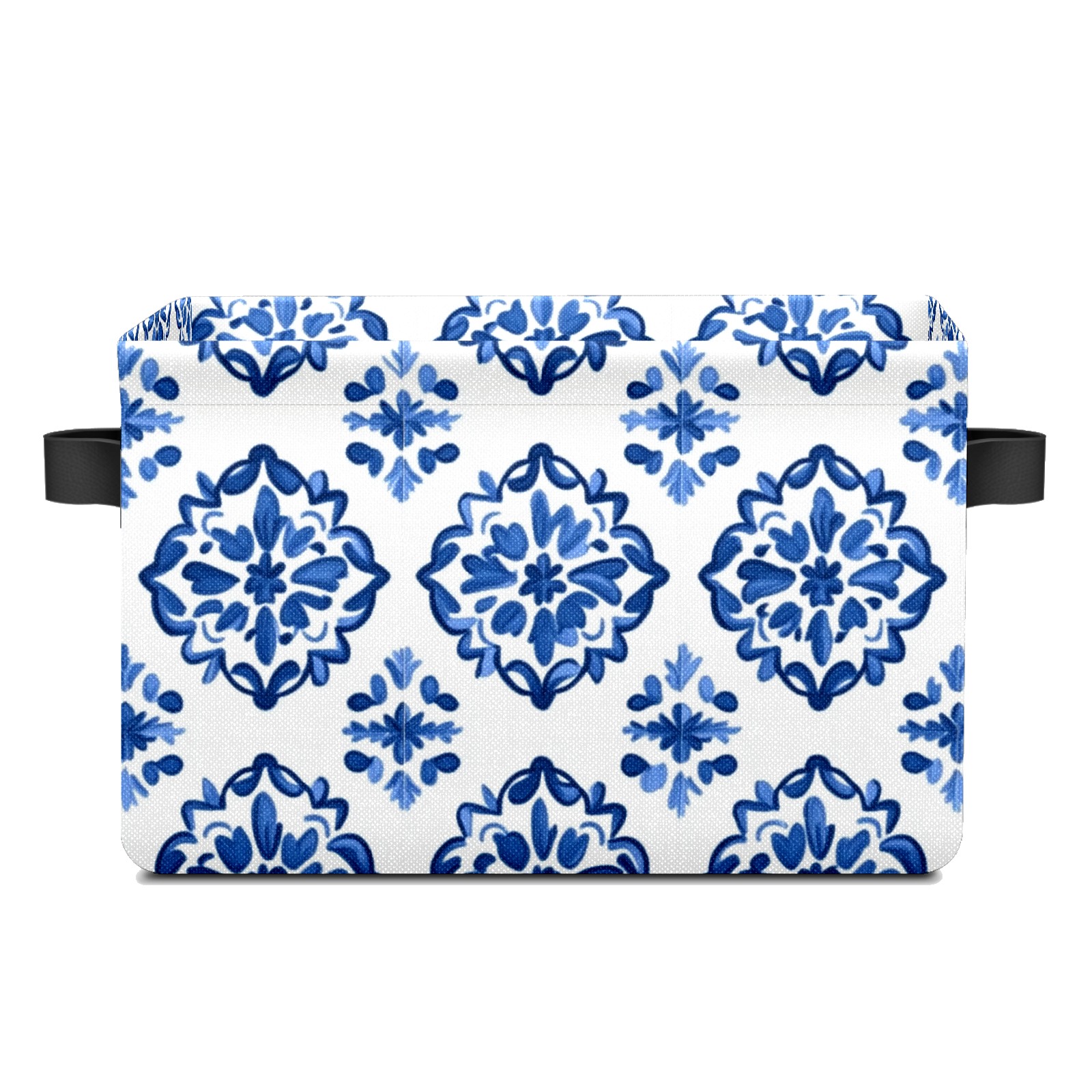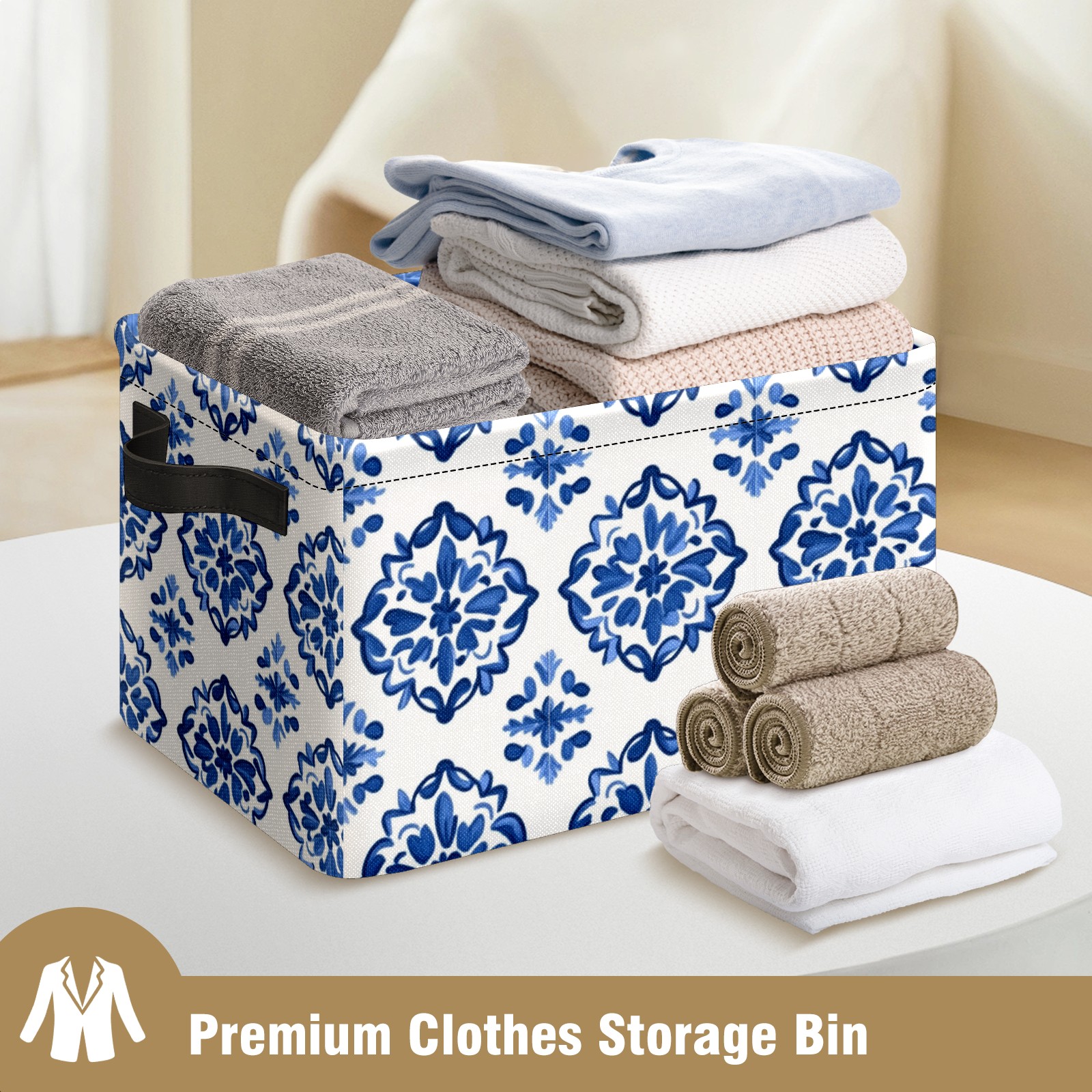 Foldable and Stackable Fabric Storage Basket for Home Organization with Handles, Decorative Closet Bins for Shelves and Laundry Storage( Blue And White Tile)