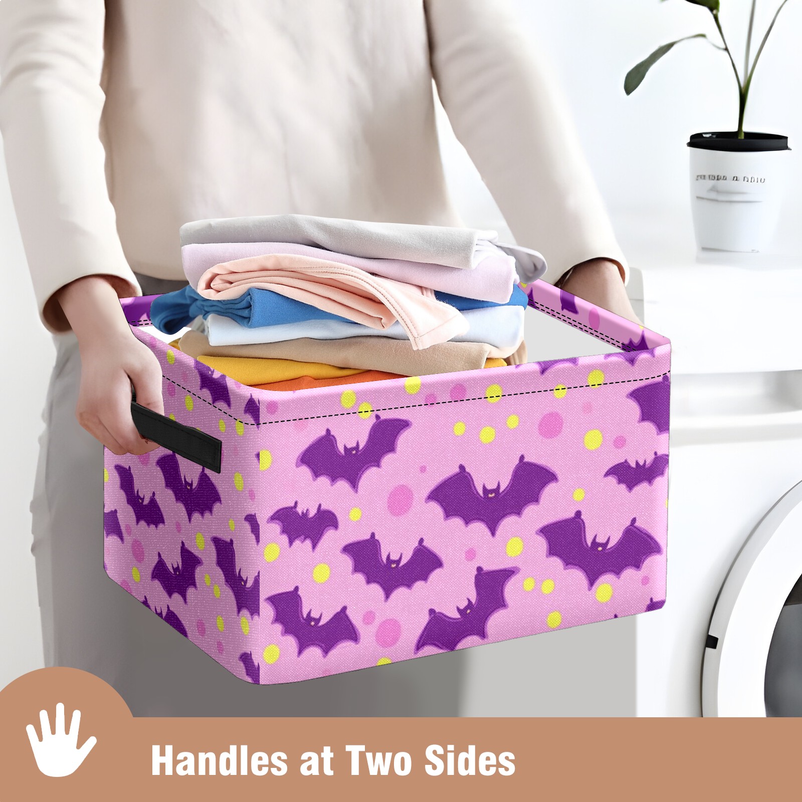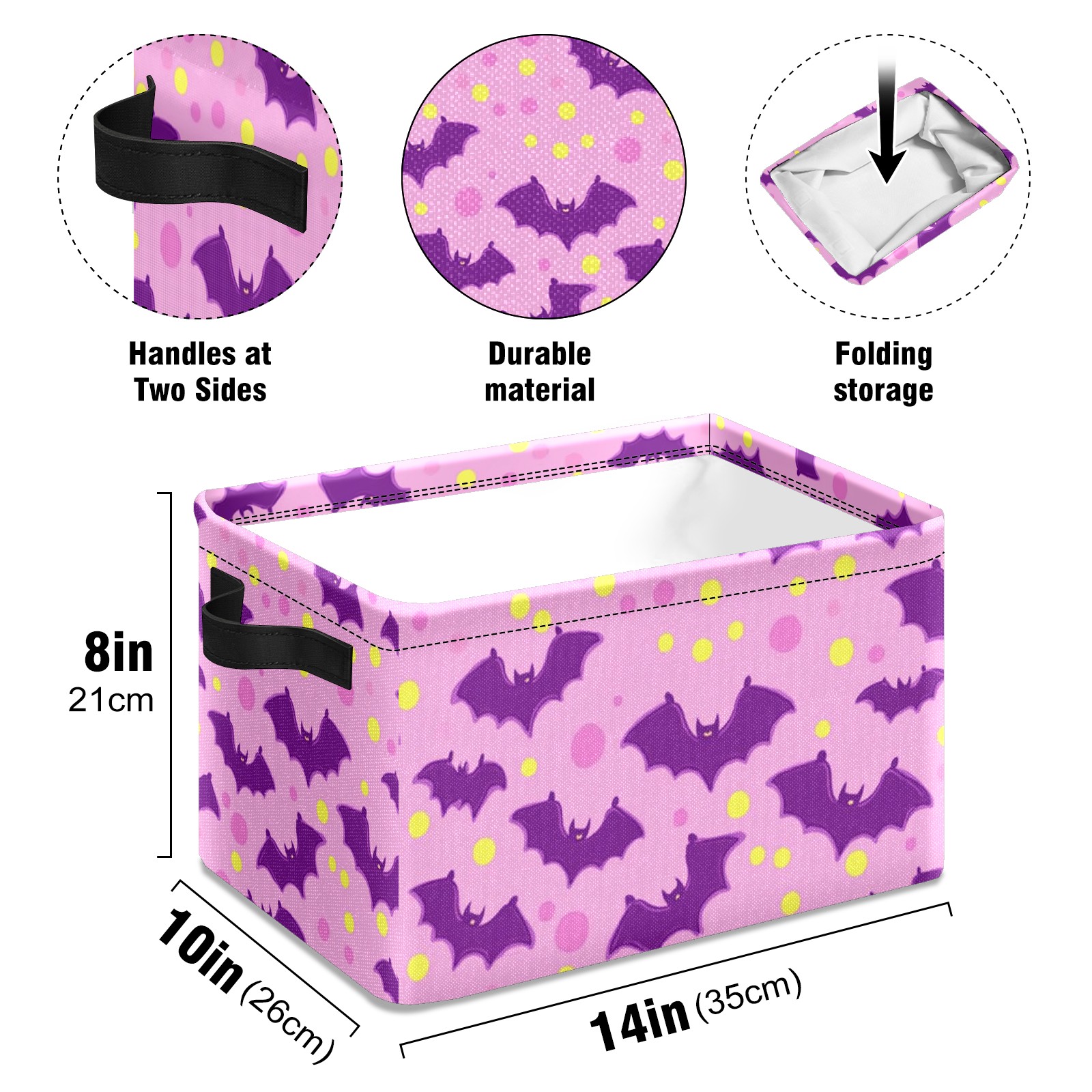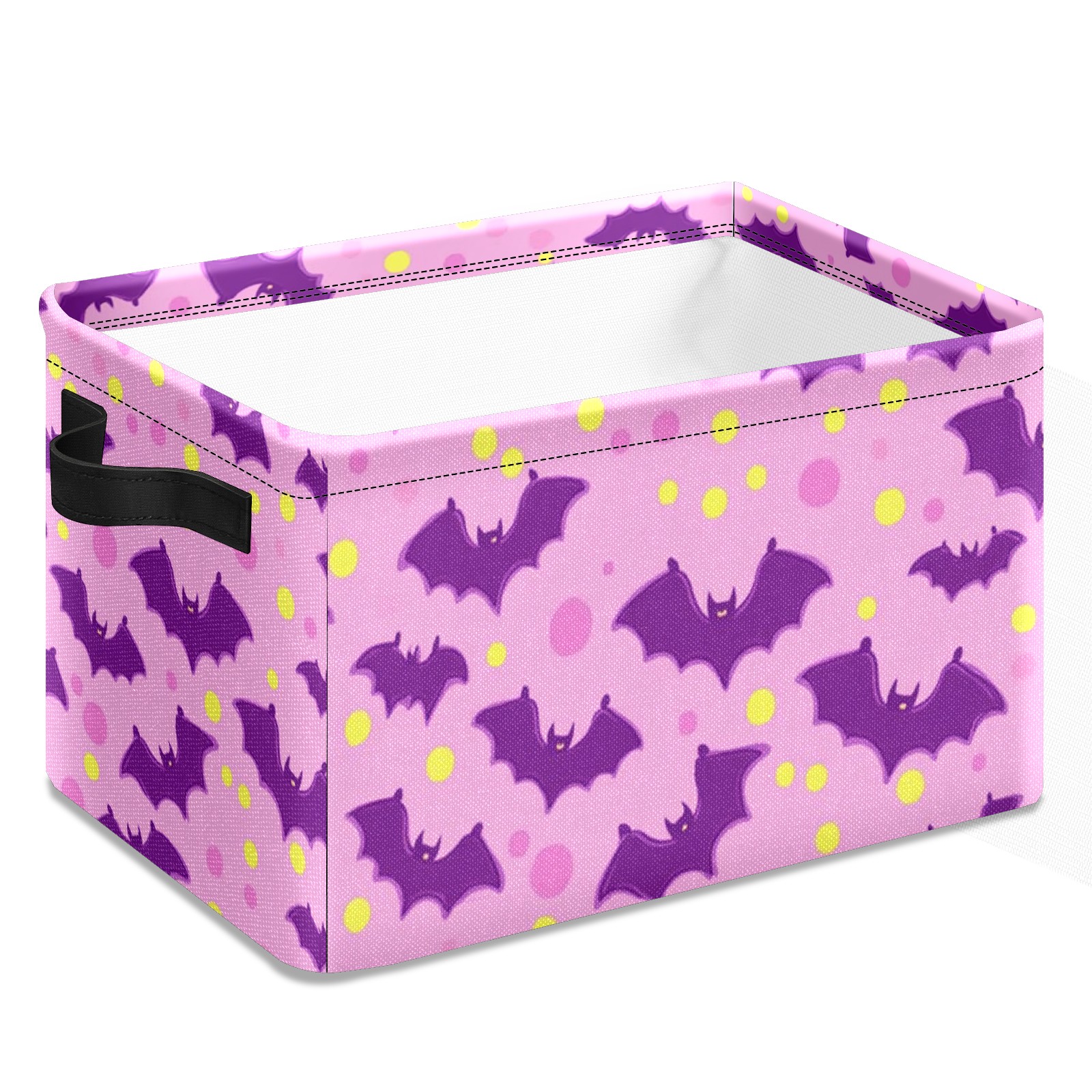 Foldable and Stackable Fabric Storage Basket for Home Organization with Handles, Decorative Closet Bins for Shelves and Laundry Storage( Purple Bats And Yellow Dots)