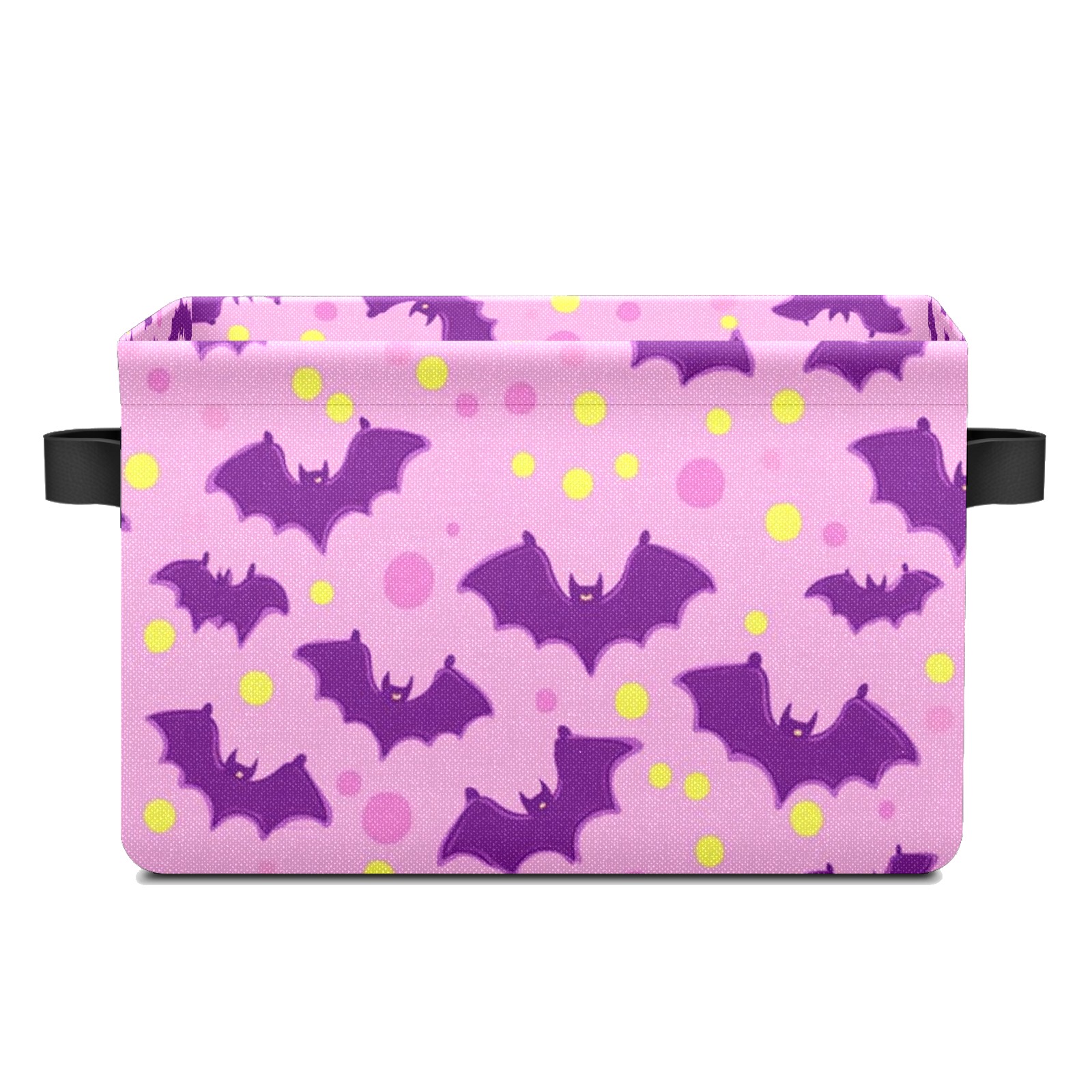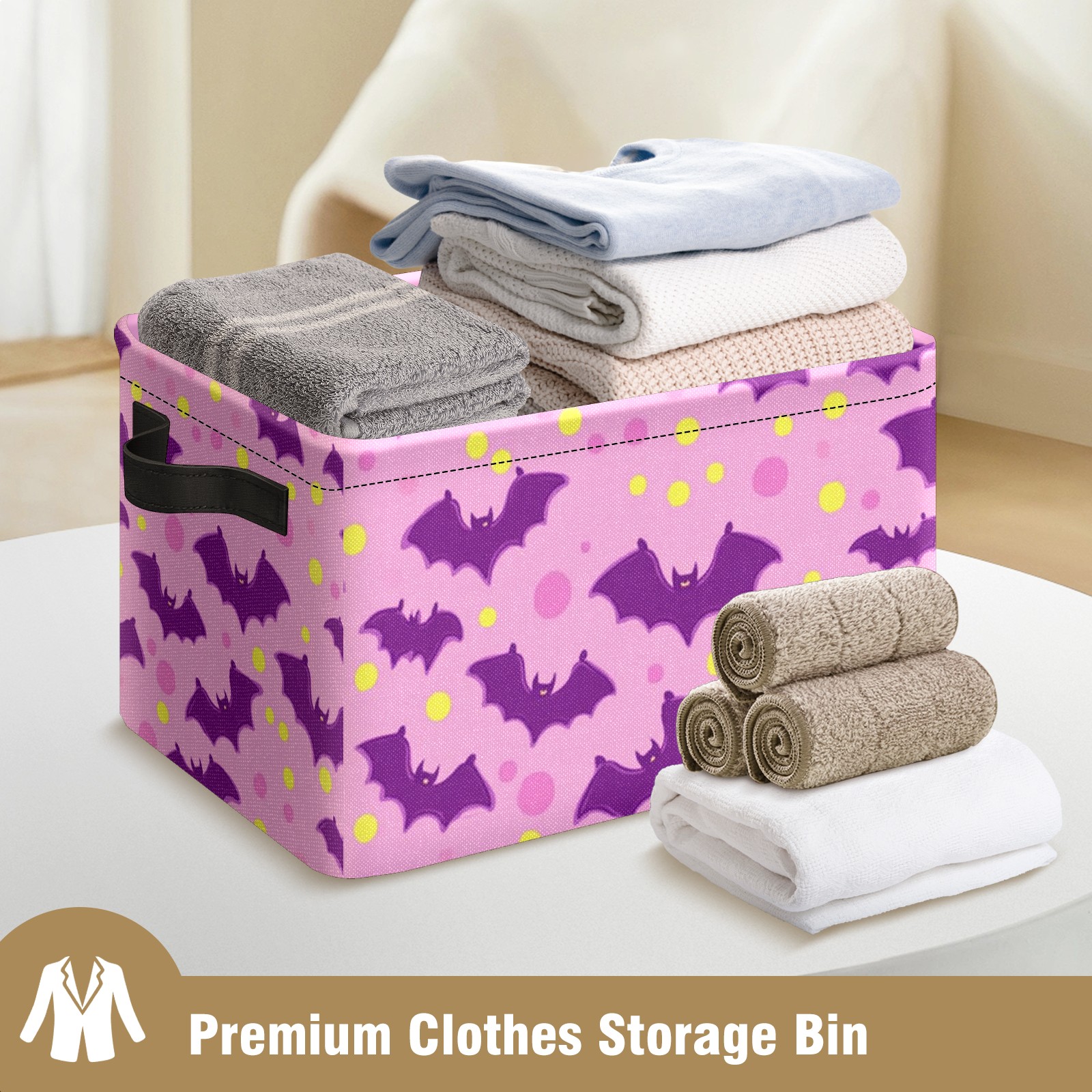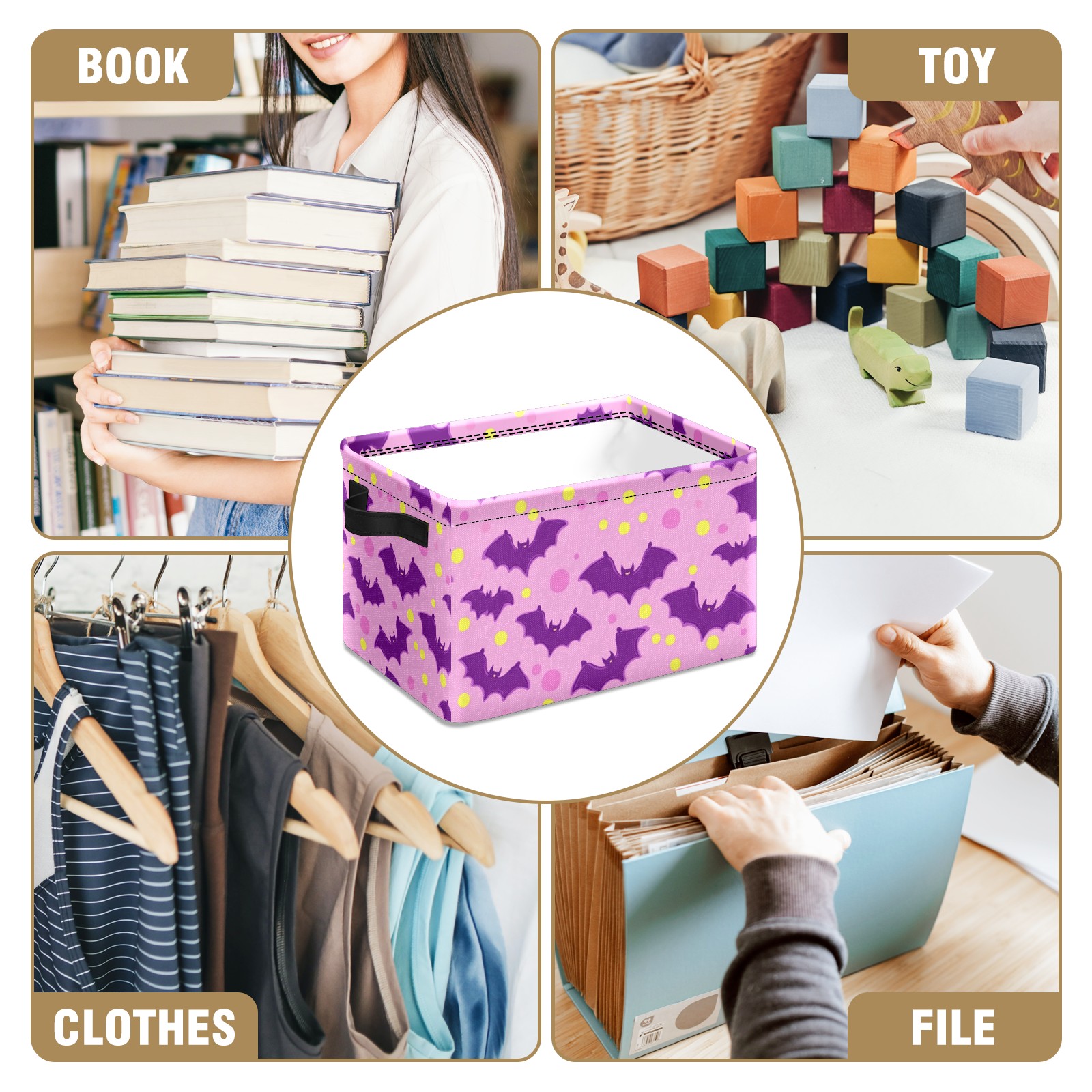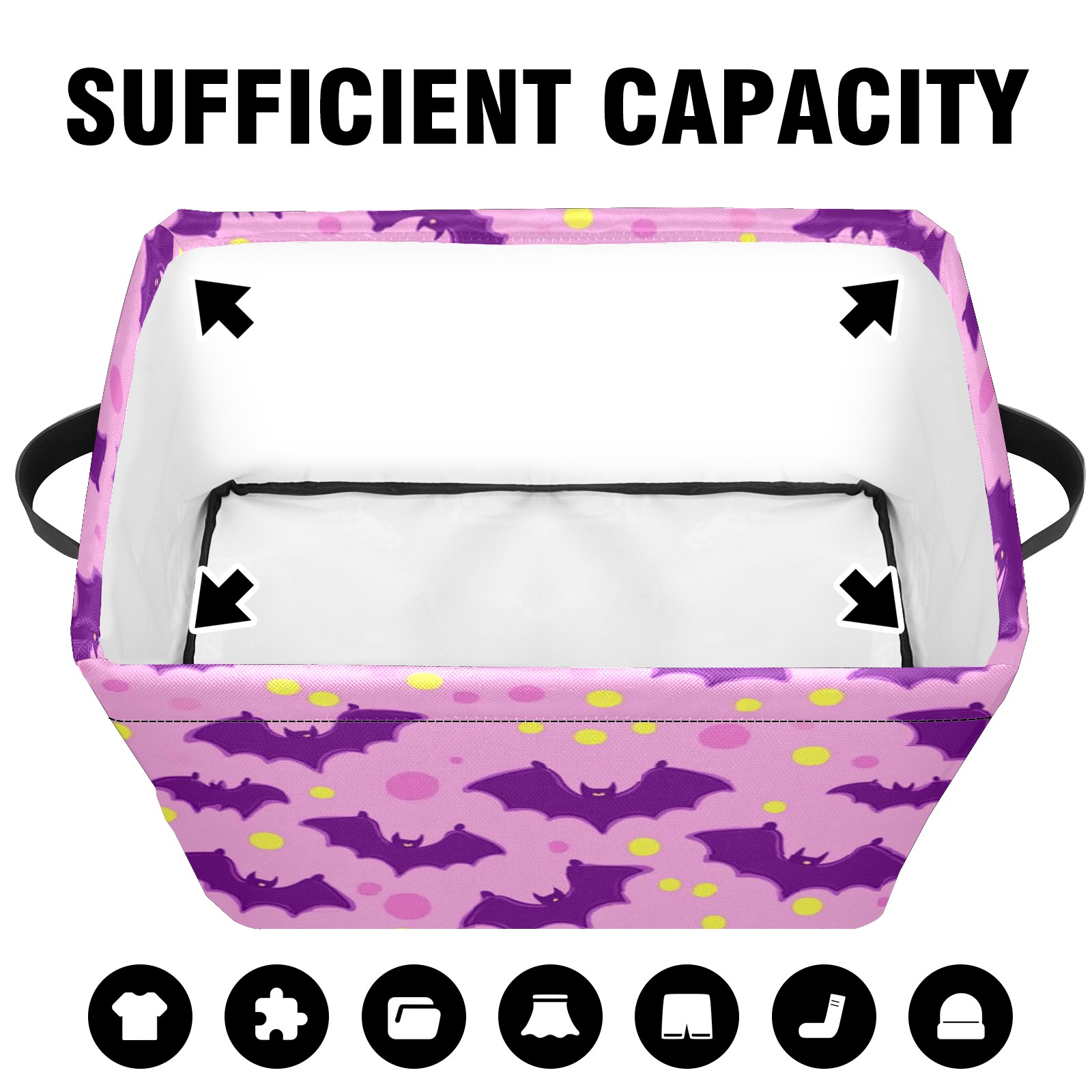 Foldable and Stackable Fabric Storage Basket for Home Organization with Handles, Decorative Closet Bins for Shelves and Laundry Storage( Purple Bats And Yellow Dots)
