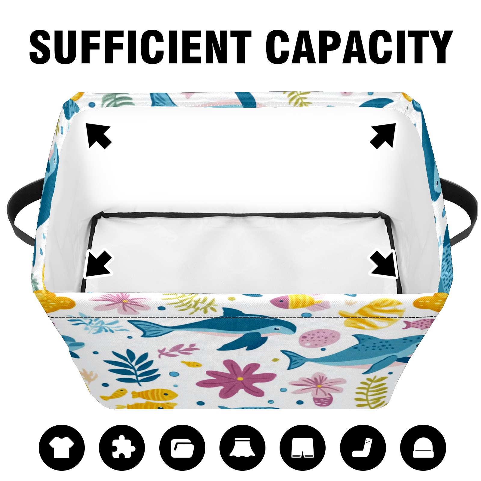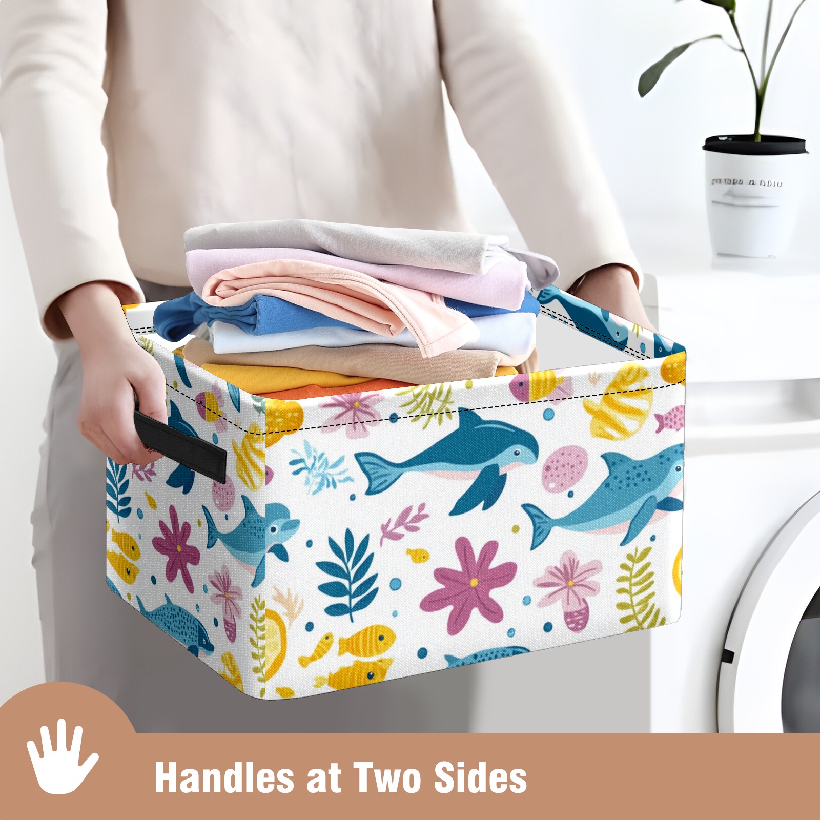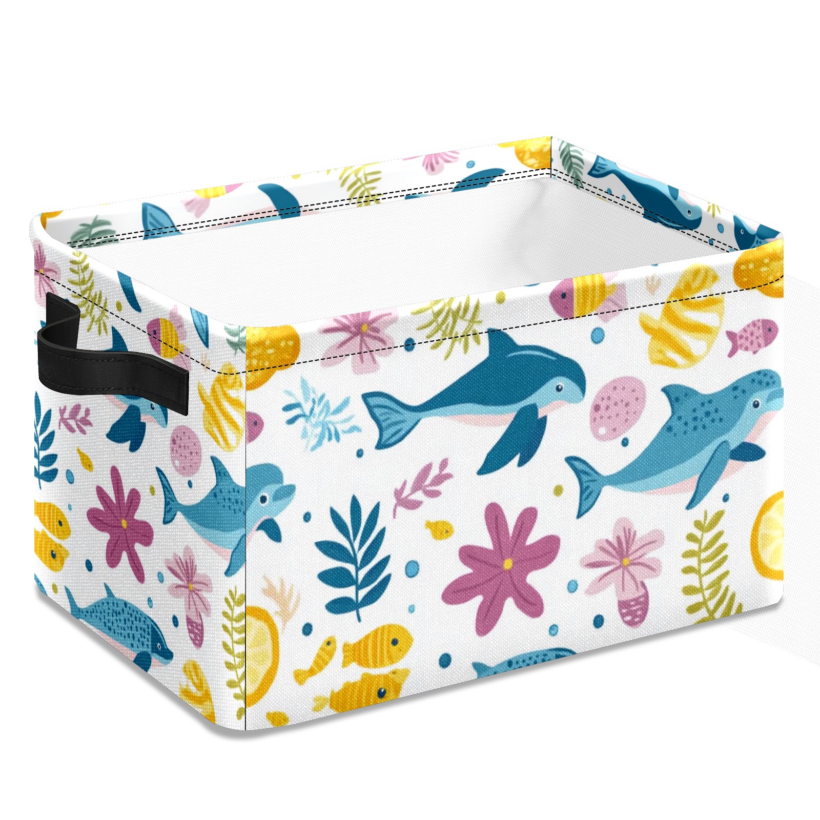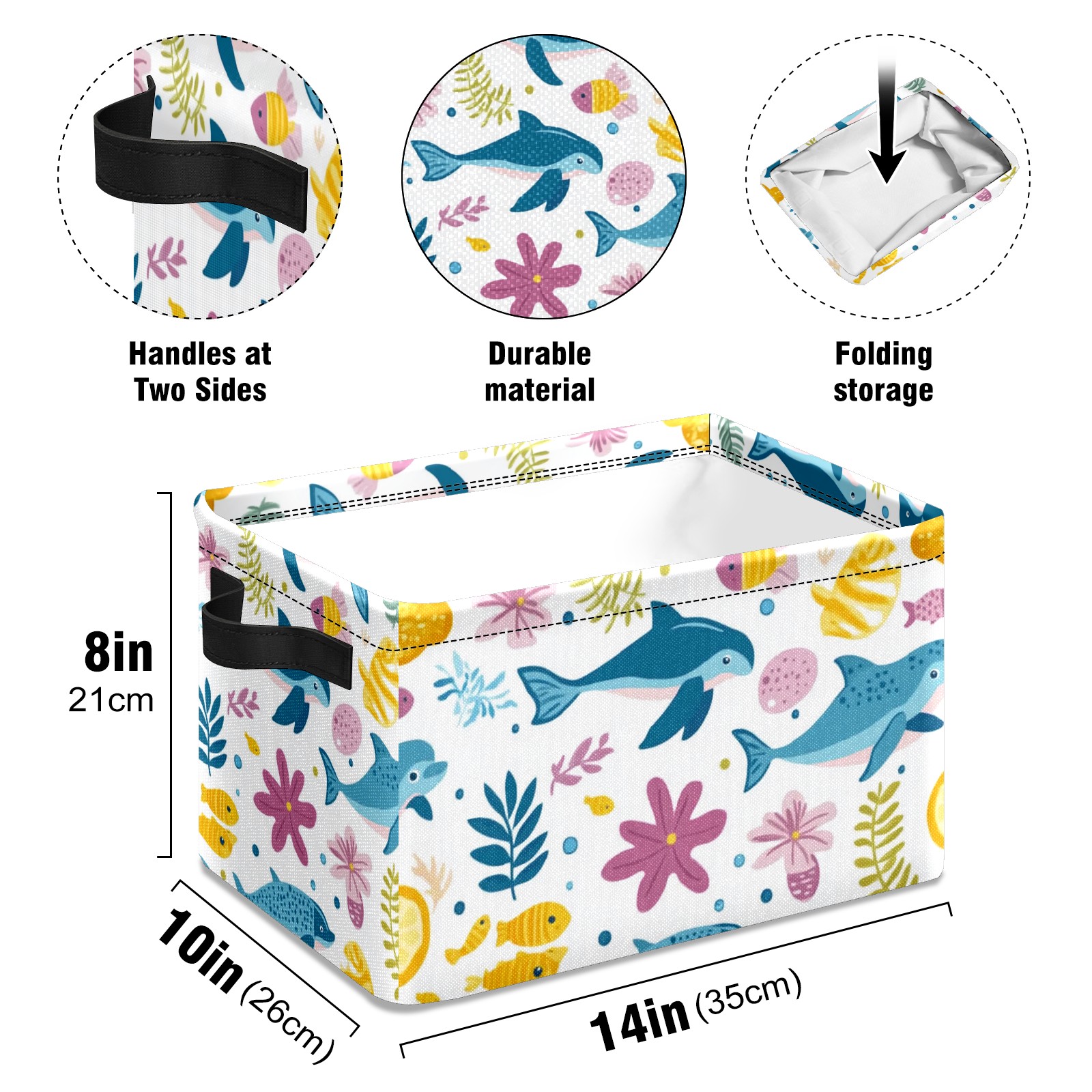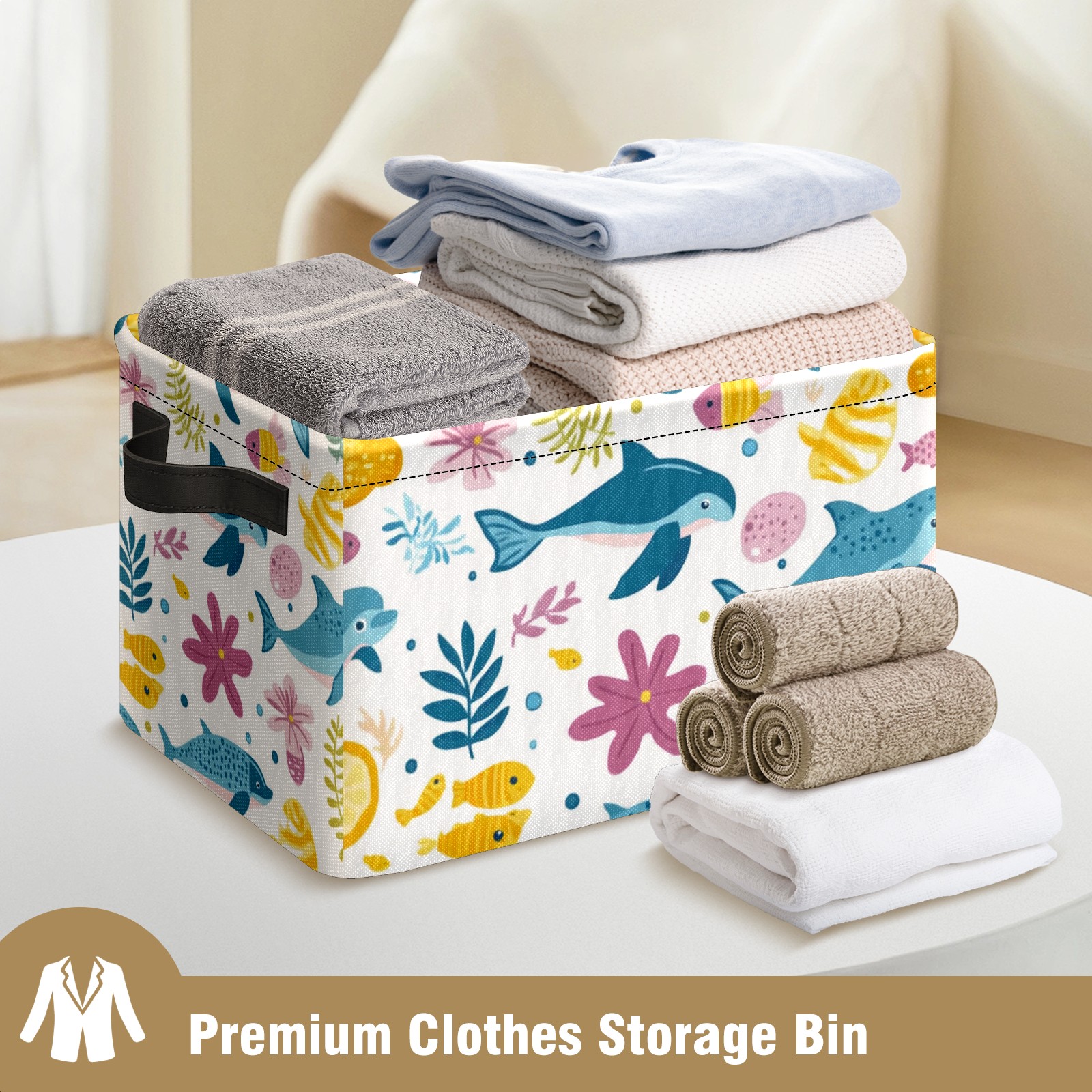 Foldable and Stackable Fabric Storage Basket for Home Organization with Handles, Decorative Closet Bins for Shelves and Laundry Storage( Ocean-themed)