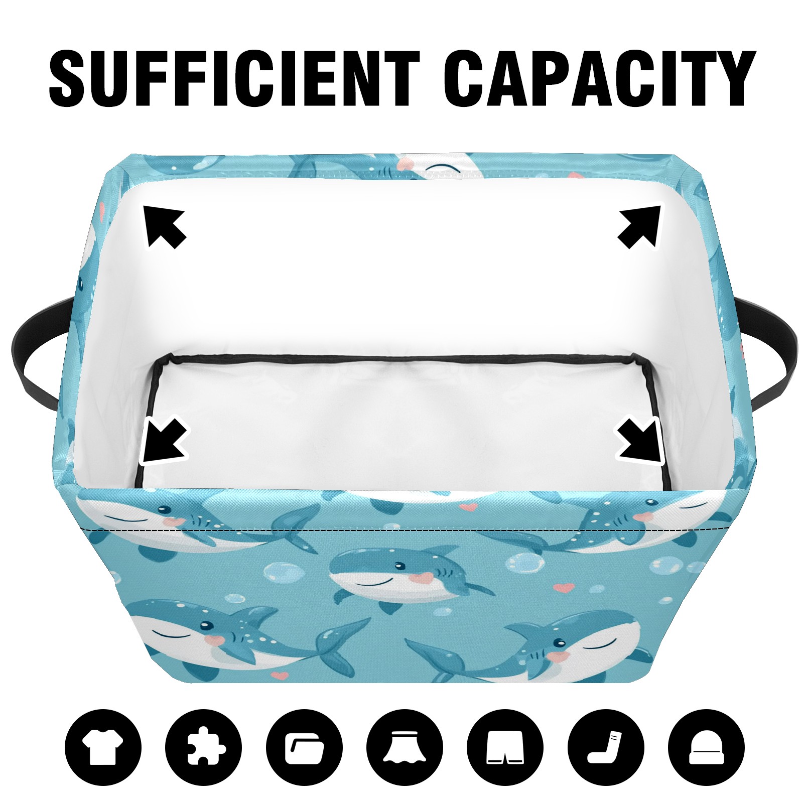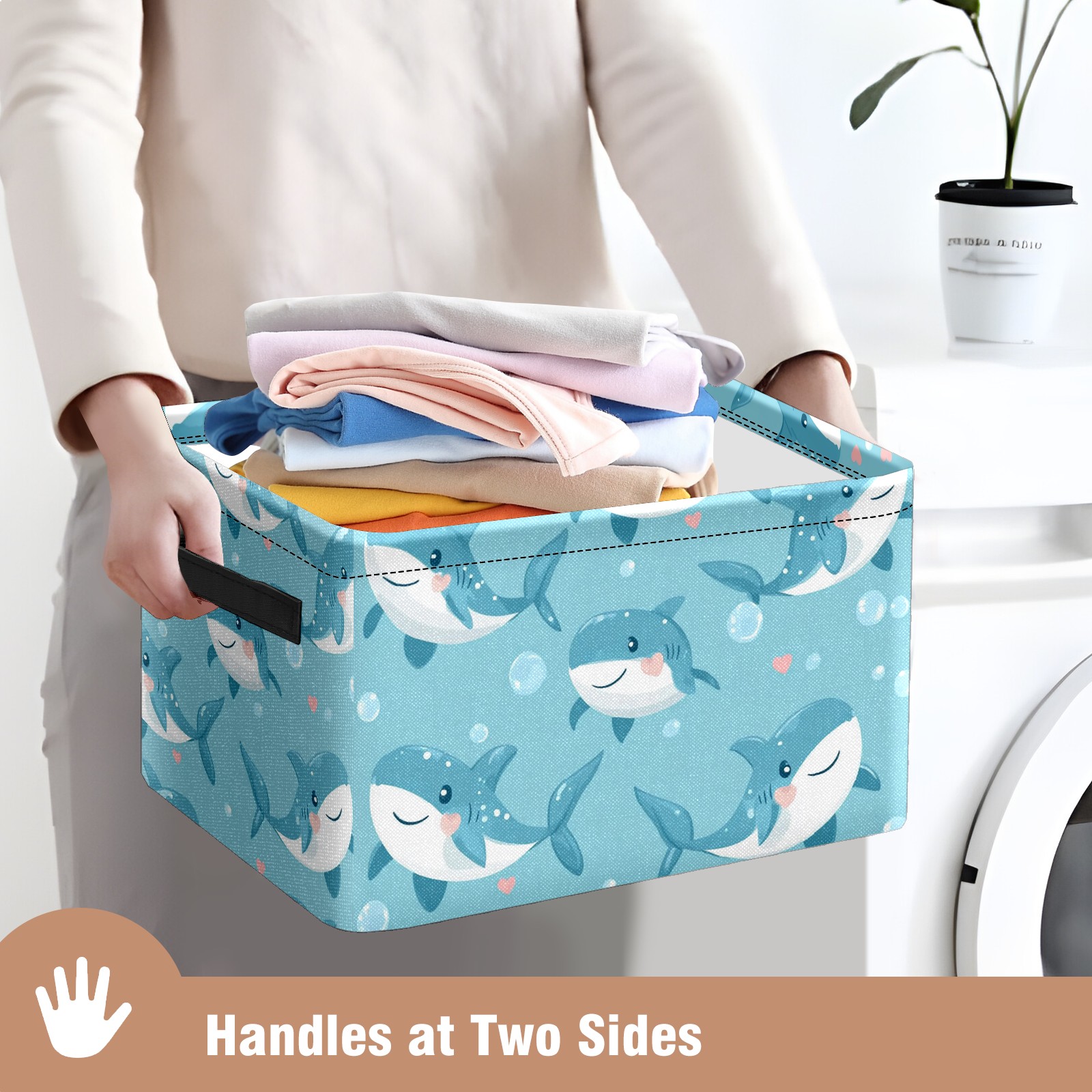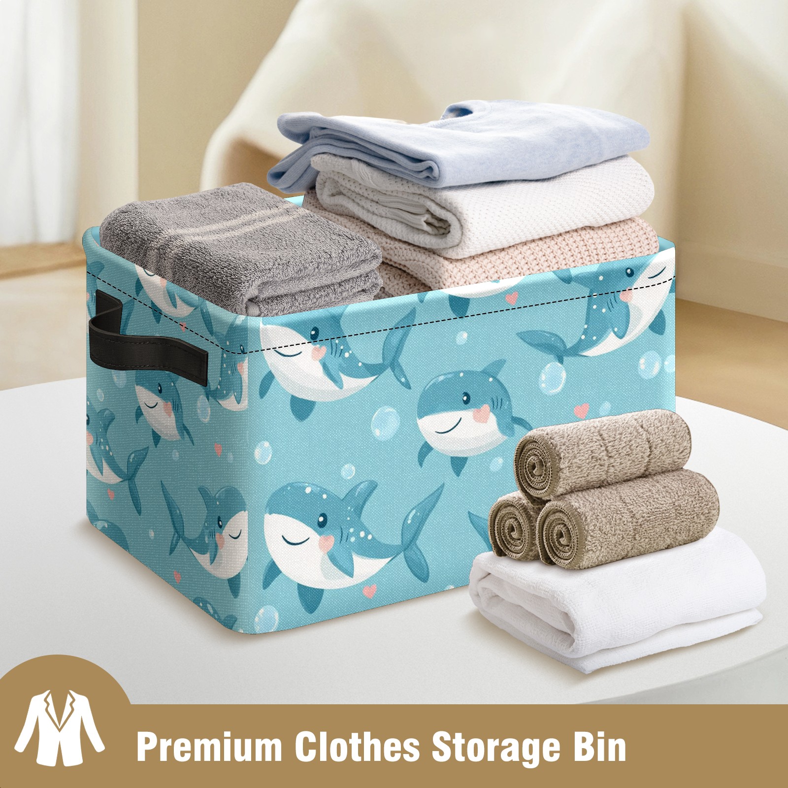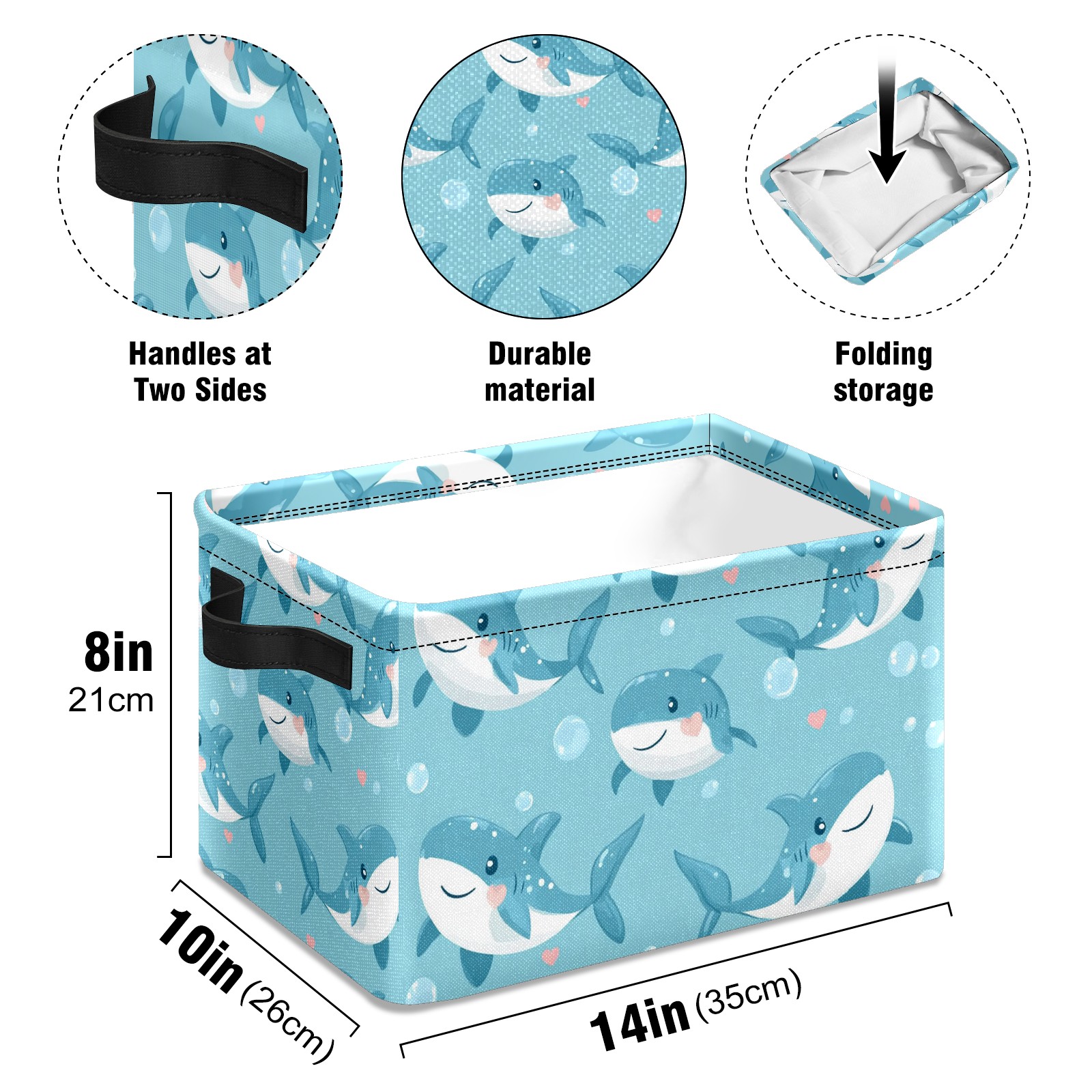 Foldable and Stackable Fabric Storage Basket for Home Organization with Handles, Decorative Closet Bins for Shelves and Laundry Storage( Little Shark)