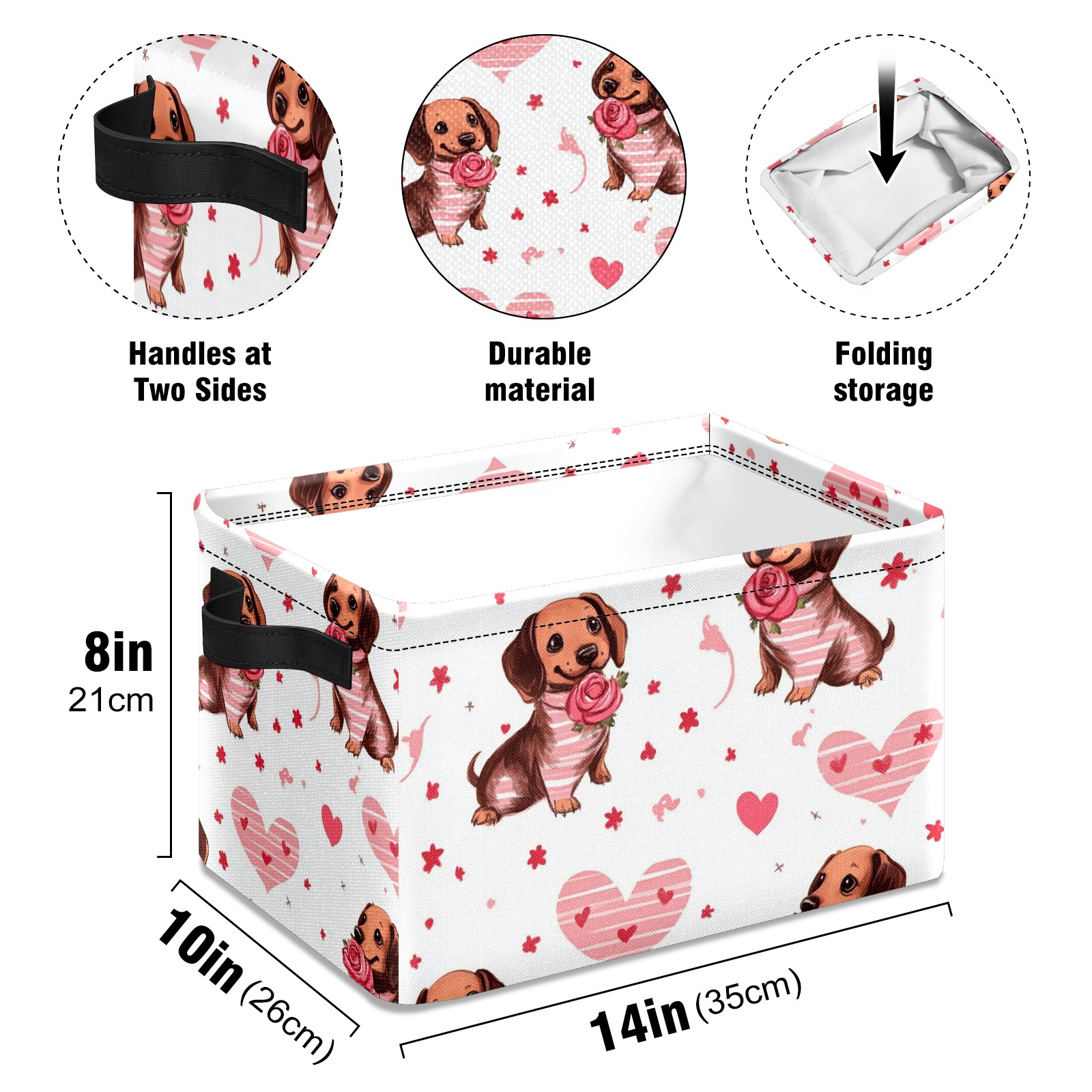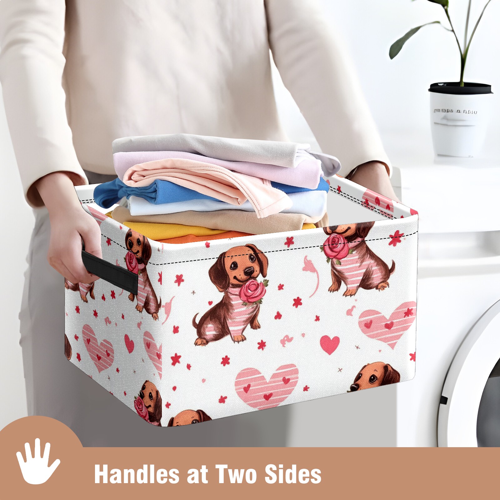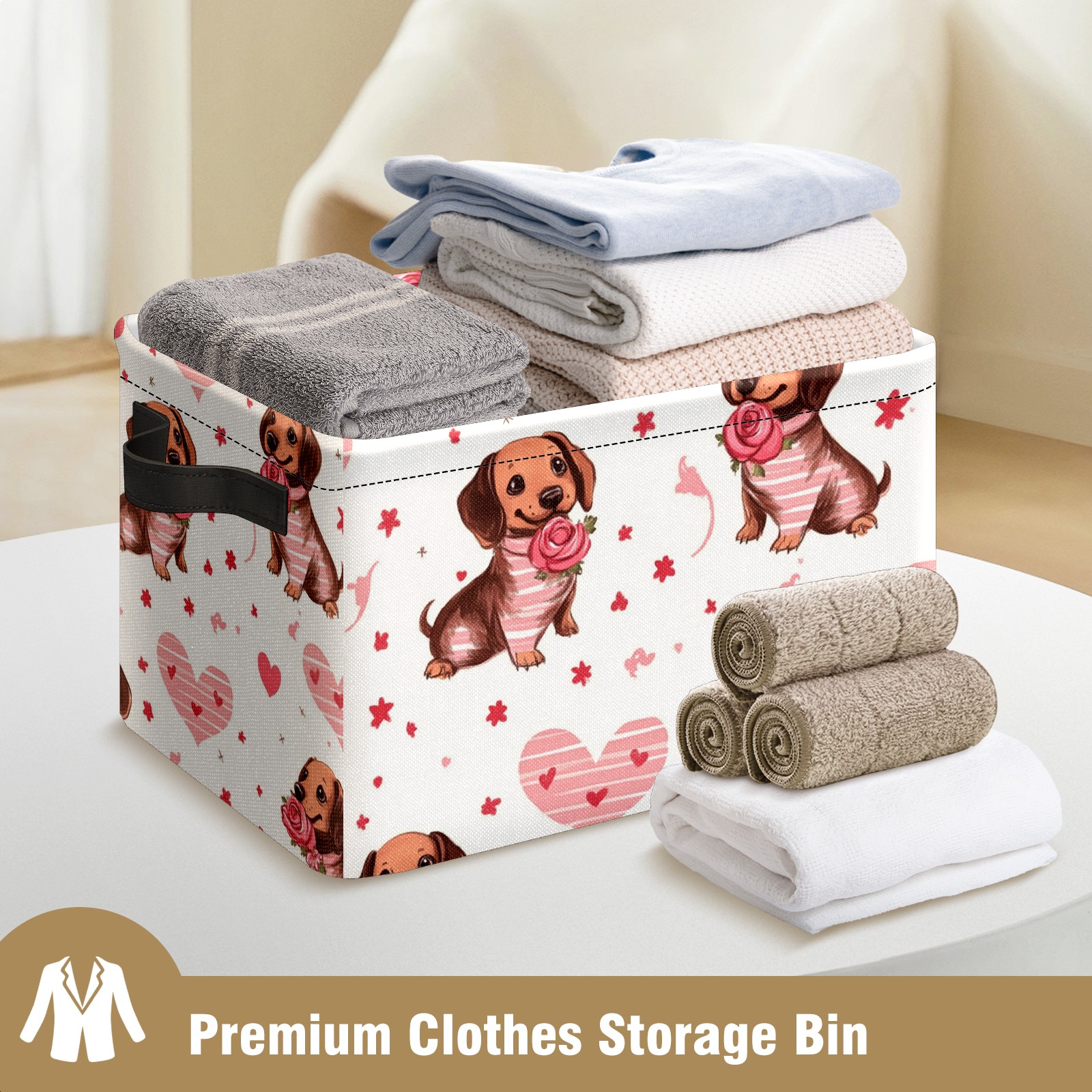 Foldable and Stackable Fabric Storage Basket for Home Organization with Handles, Decorative Closet Bins for Shelves and Laundry Storage( Brown Dachshund Puppies)
