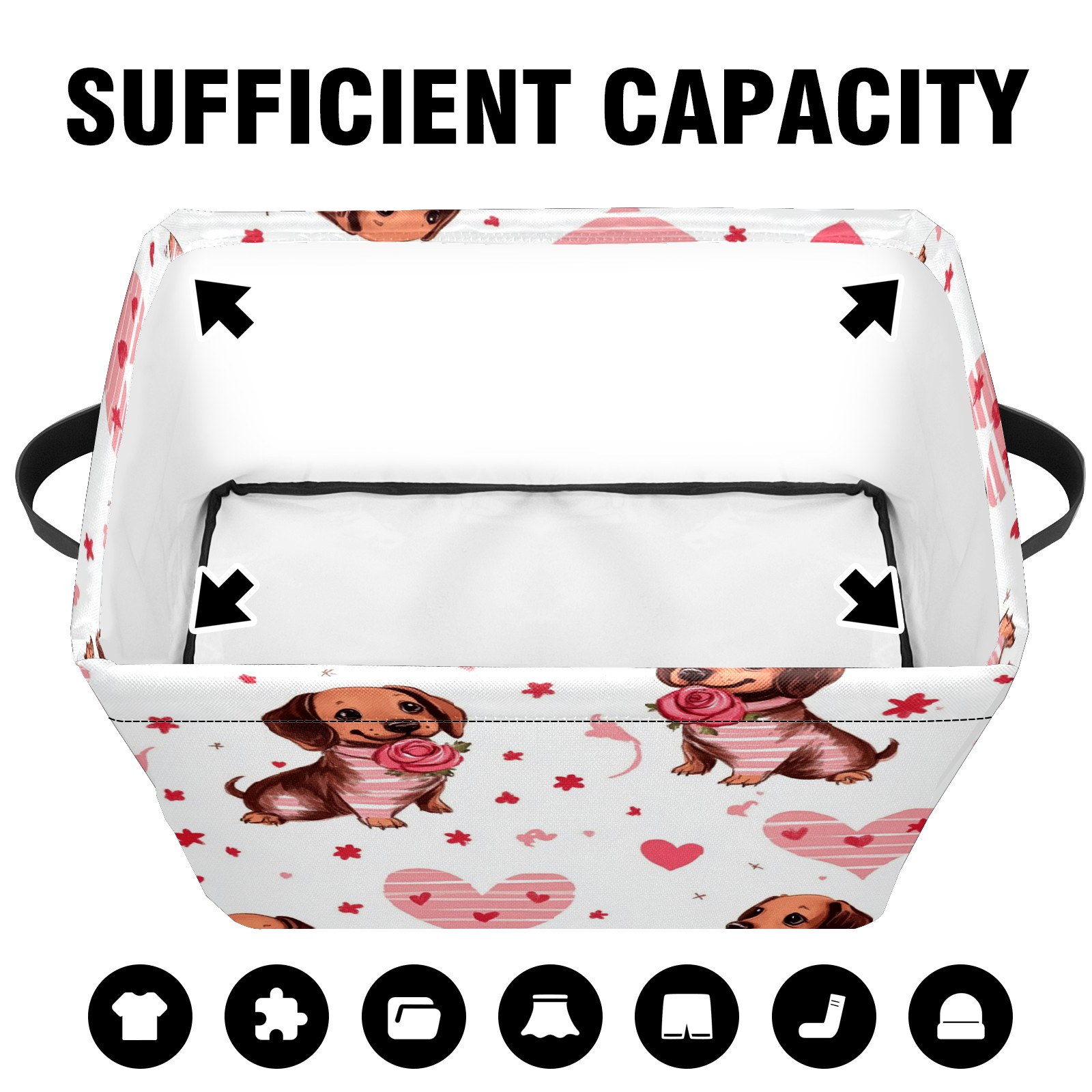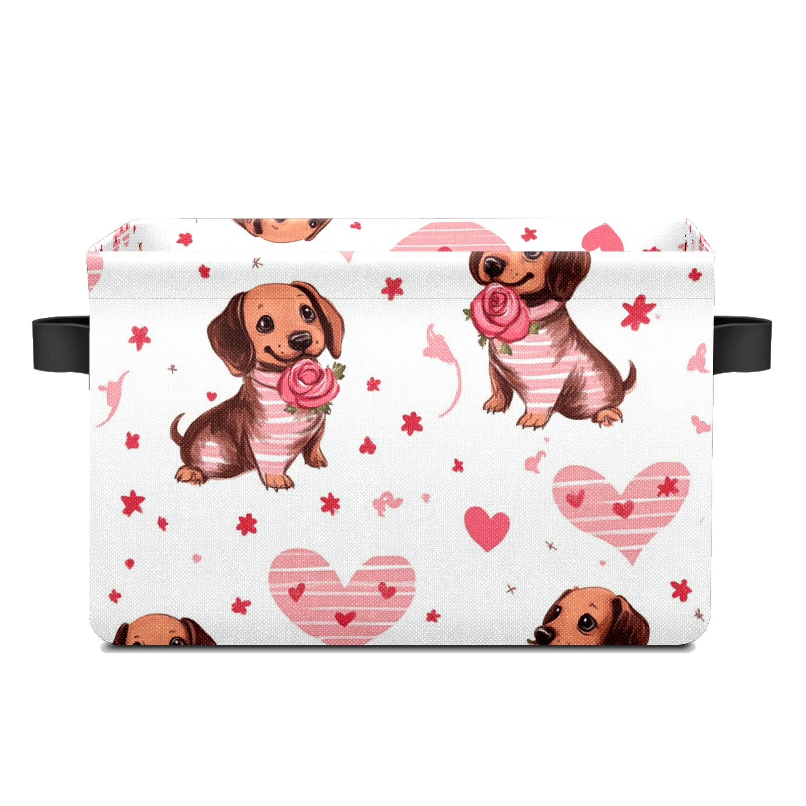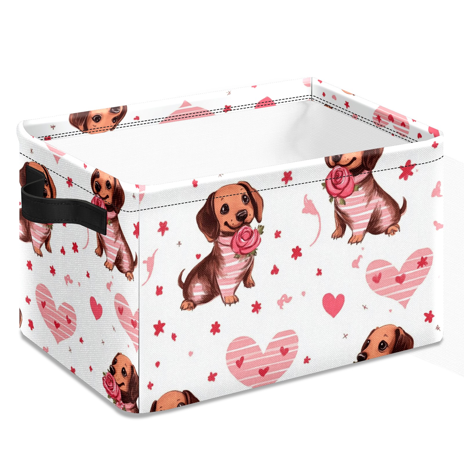 Foldable and Stackable Fabric Storage Basket for Home Organization with Handles, Decorative Closet Bins for Shelves and Laundry Storage( Brown Dachshund Puppies)