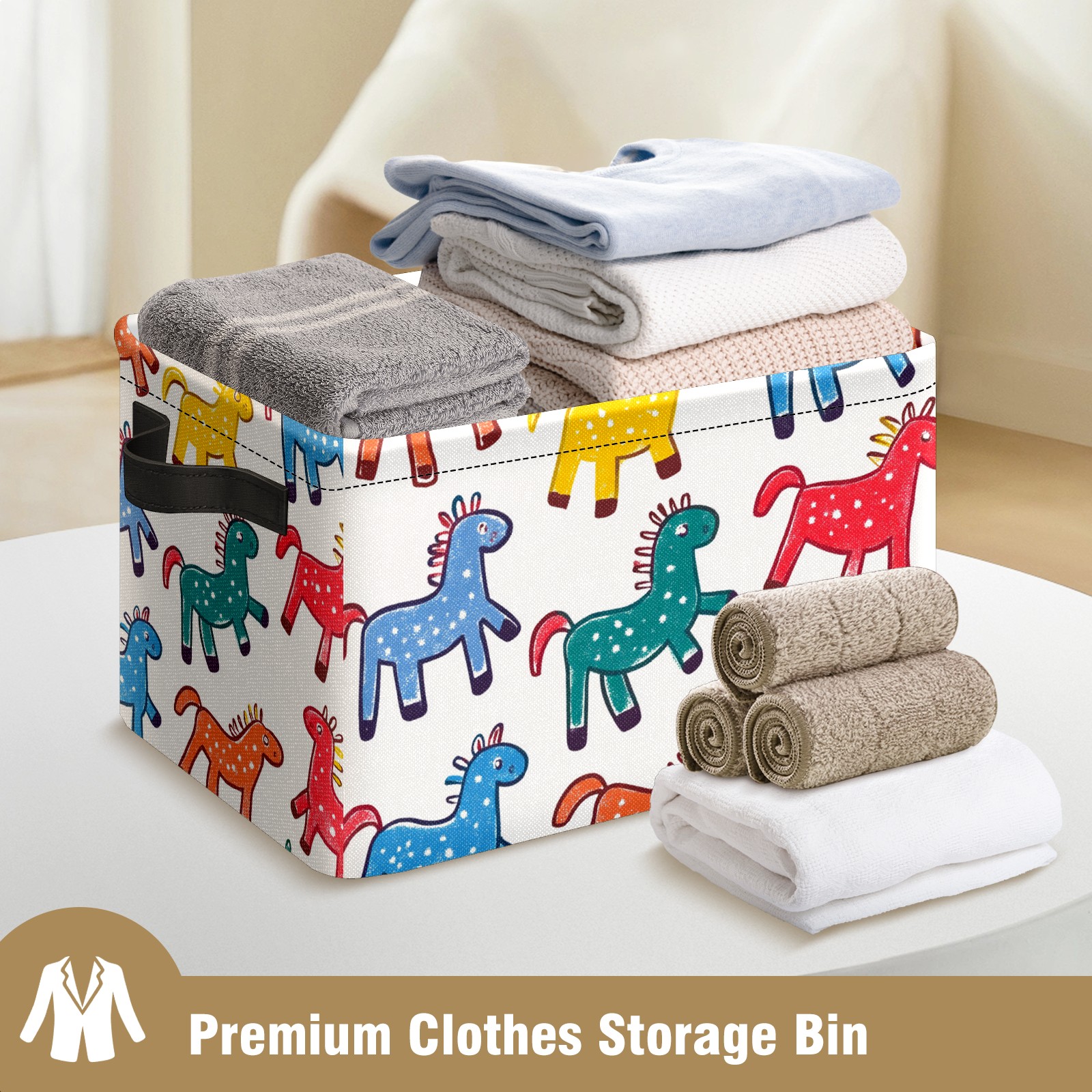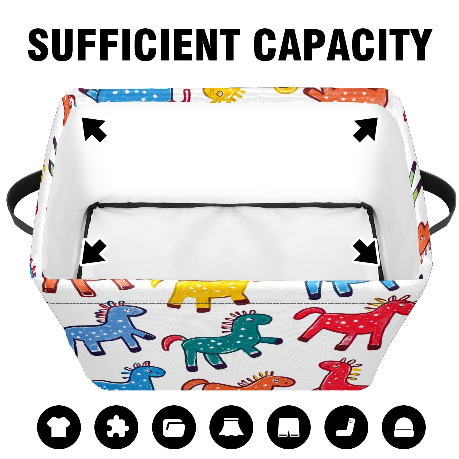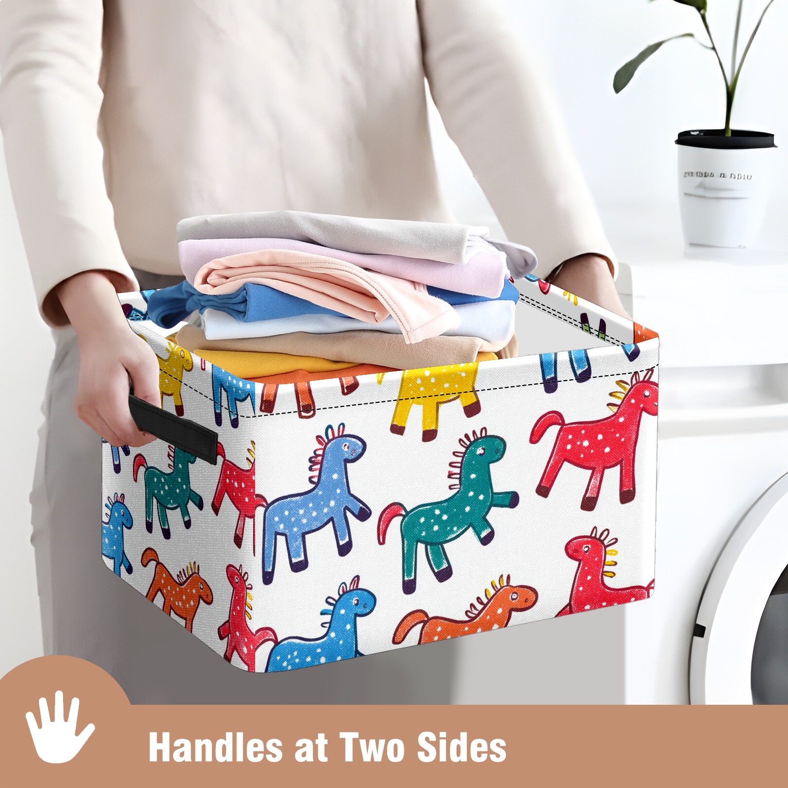 Foldable and Stackable Fabric Storage Basket for Home Organization with Handles, Decorative Closet Bins for Shelves and Laundry Storage( Colorful Stick Horses)