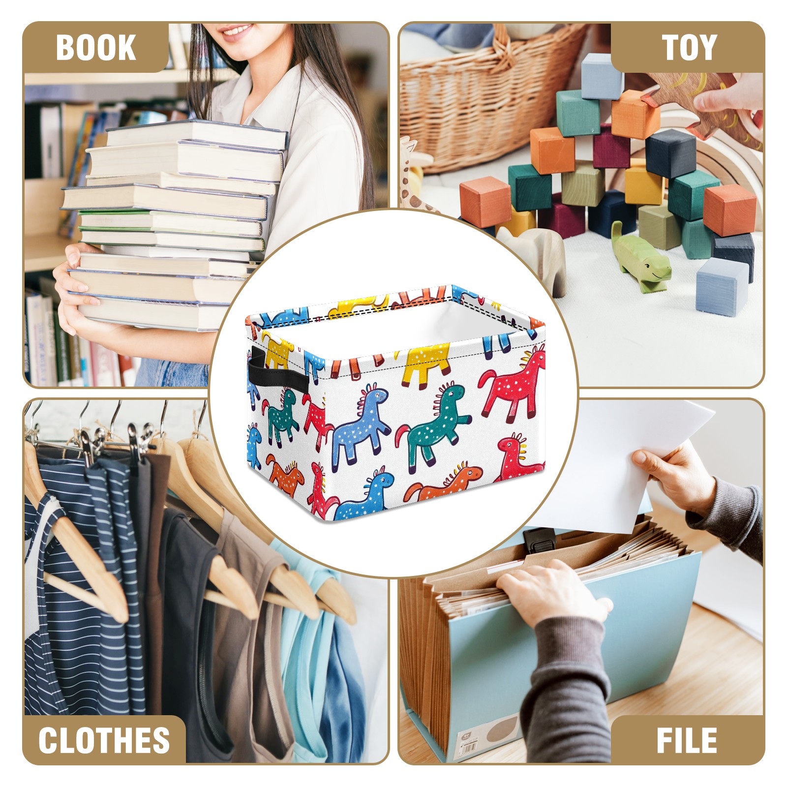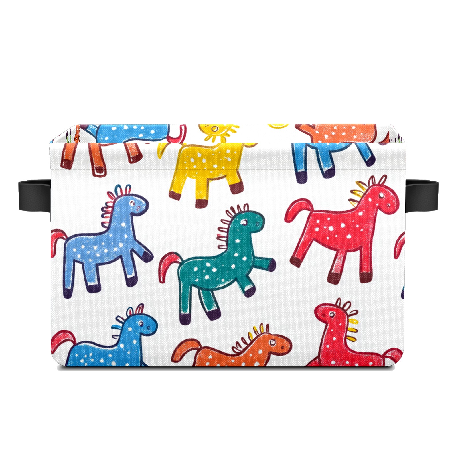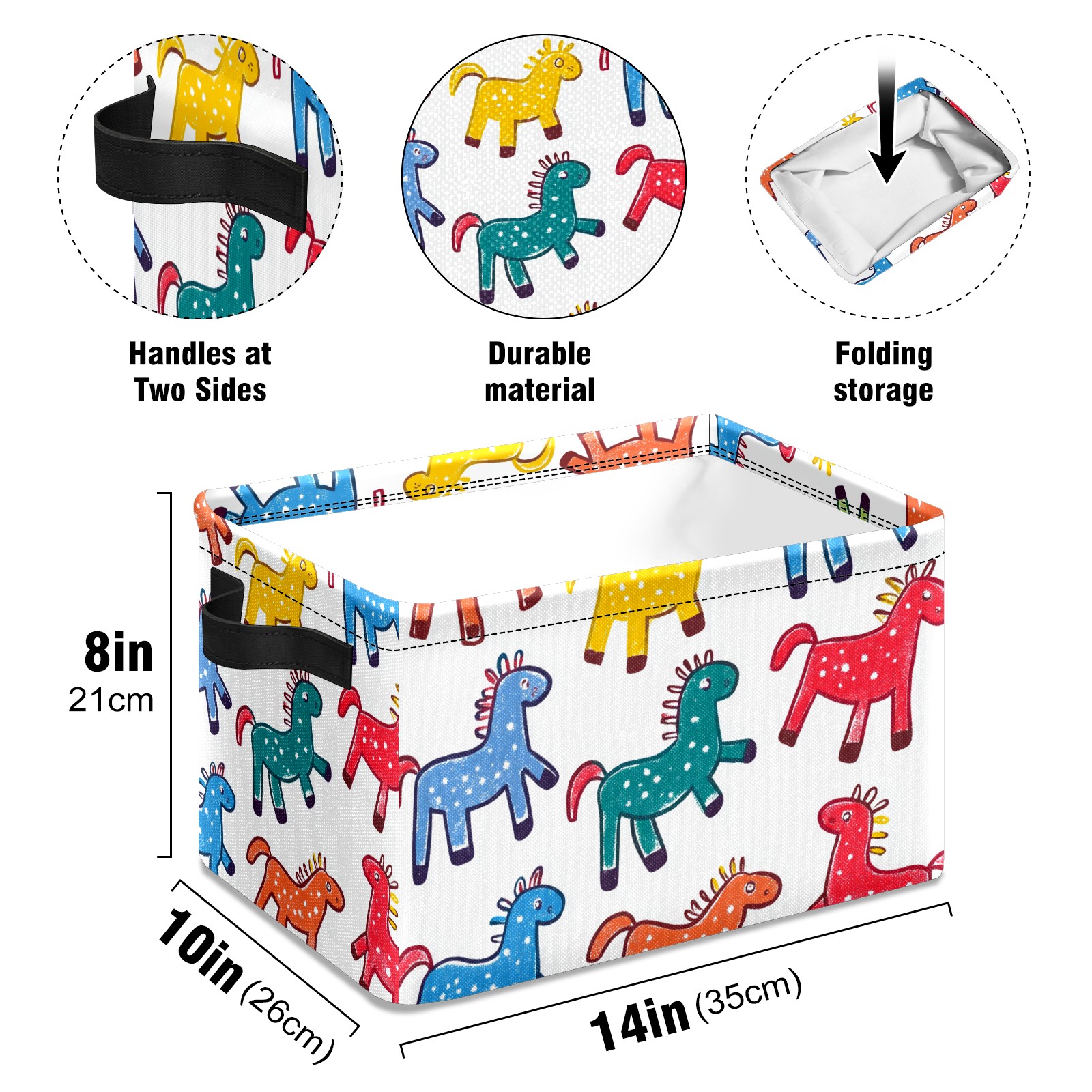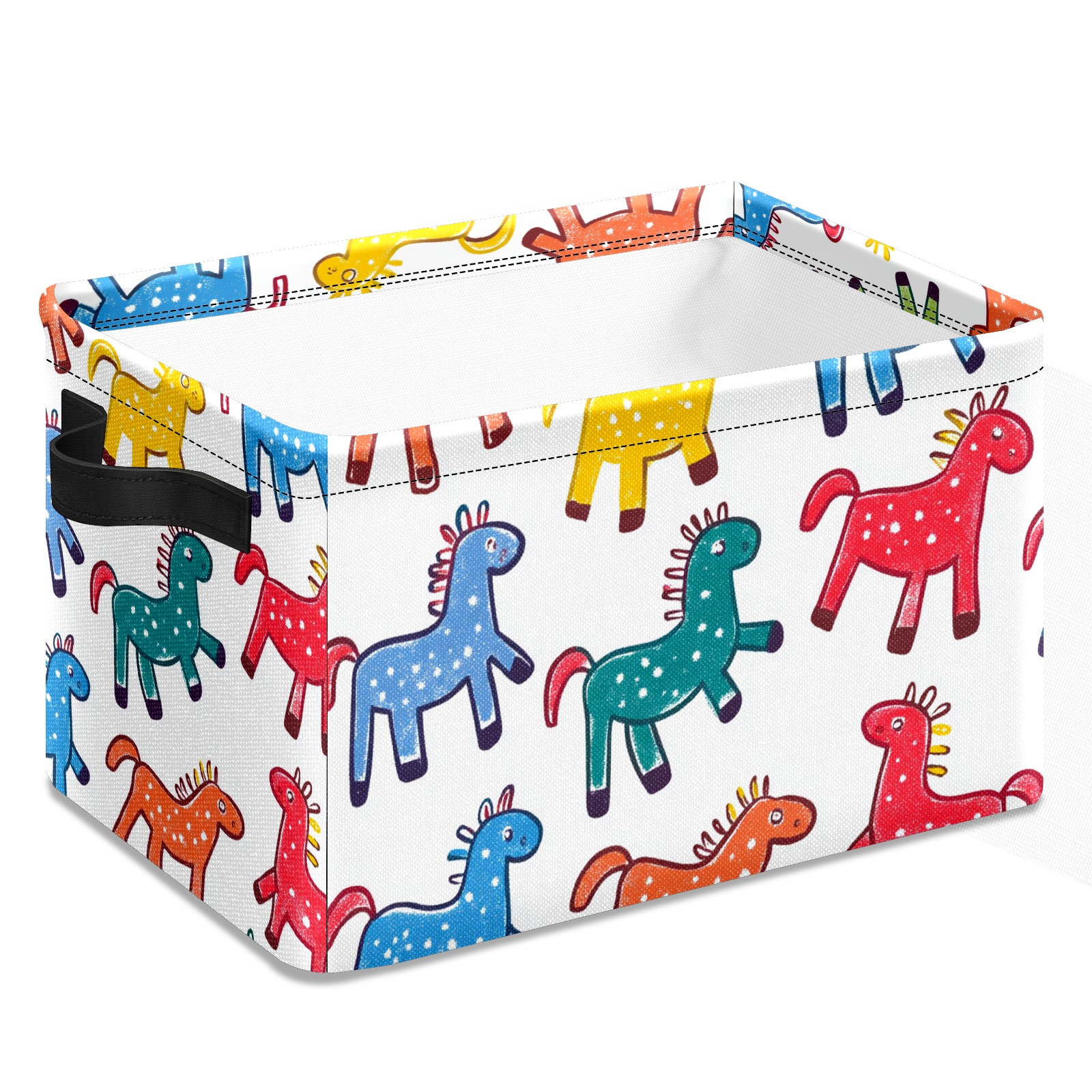 Foldable and Stackable Fabric Storage Basket for Home Organization with Handles, Decorative Closet Bins for Shelves and Laundry Storage( Colorful Stick Horses)