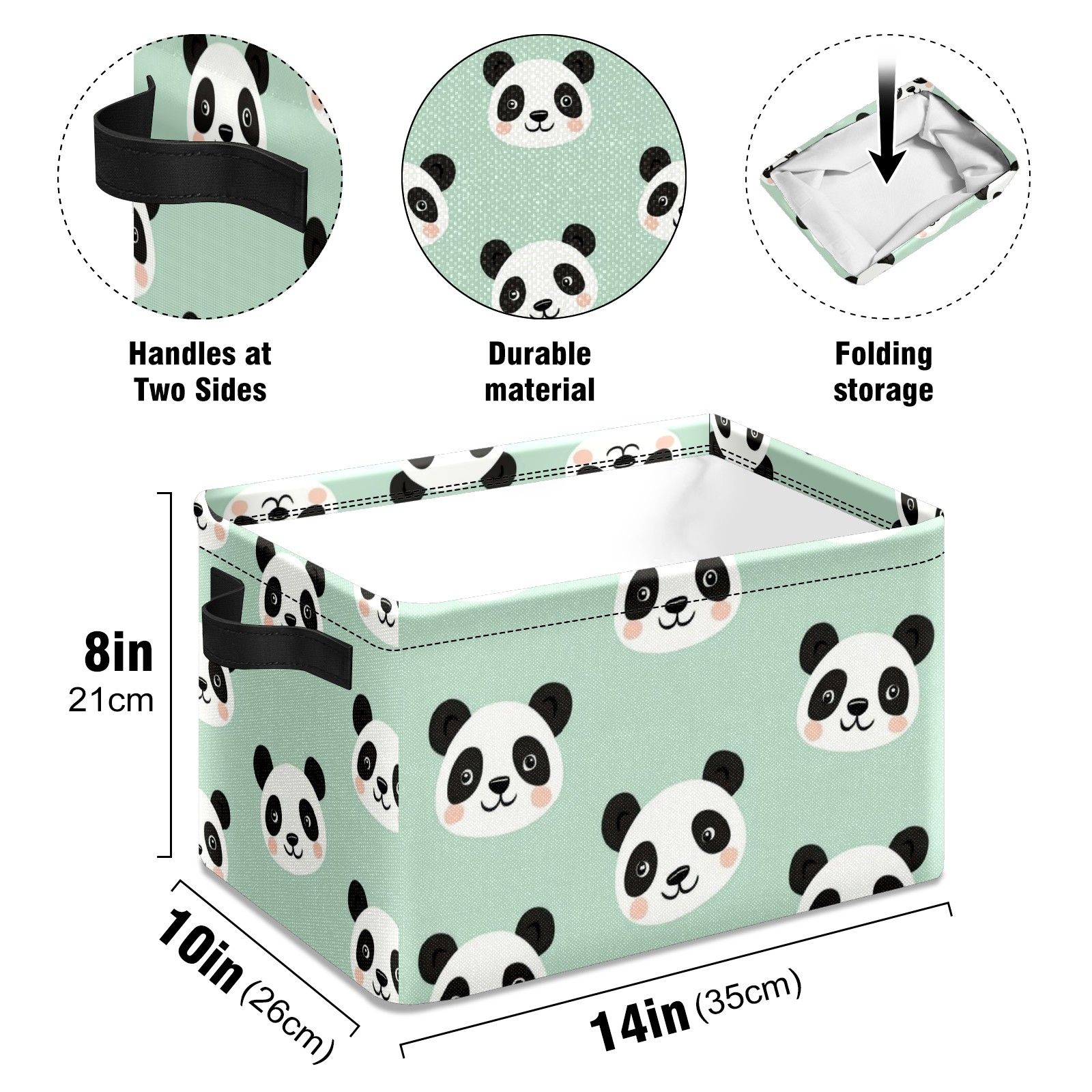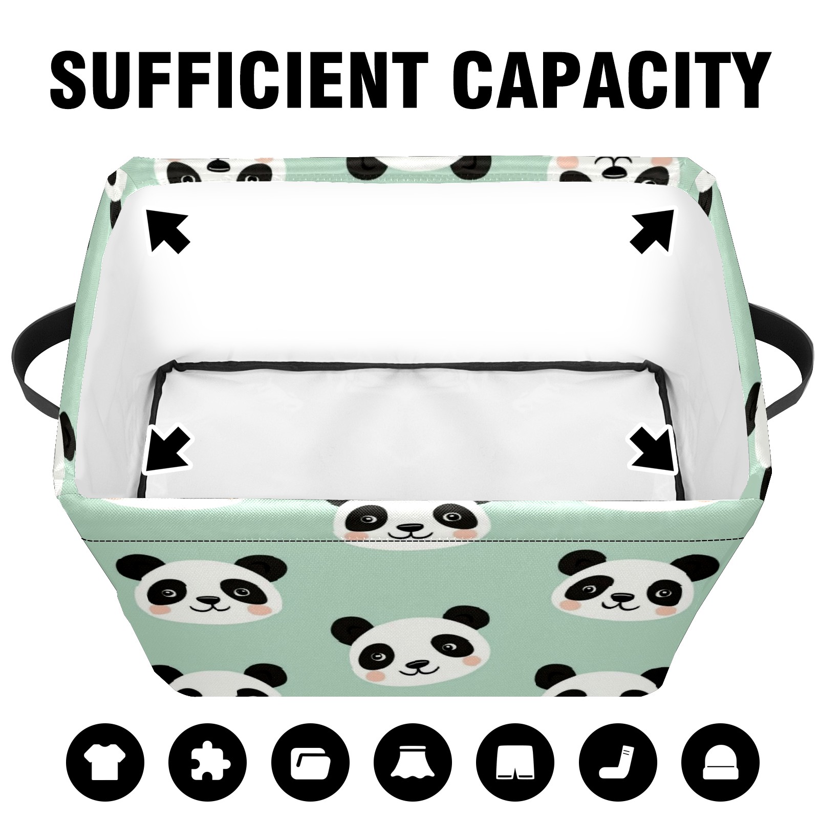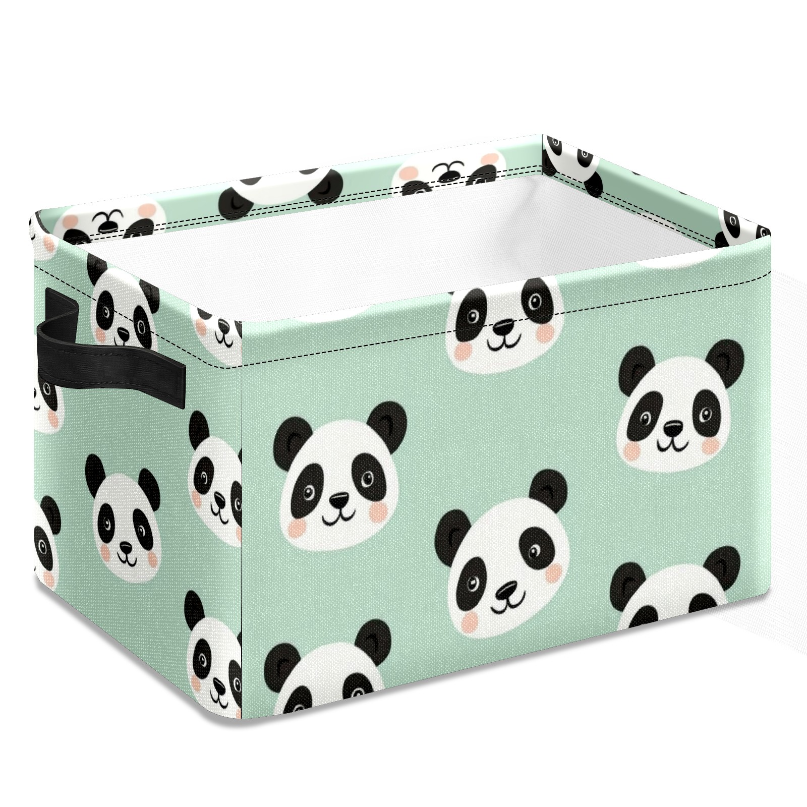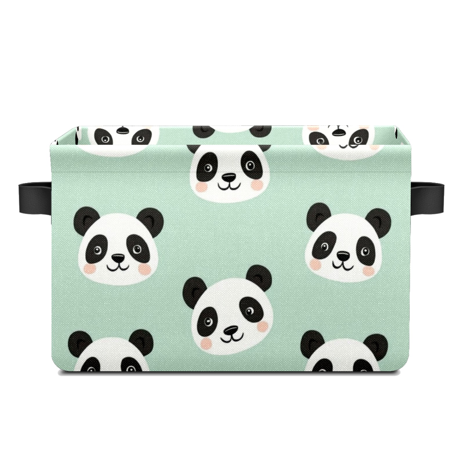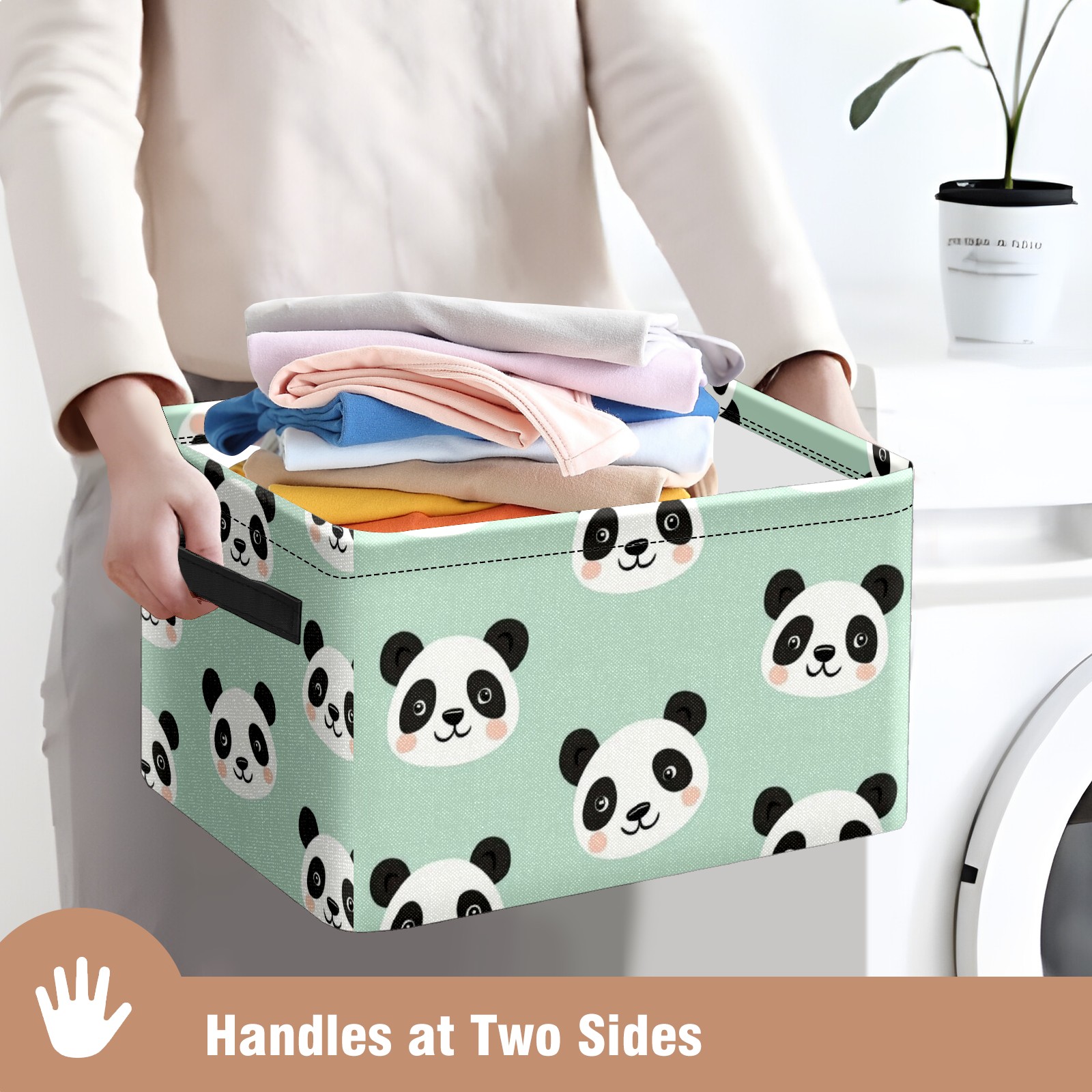 Foldable and Stackable Fabric Storage Basket for Home Organization with Handles, Decorative Closet Bins for Shelves and Laundry Storage( Adorable Panda Faces)