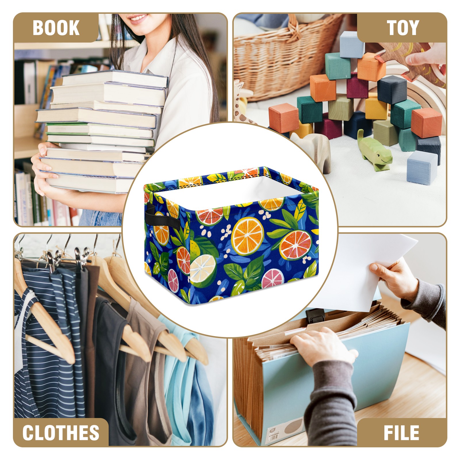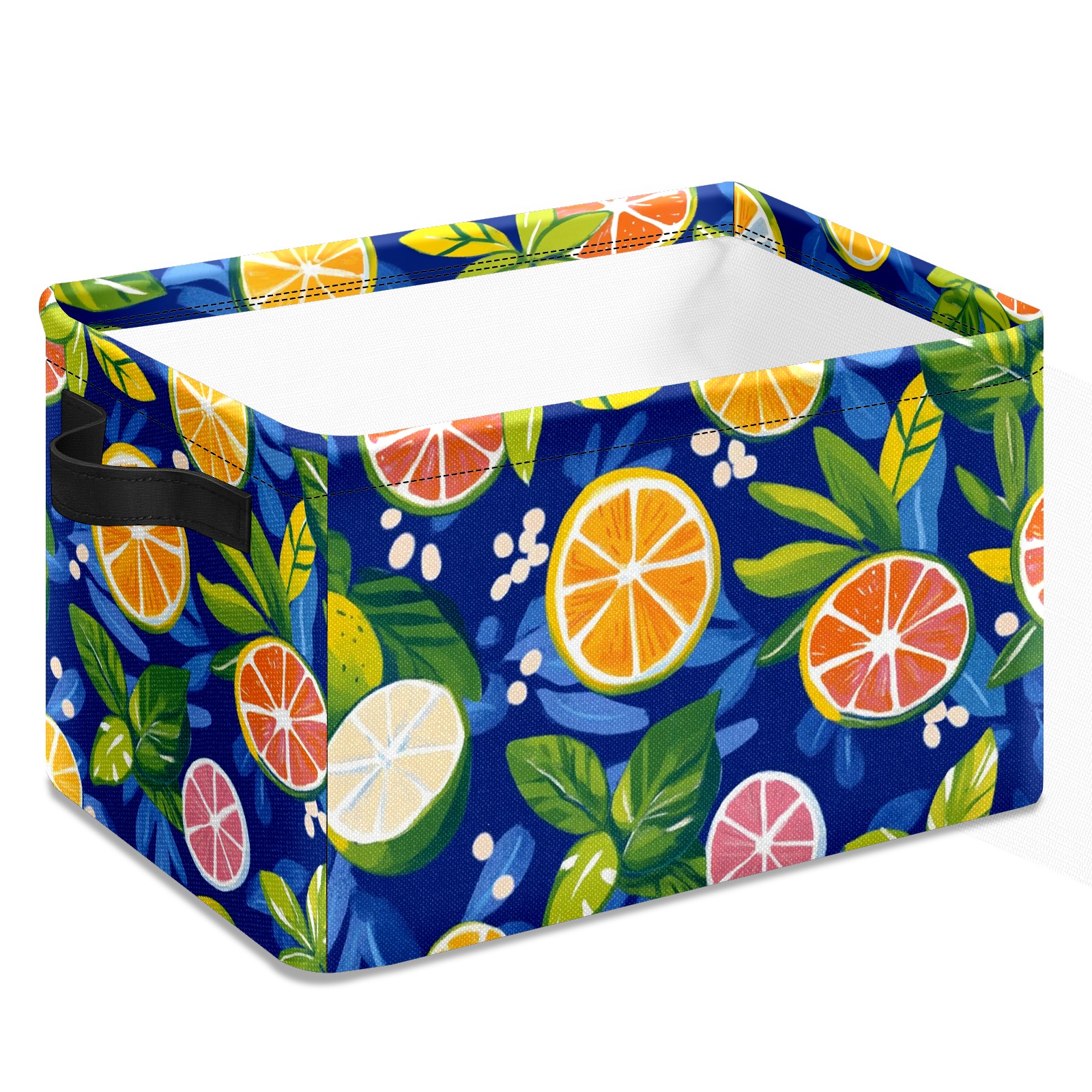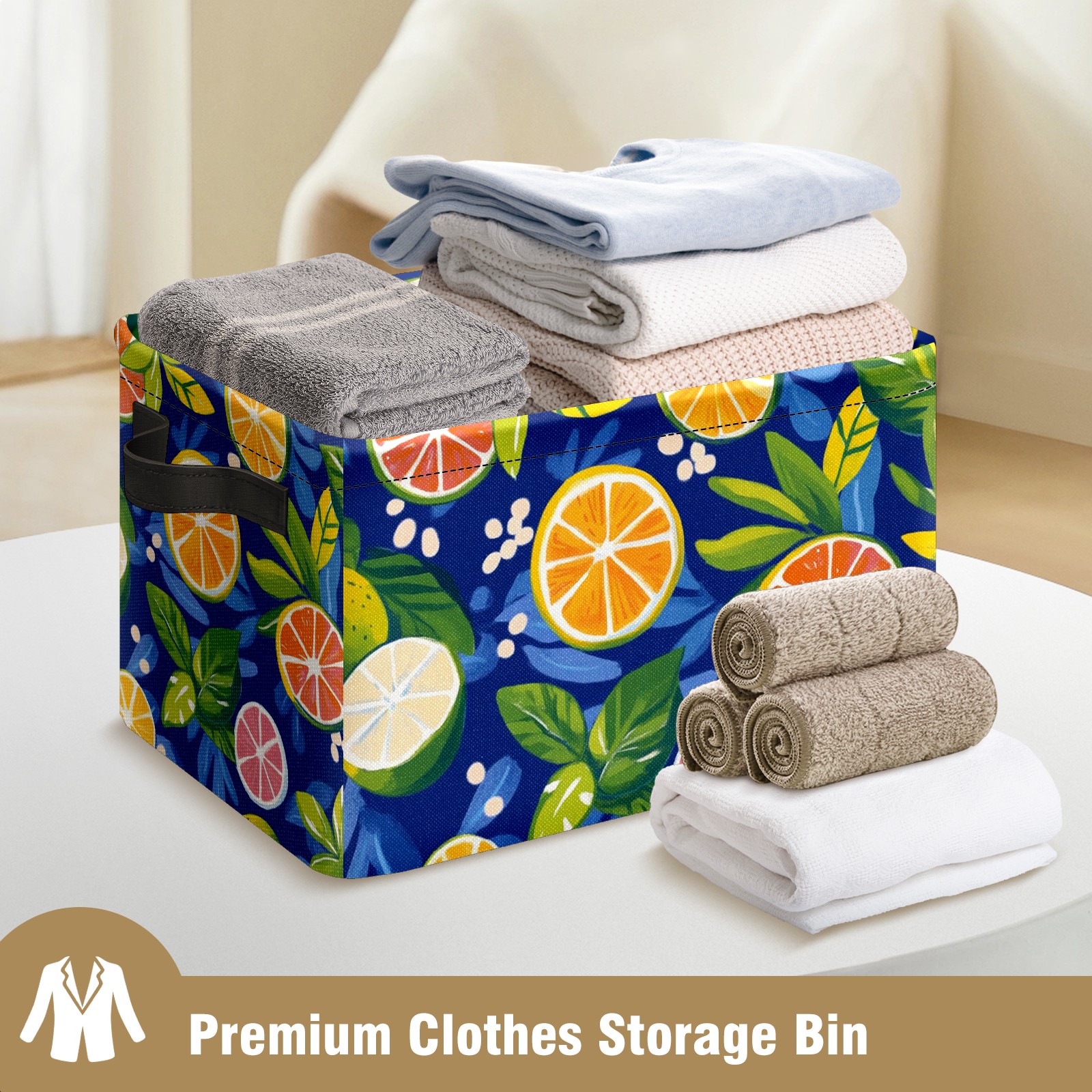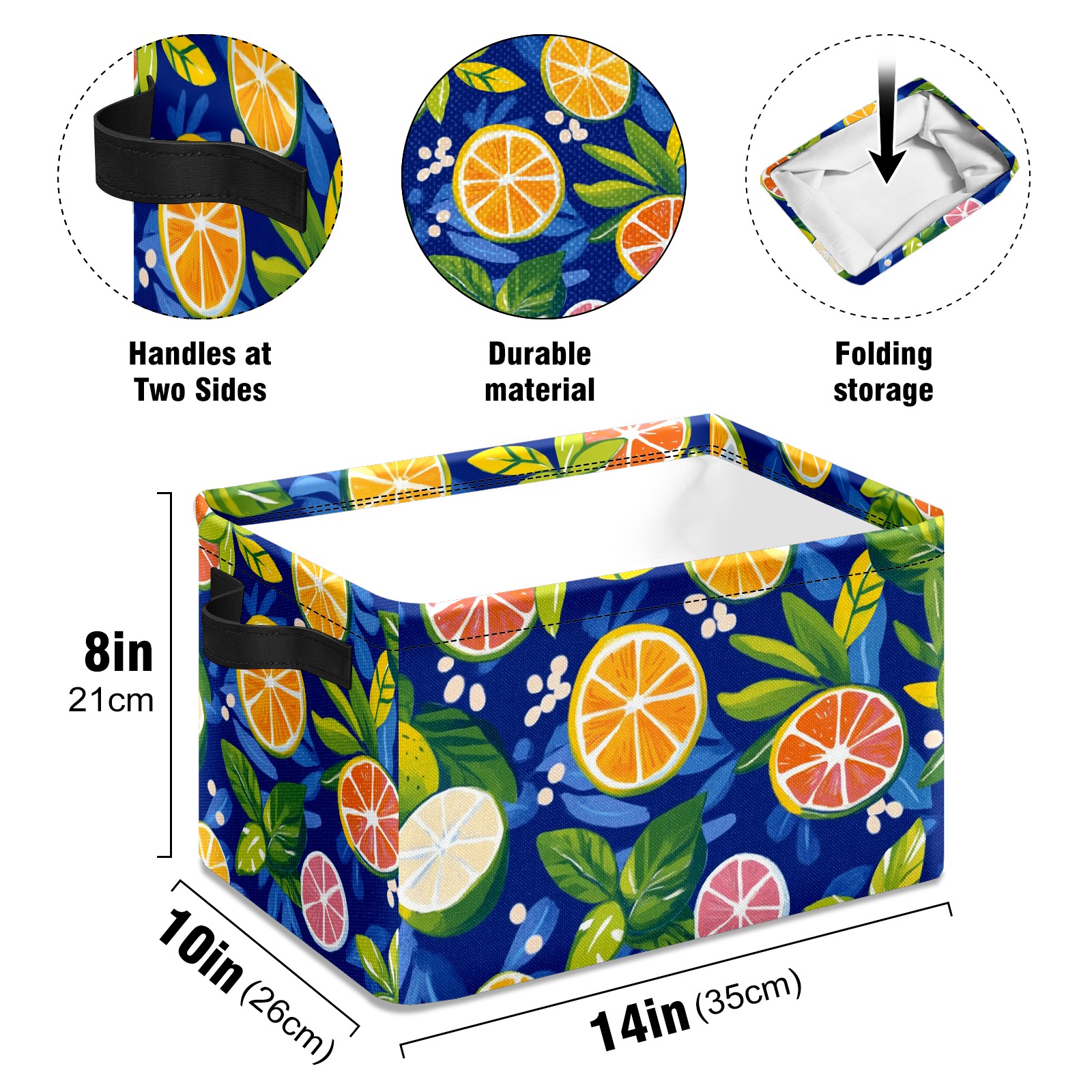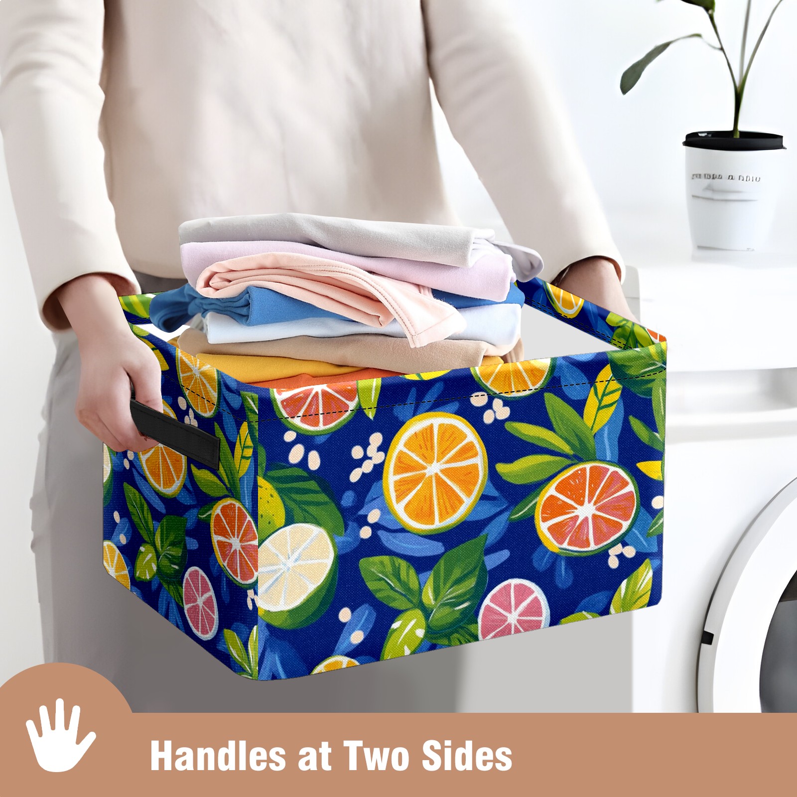 Foldable and Stackable Fabric Storage Basket for Home Organization with Handles, Decorative Closet Bins for Shelves and Laundry Storage( Oranges And Lemons)