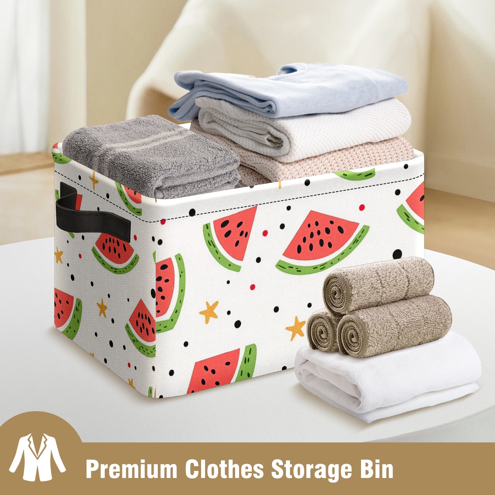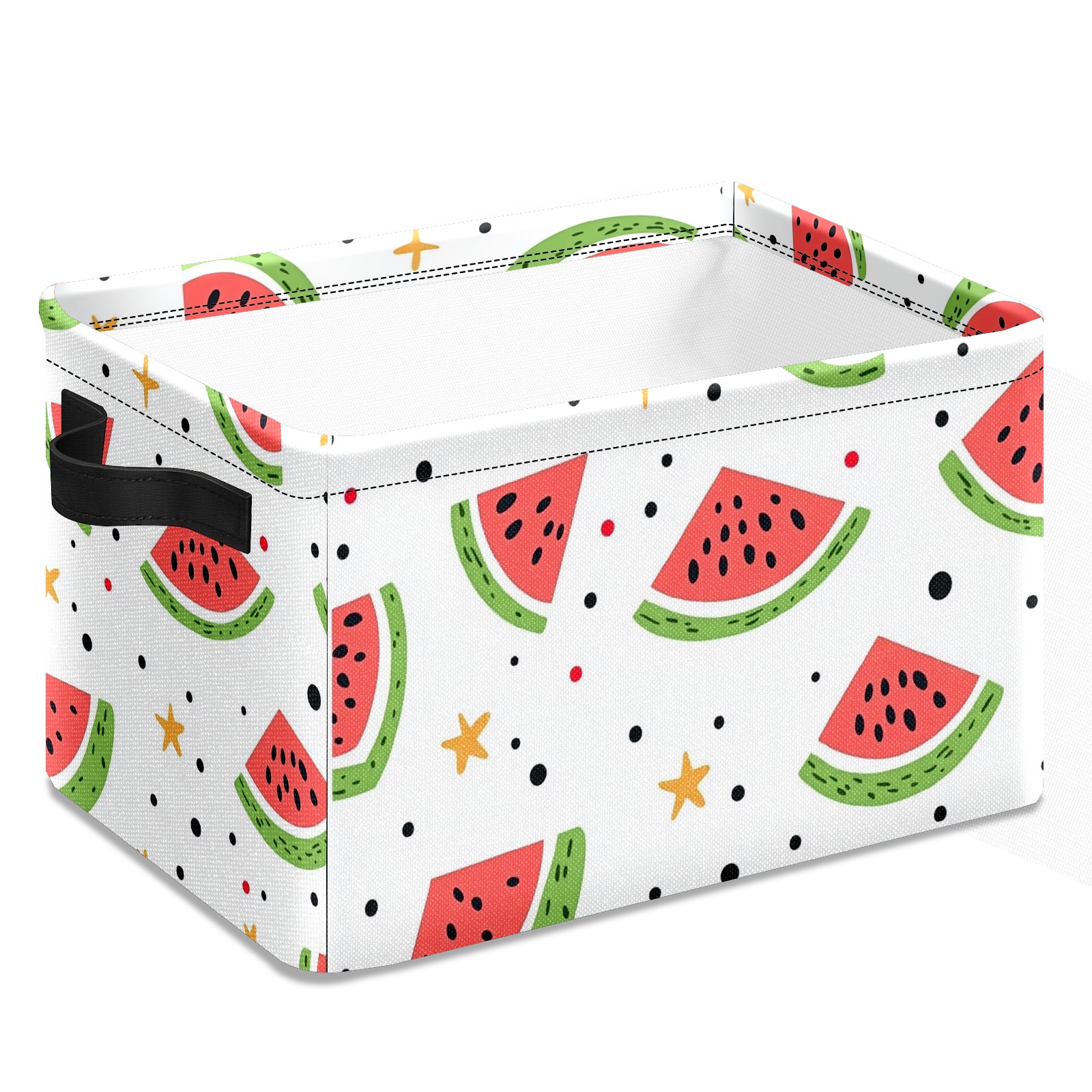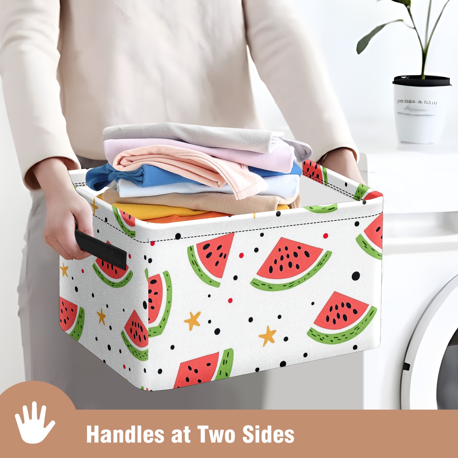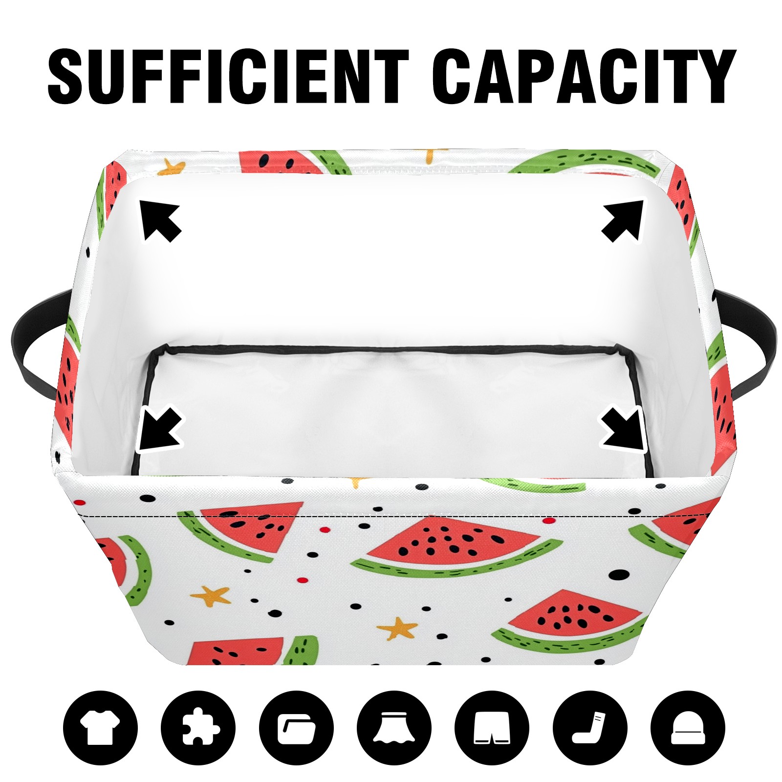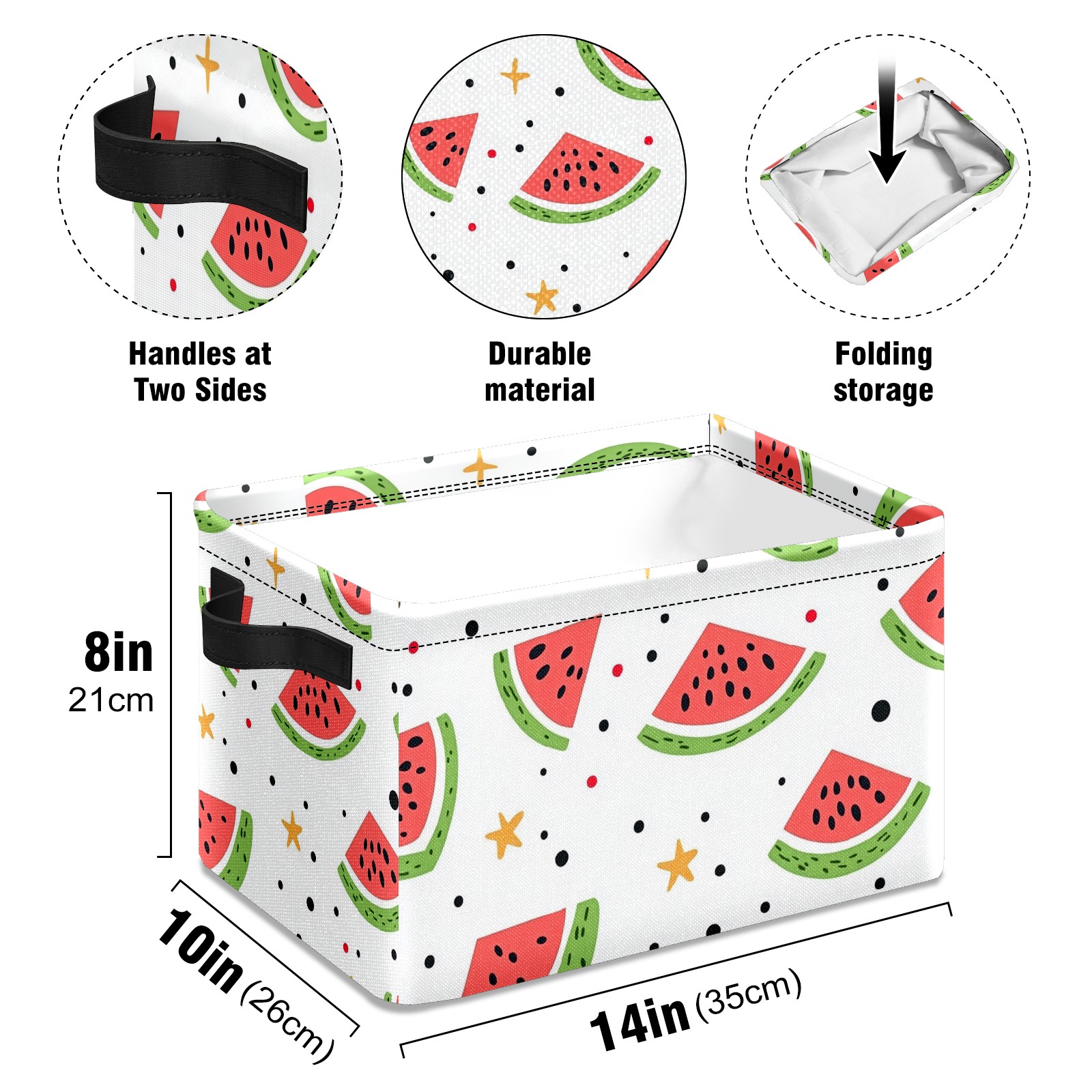 Foldable and Stackable Fabric Storage Basket for Home Organization with Handles, Decorative Closet Bins for Shelves and Laundry Storage( Cute Watermelon)