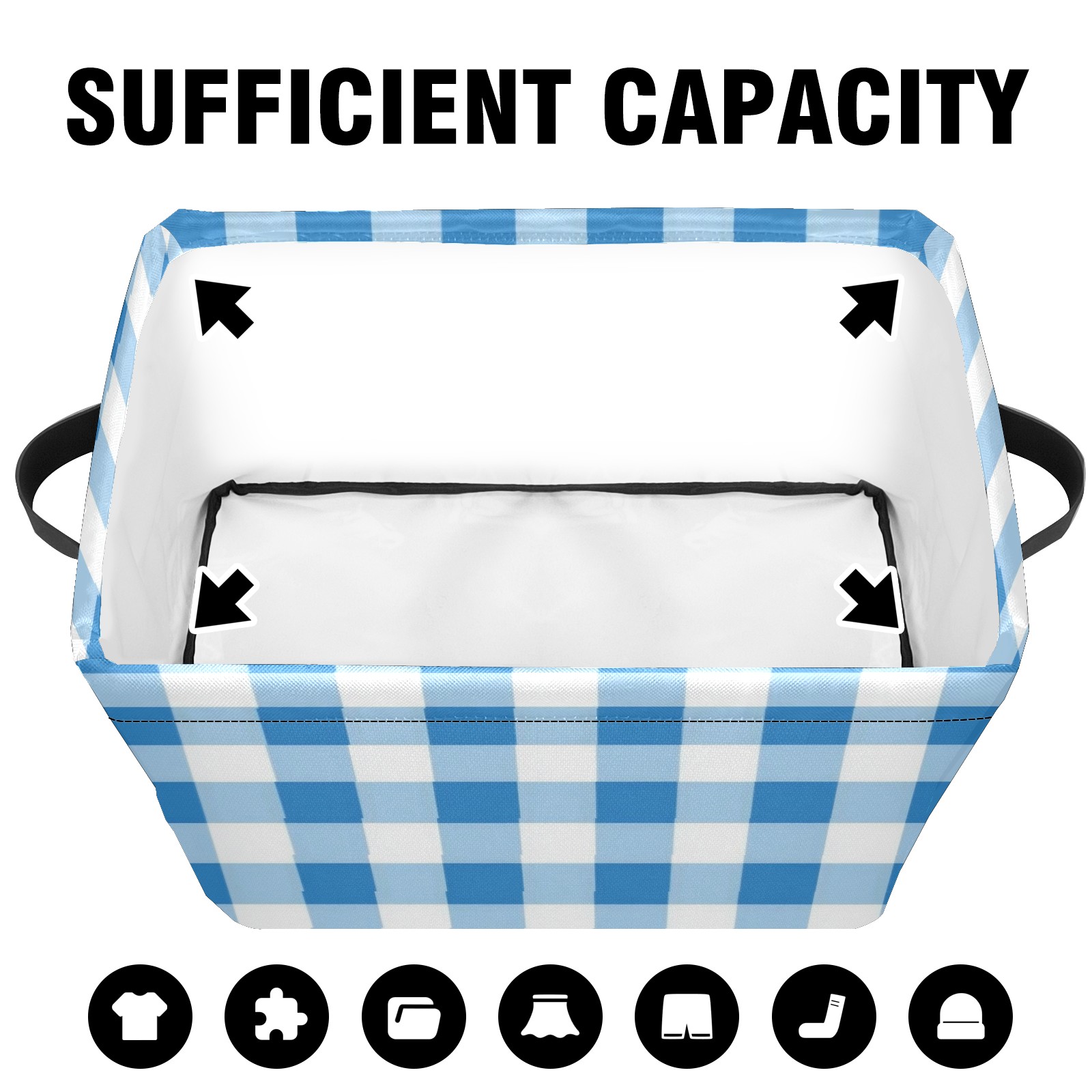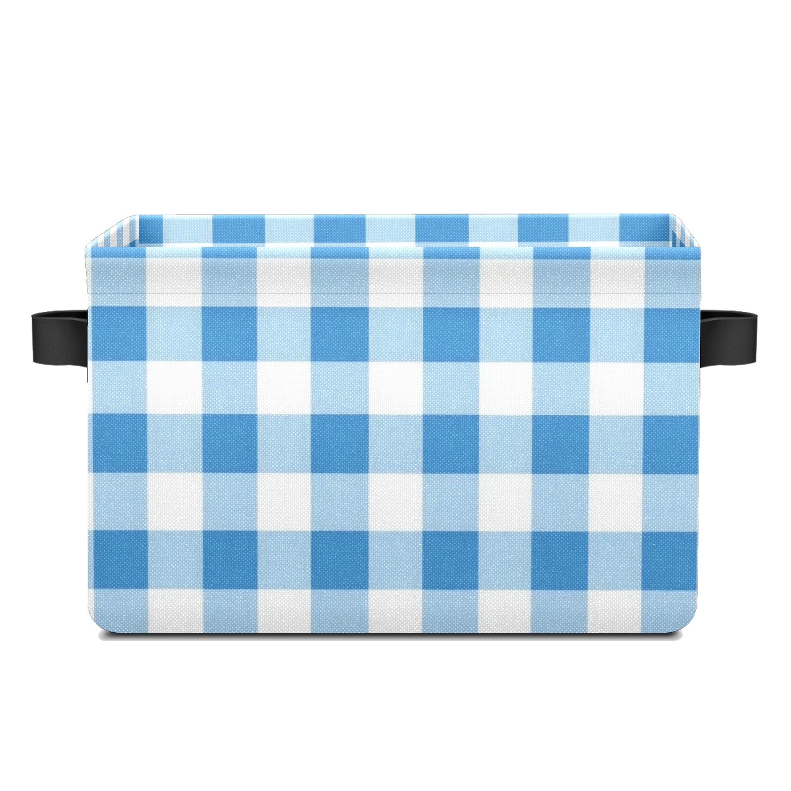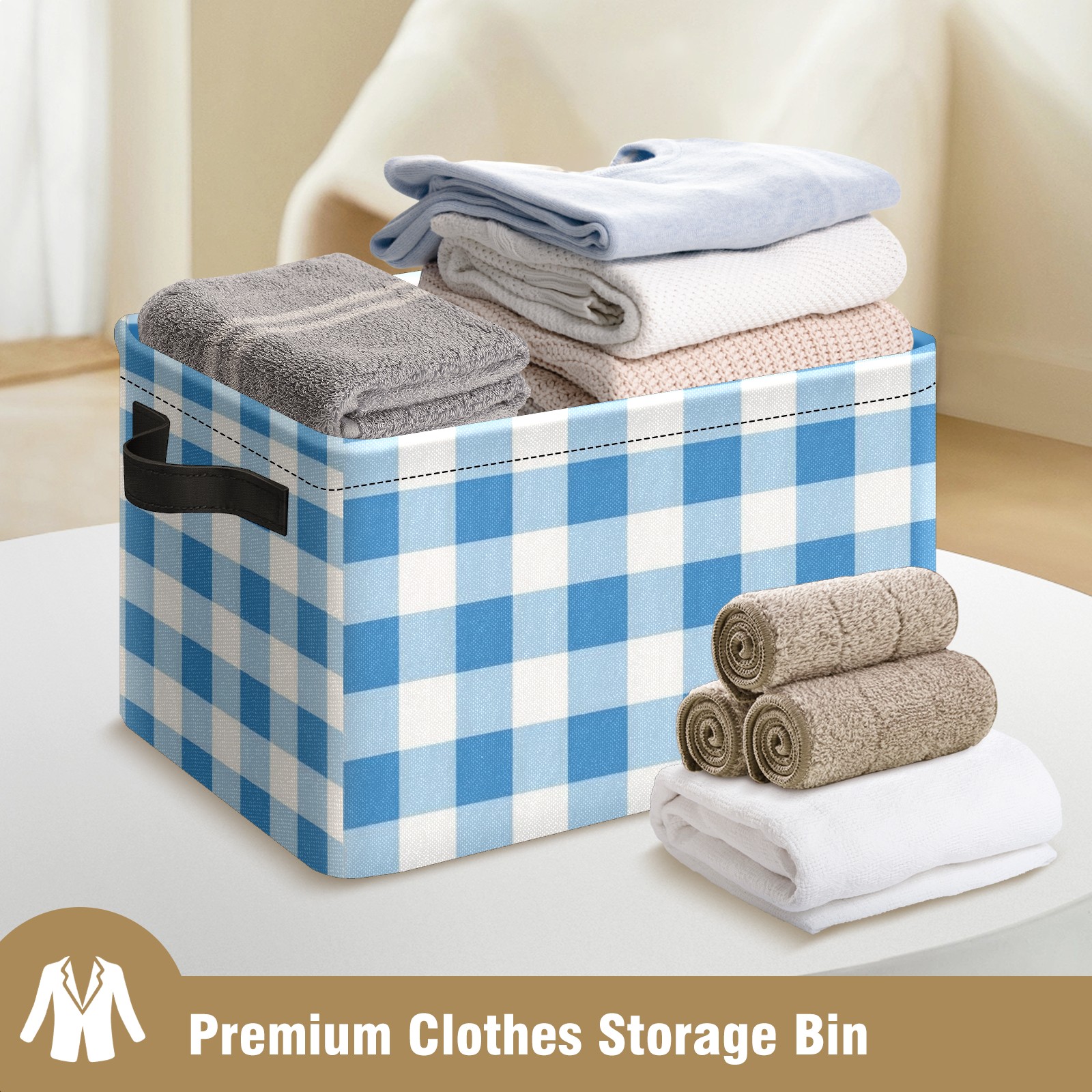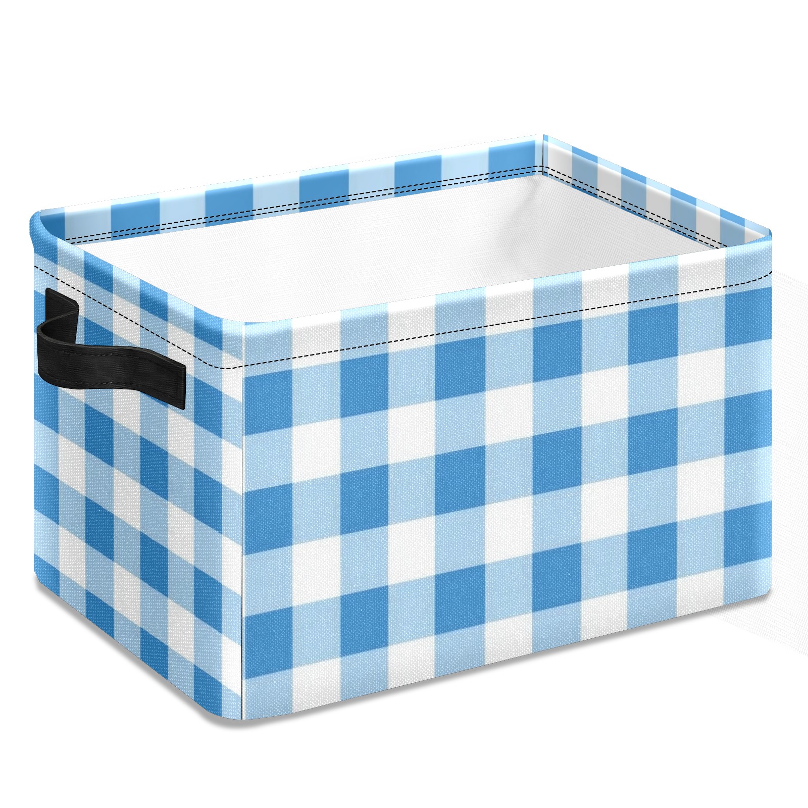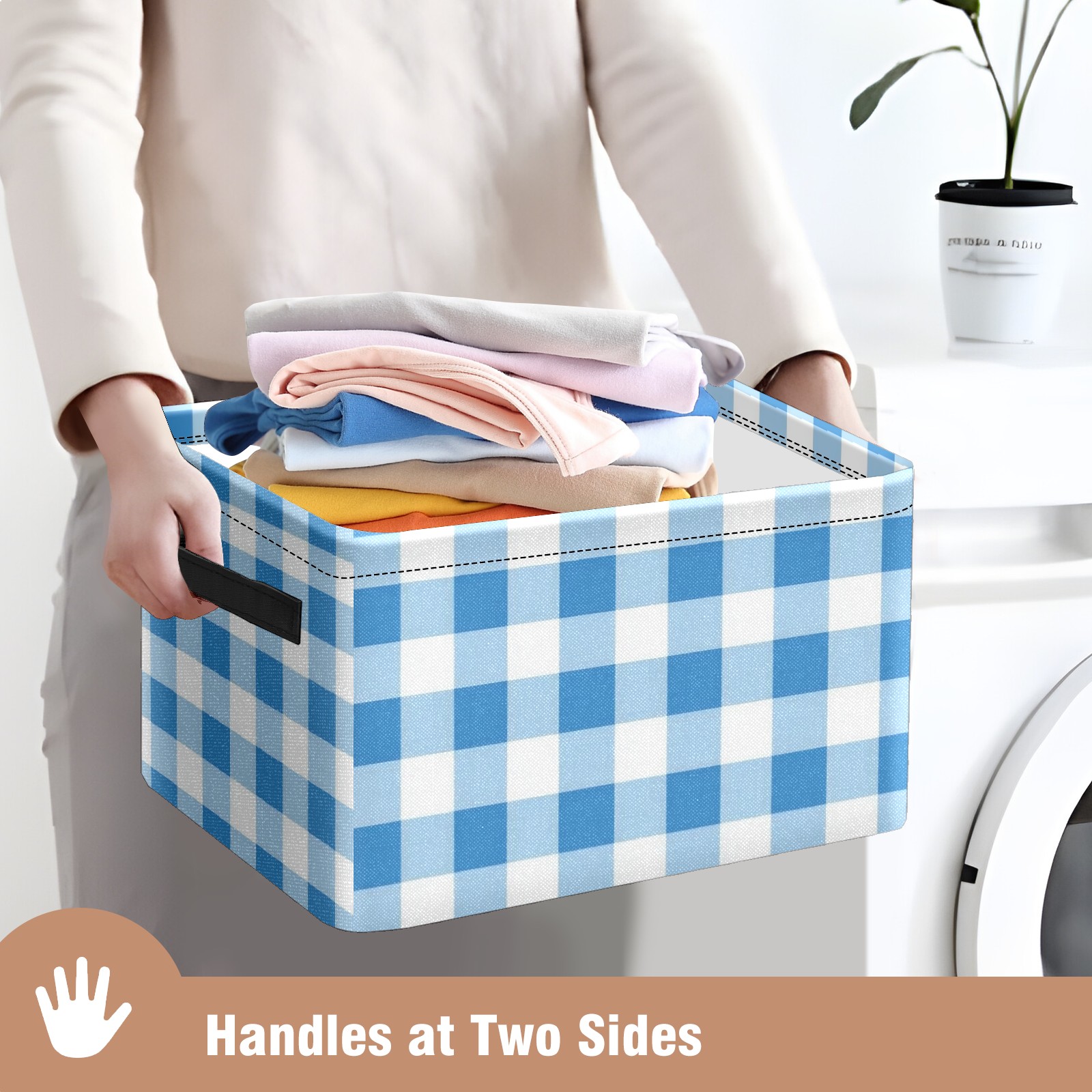 Foldable and Stackable Fabric Storage Basket for Home Organization with Handles, Decorative Closet Bins for Shelves and Laundry Storage( Light Blue Gingham)