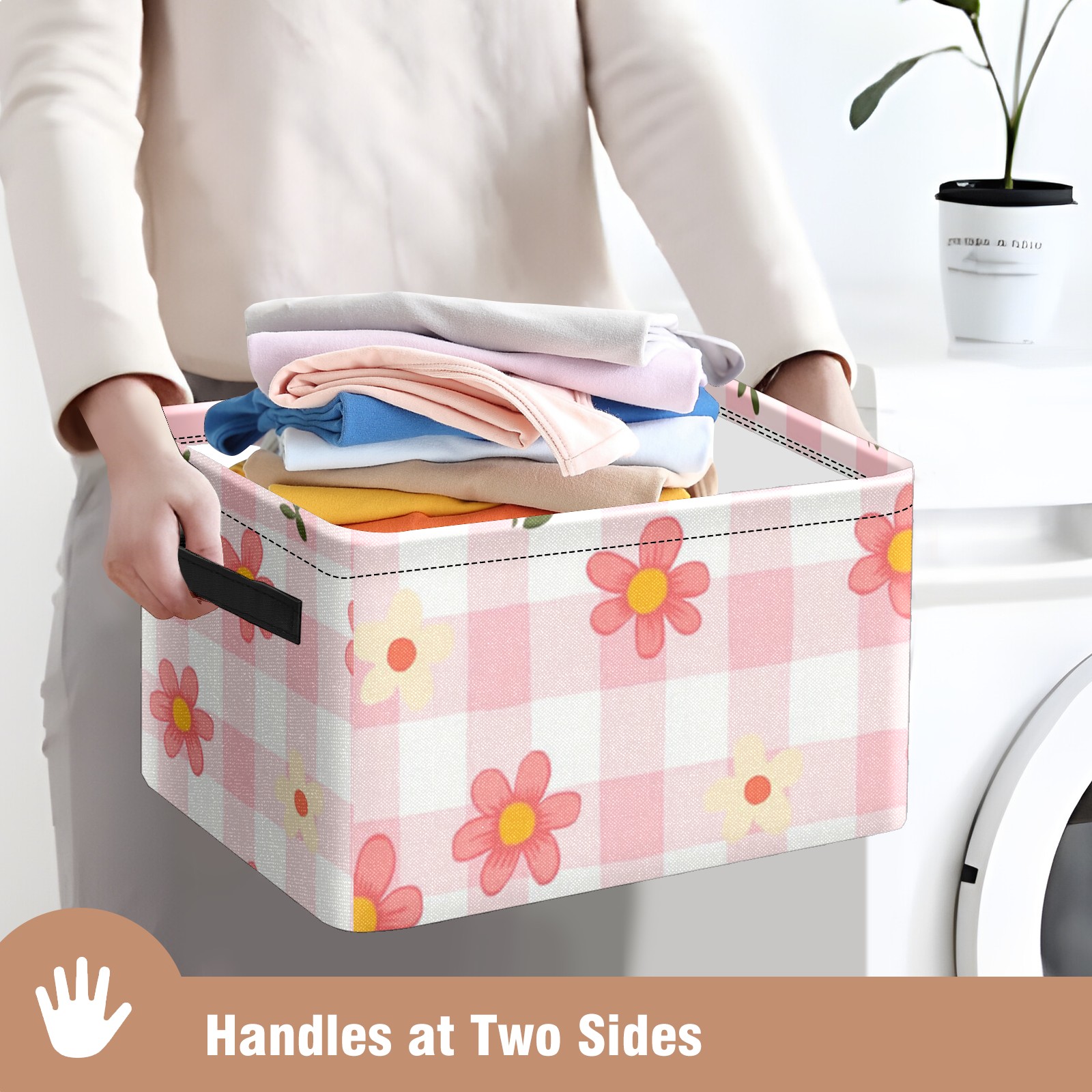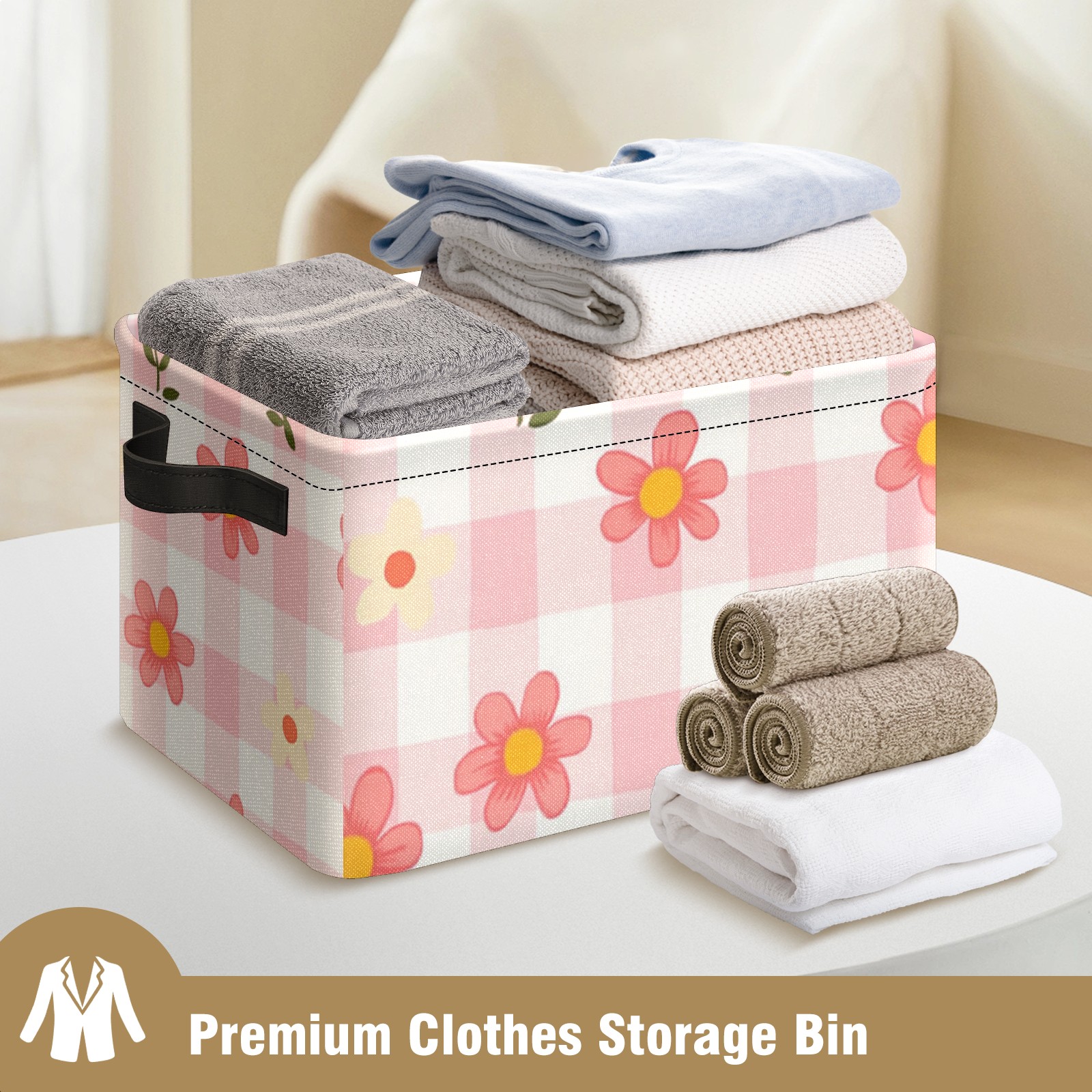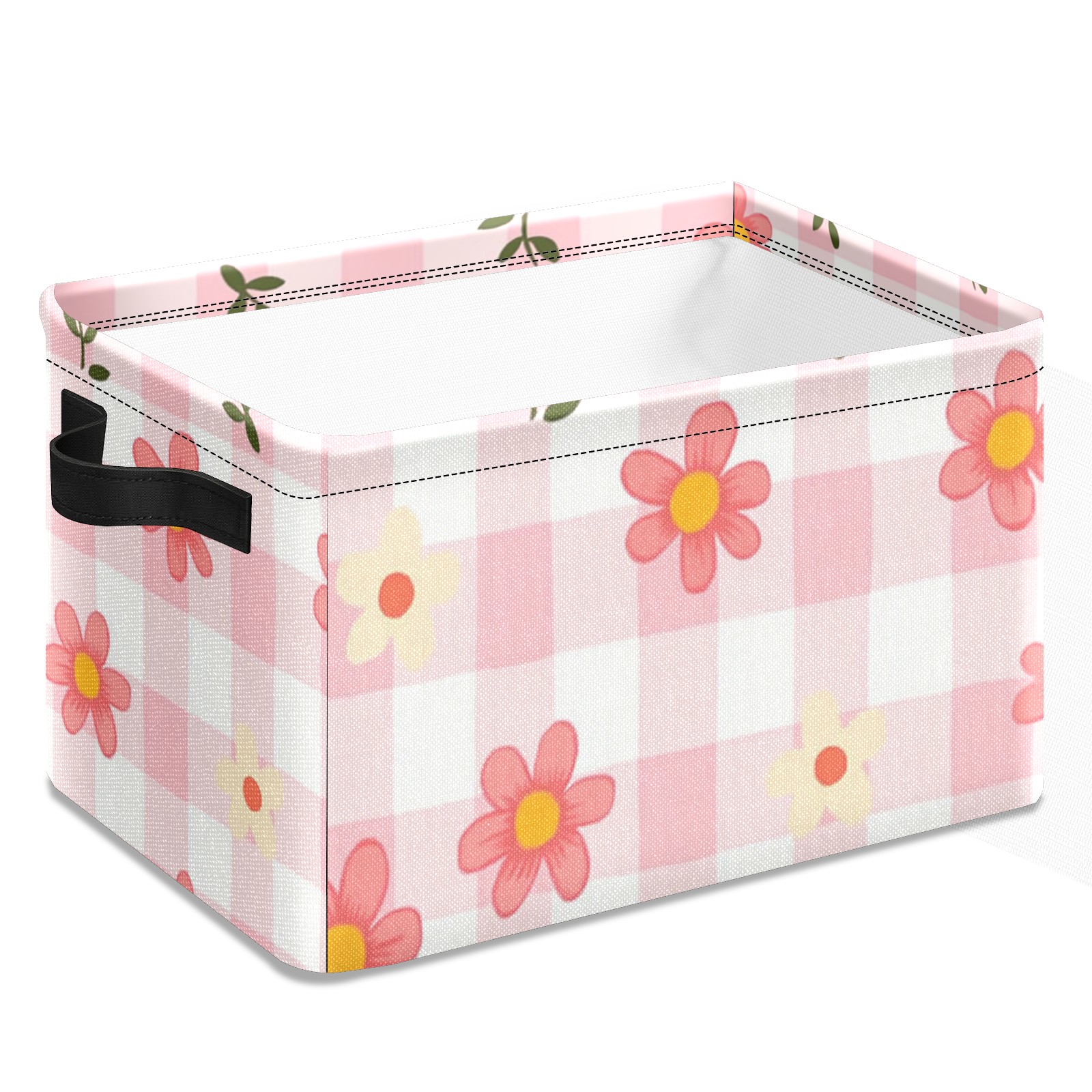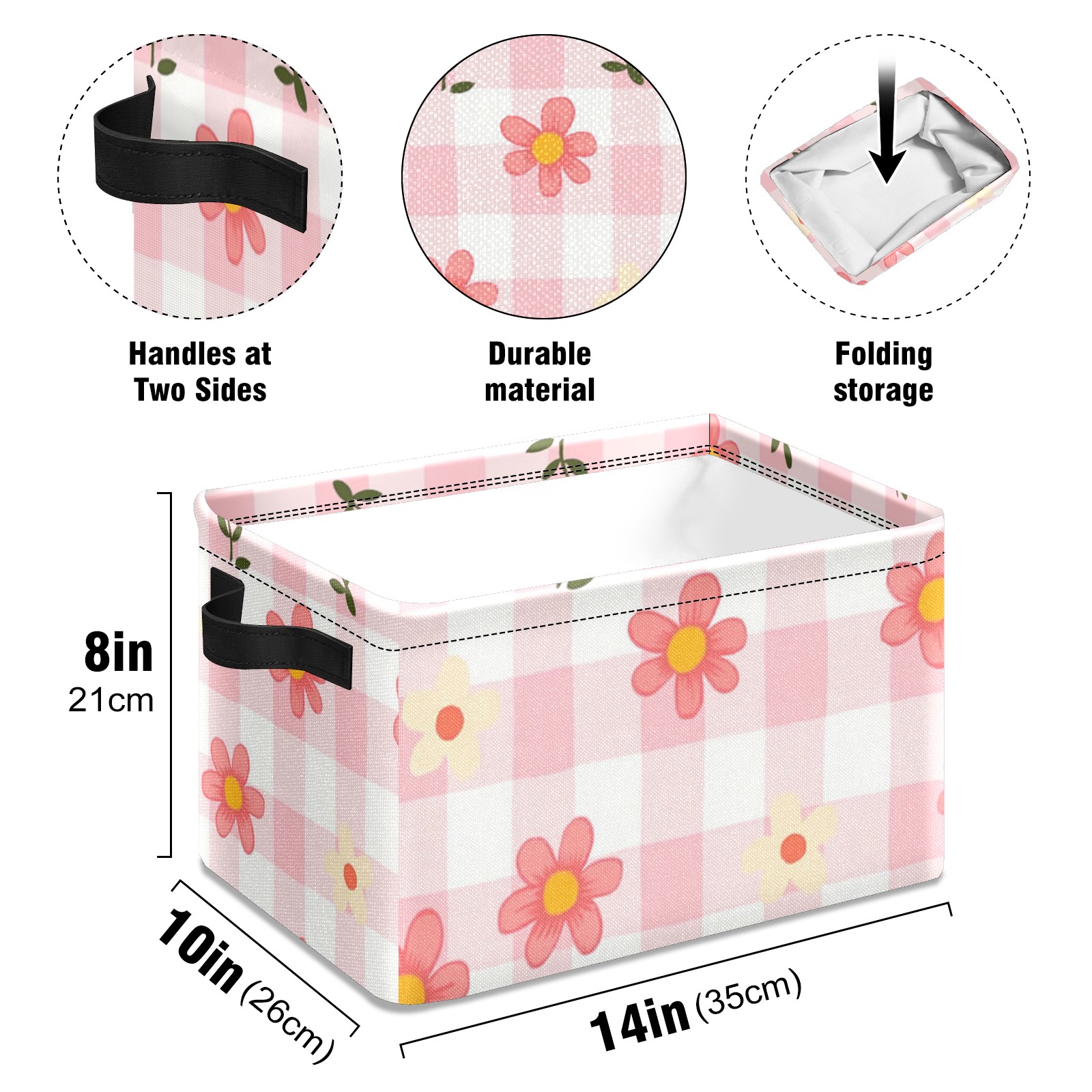 Foldable and Stackable Fabric Storage Basket for Home Organization with Handles, Decorative Closet Bins for Shelves and Laundry Storage( Pink Gingham)