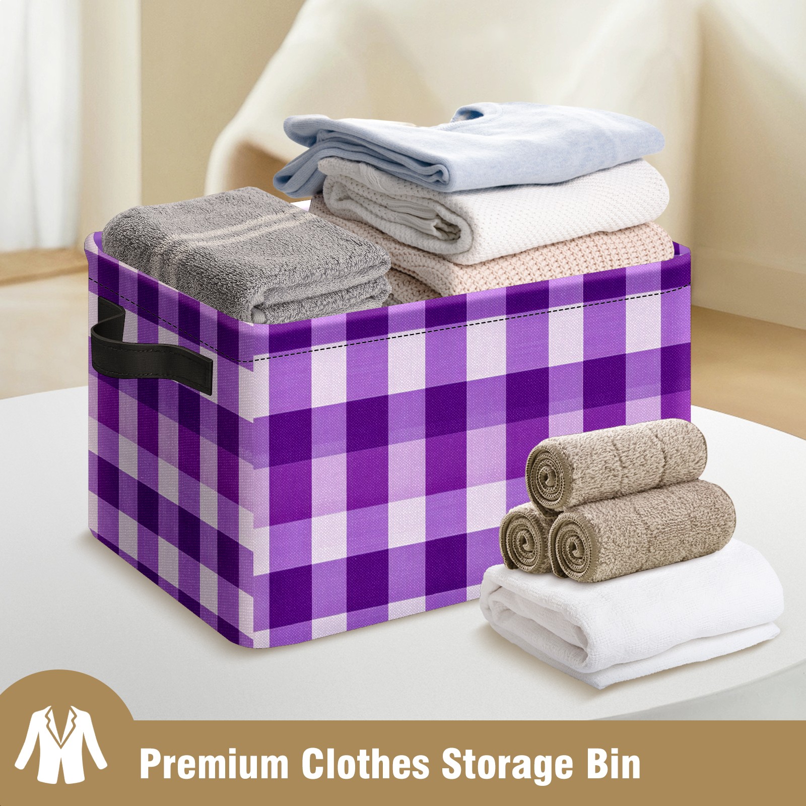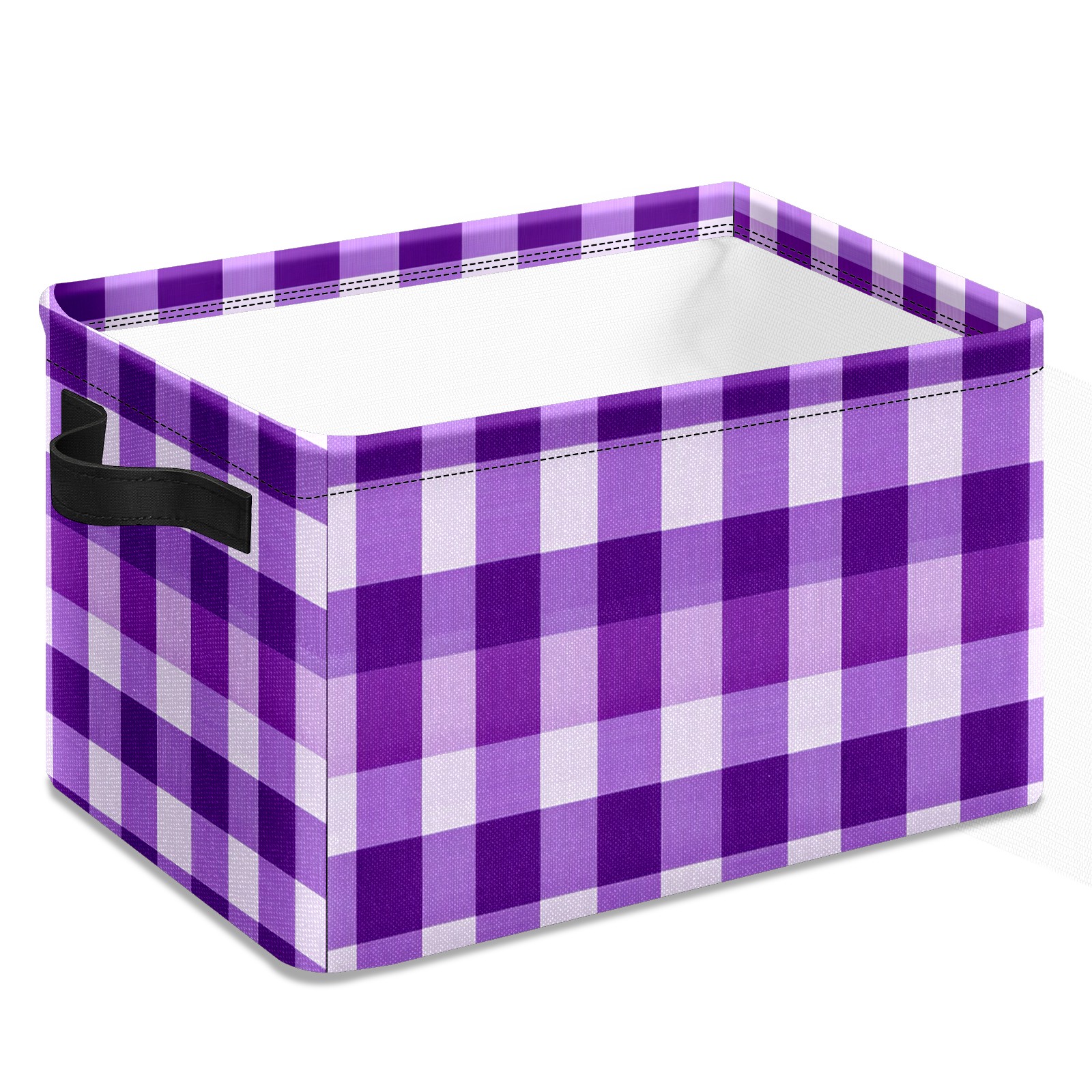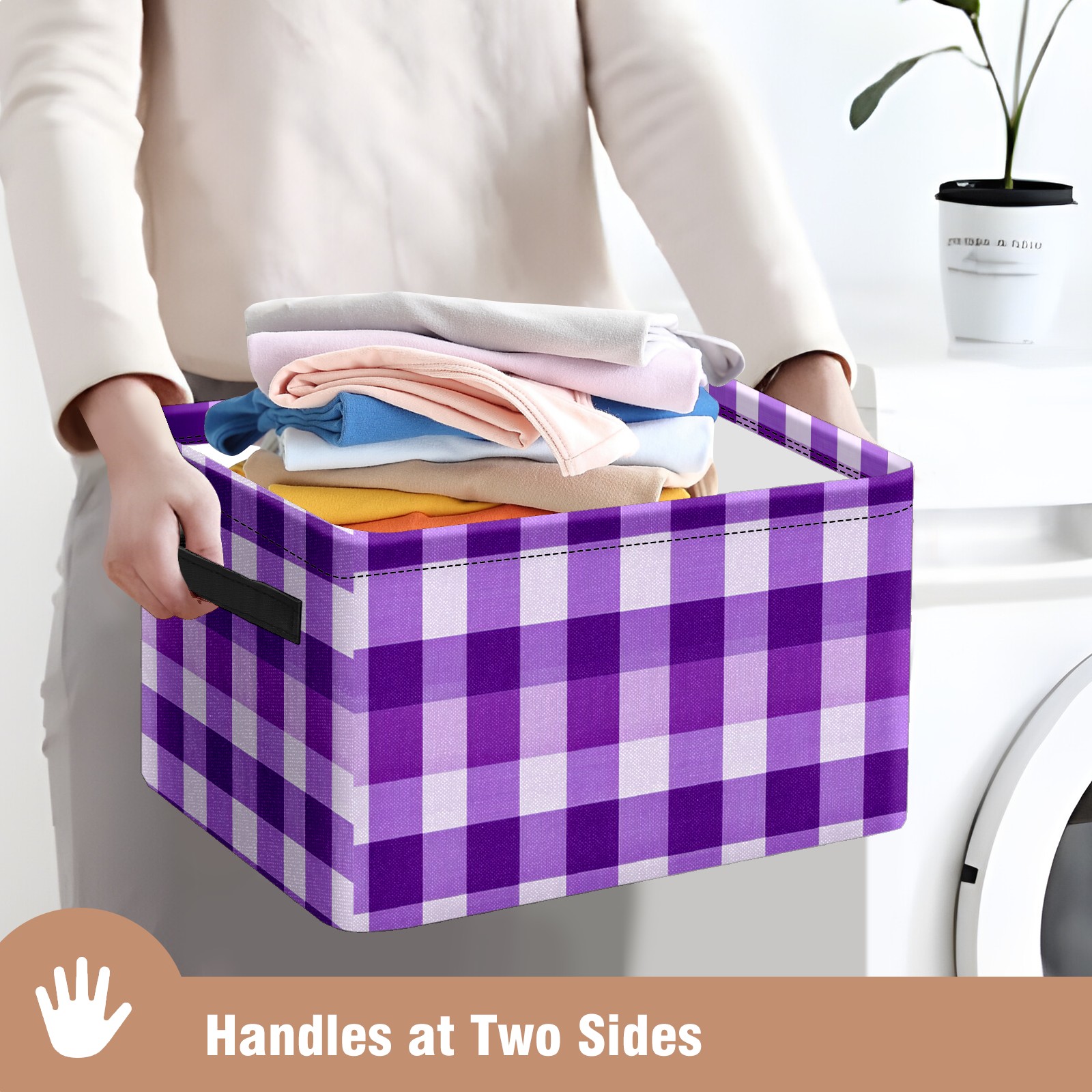 Foldable and Stackable Fabric Storage Basket for Home Organization with Handles, Decorative Closet Bins for Shelves and Laundry Storage( Purple Gingham)