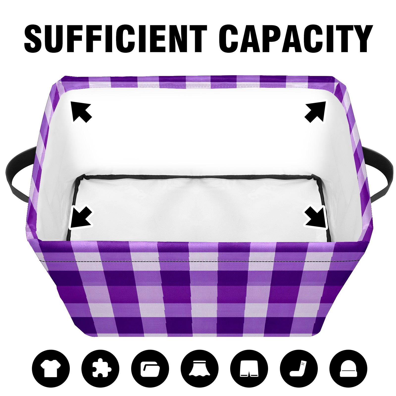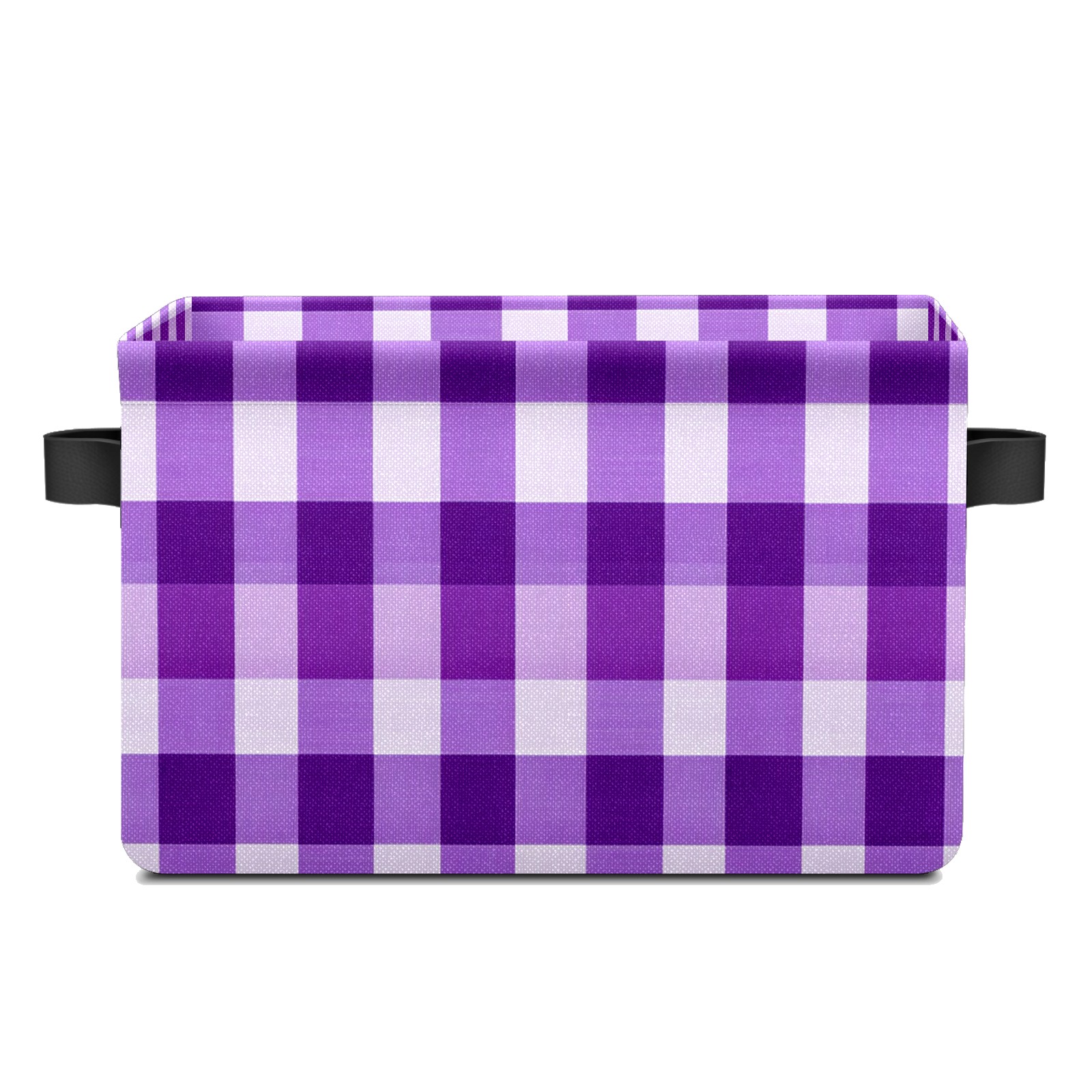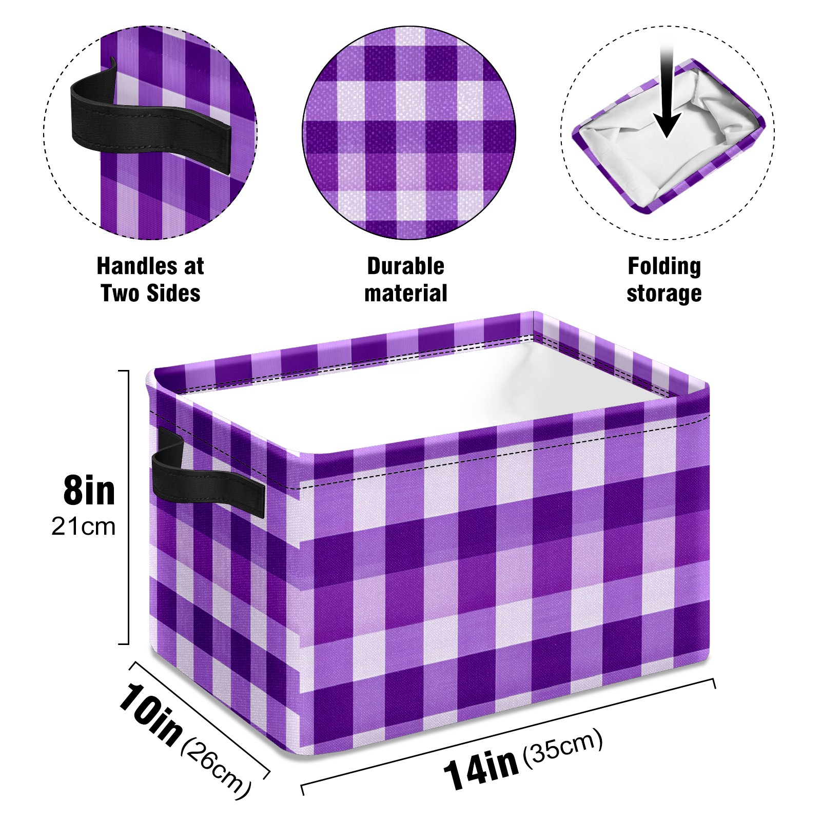 Foldable and Stackable Fabric Storage Basket for Home Organization with Handles, Decorative Closet Bins for Shelves and Laundry Storage( Purple Gingham)