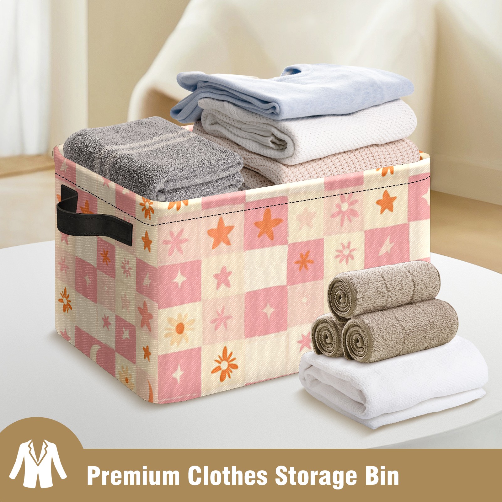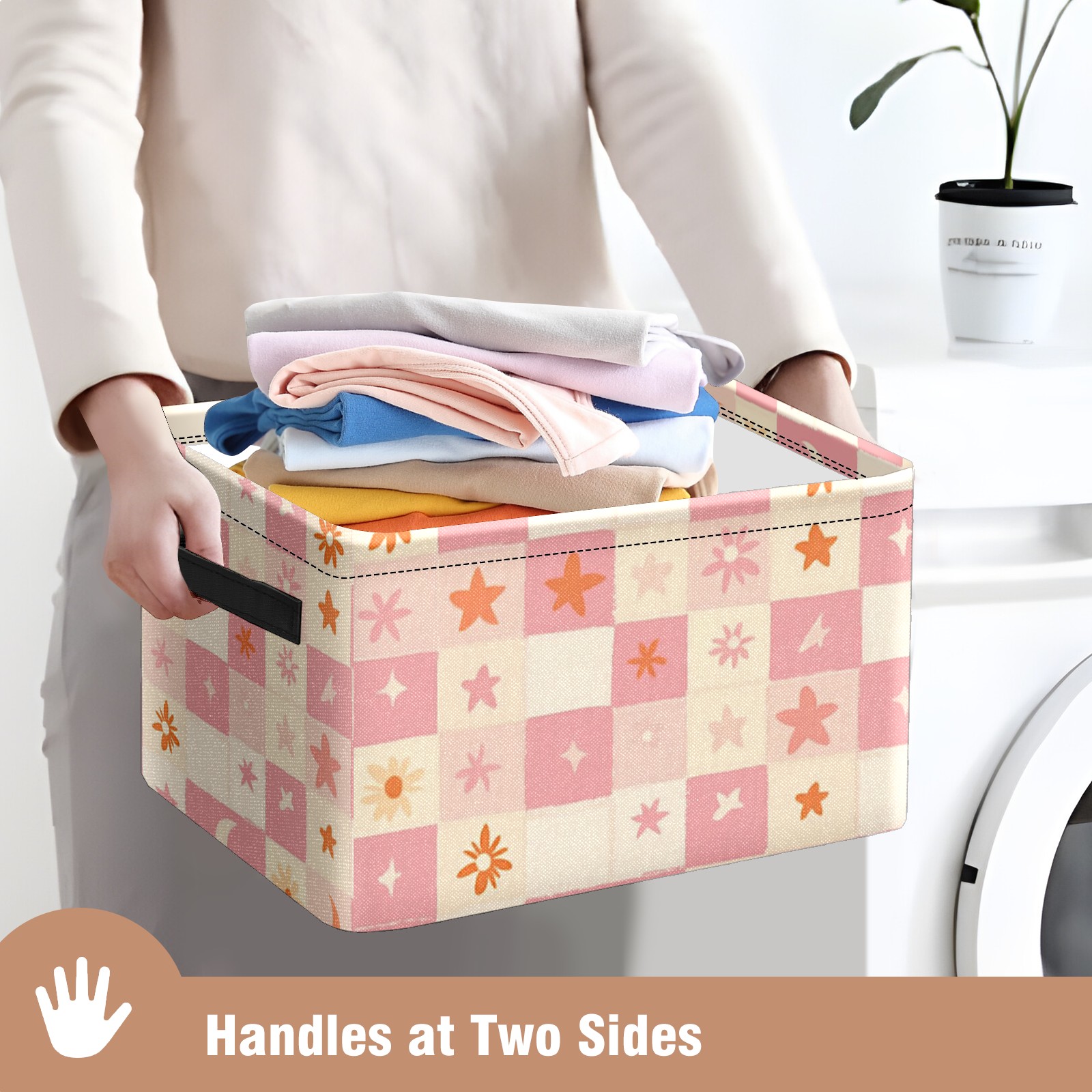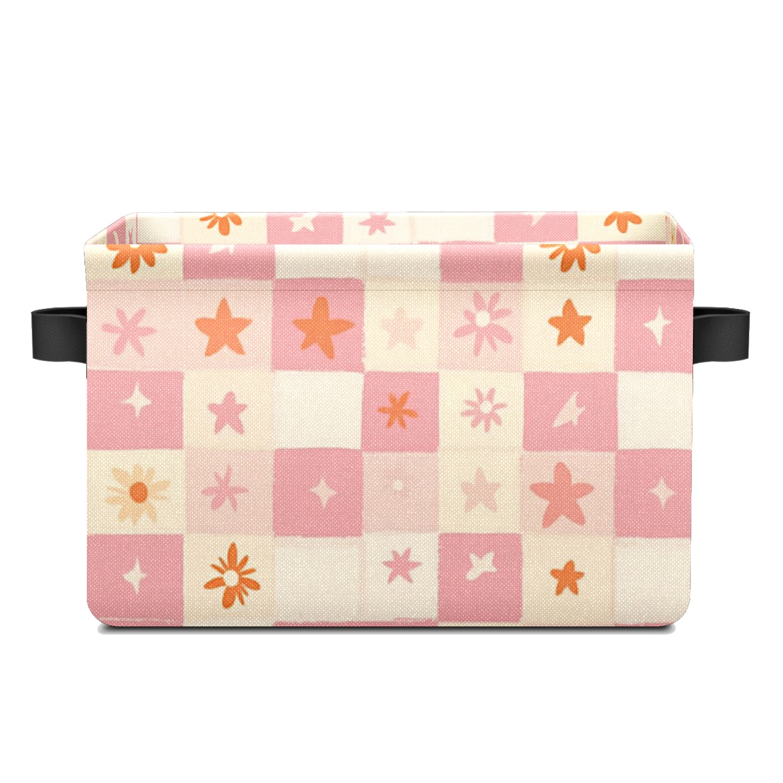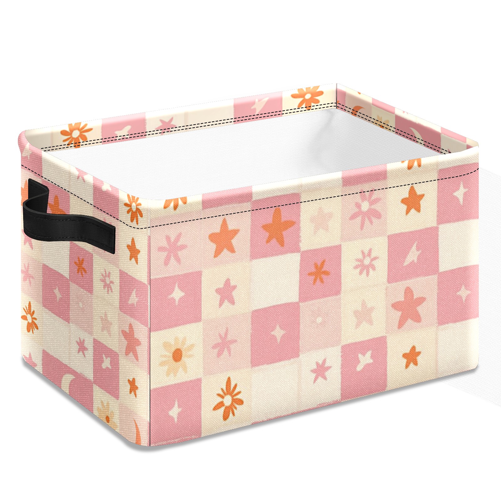 Foldable and Stackable Fabric Storage Basket for Home Organization with Handles, Decorative Closet Bins for Shelves and Laundry Storage( Pink And Peach Pastel Checkered)