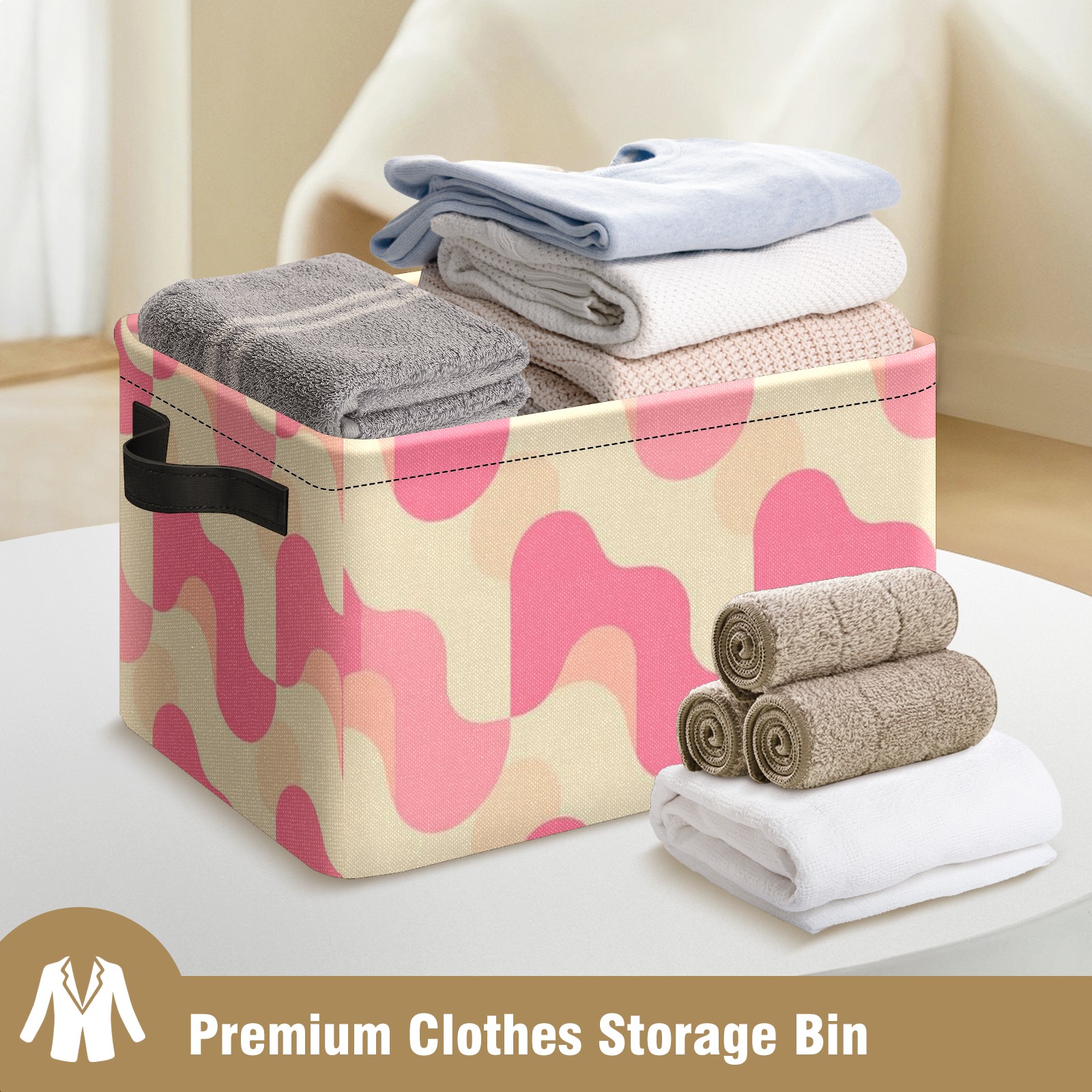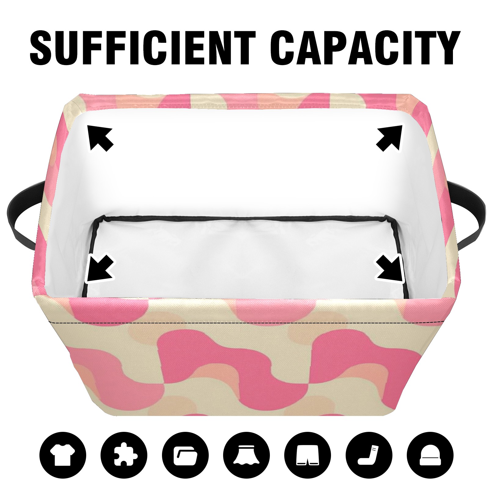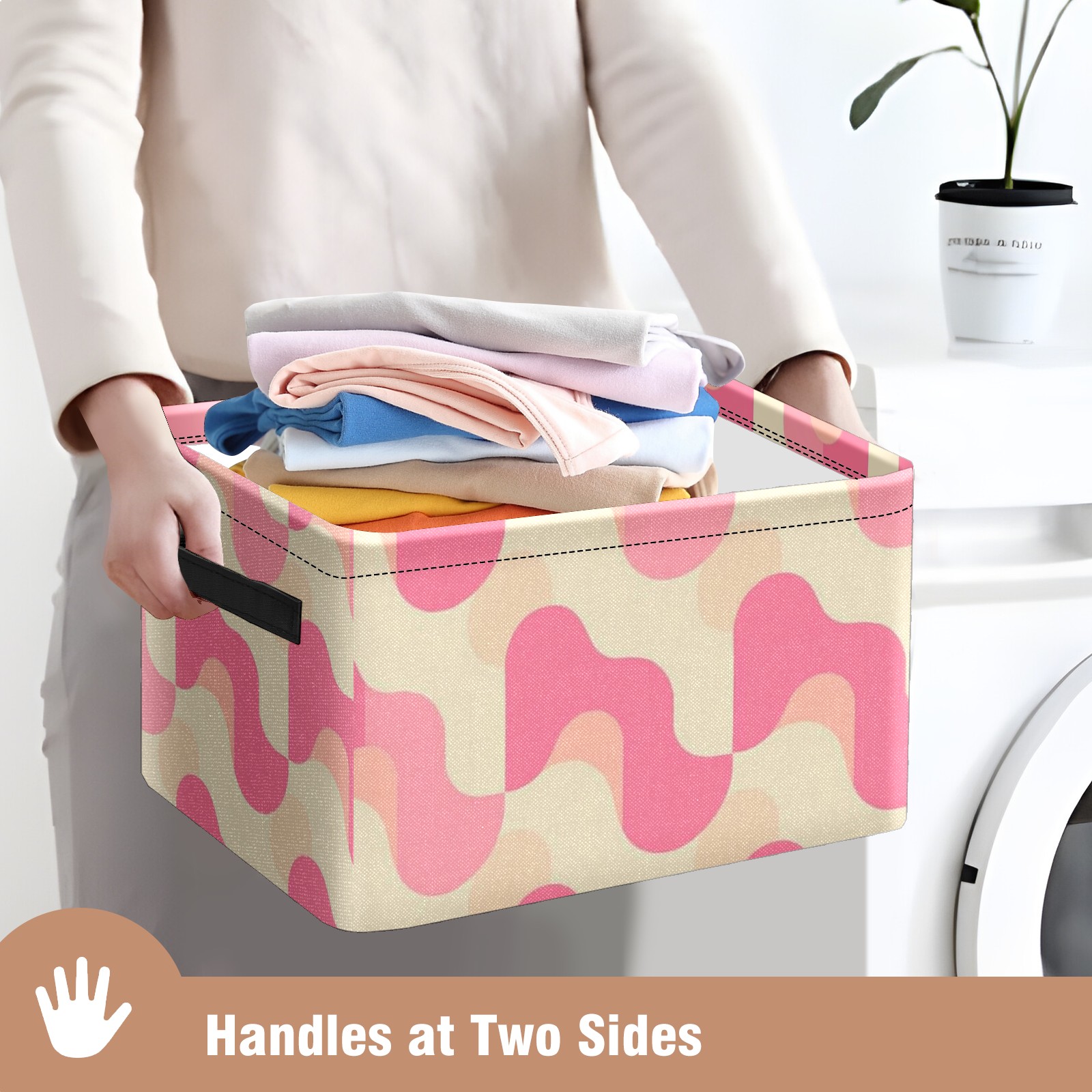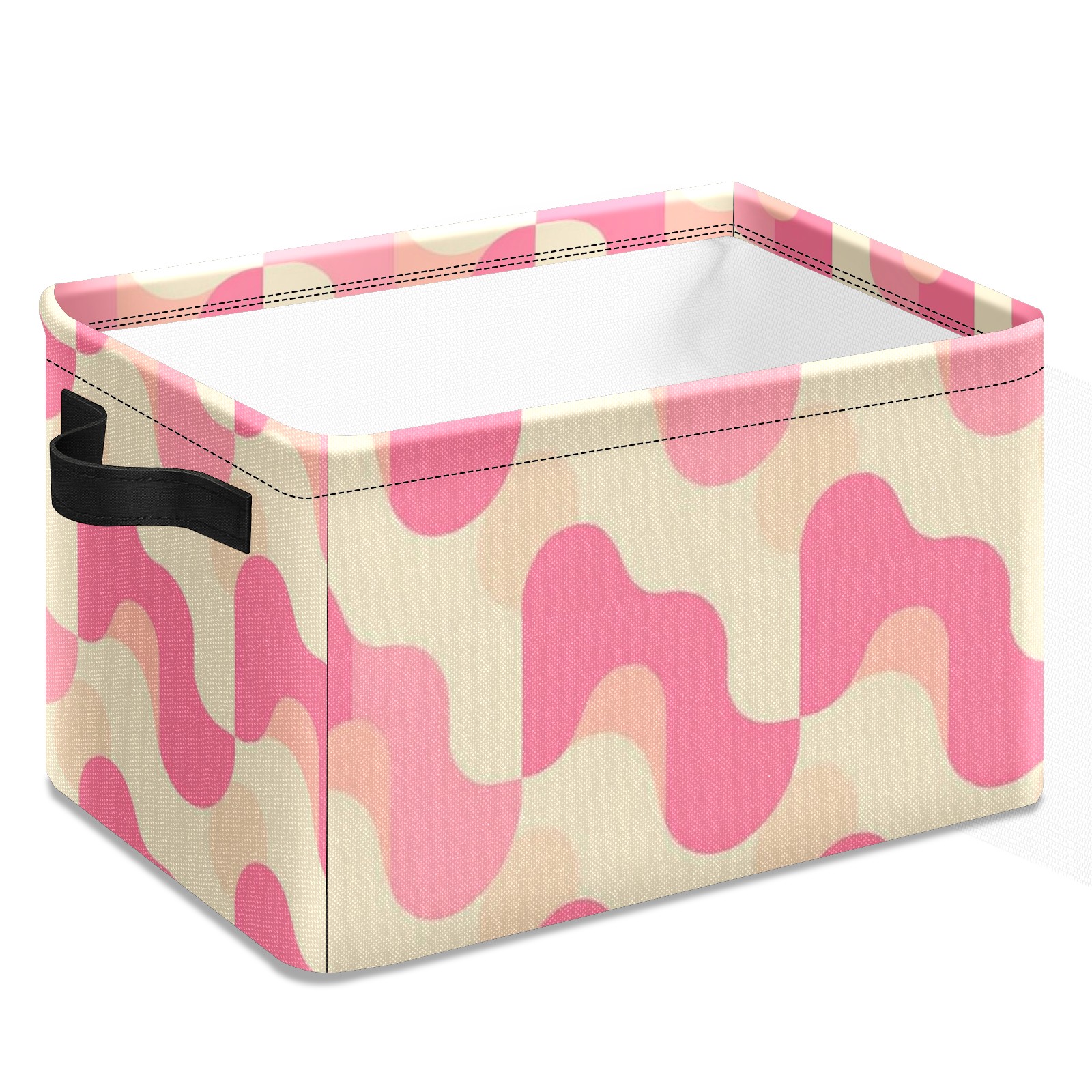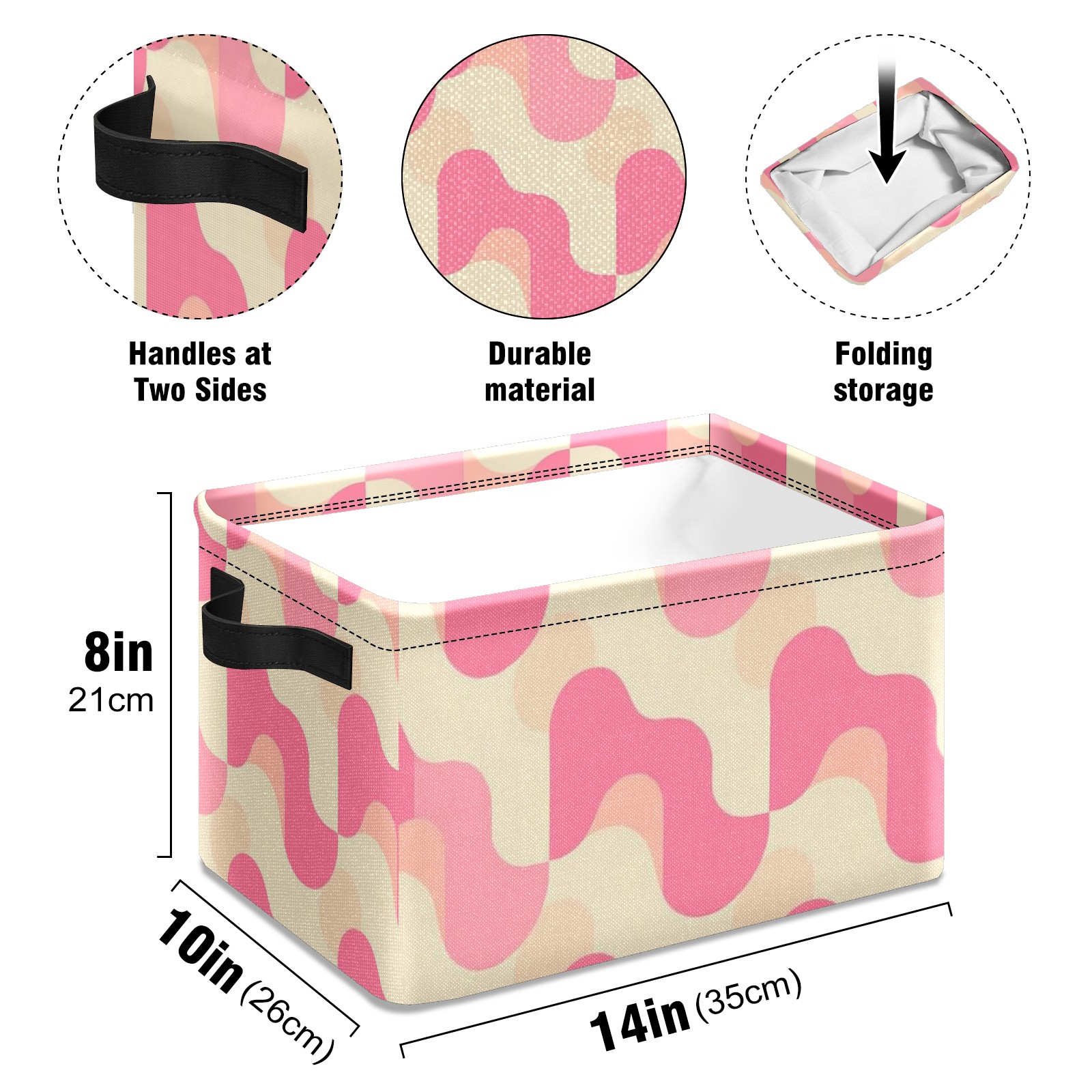 Foldable and Stackable Fabric Storage Basket for Home Organization with Handles, Decorative Closet Bins for Shelves and Laundry Storage( Pink And Cream Retro Groovy)