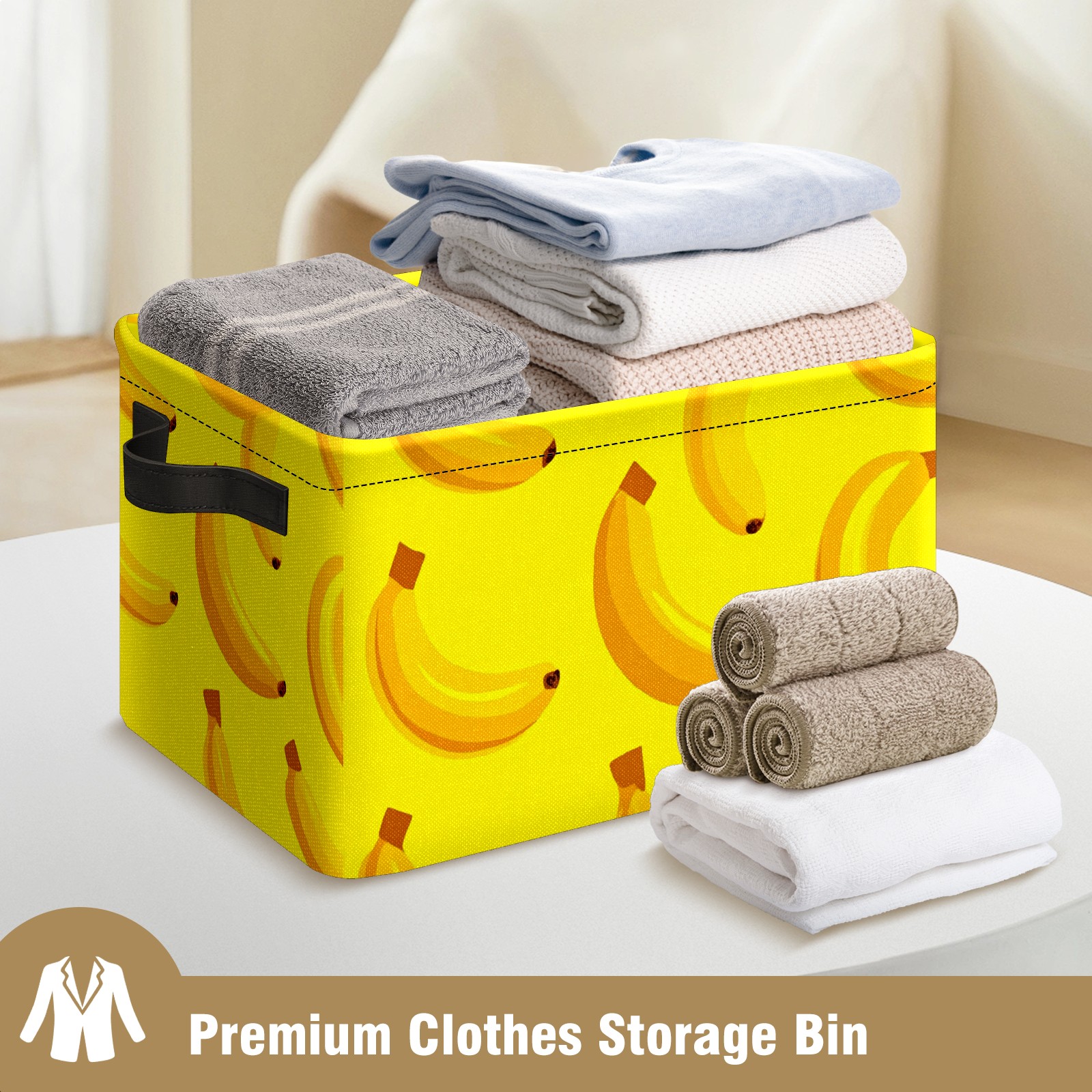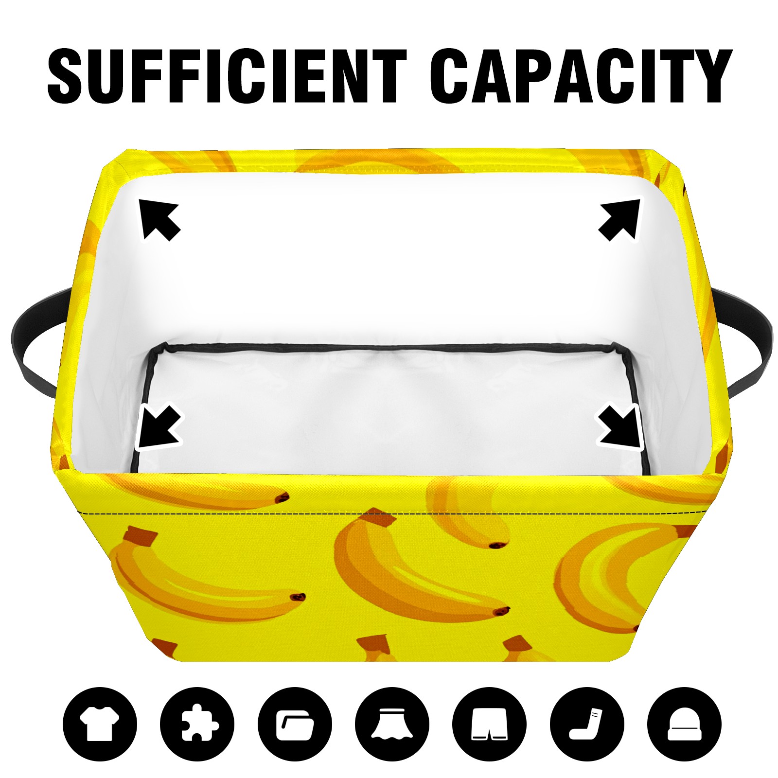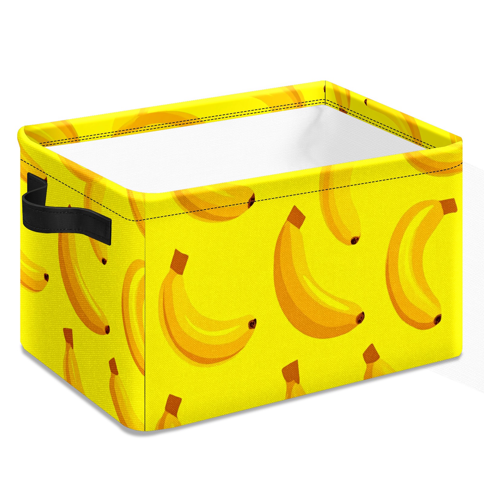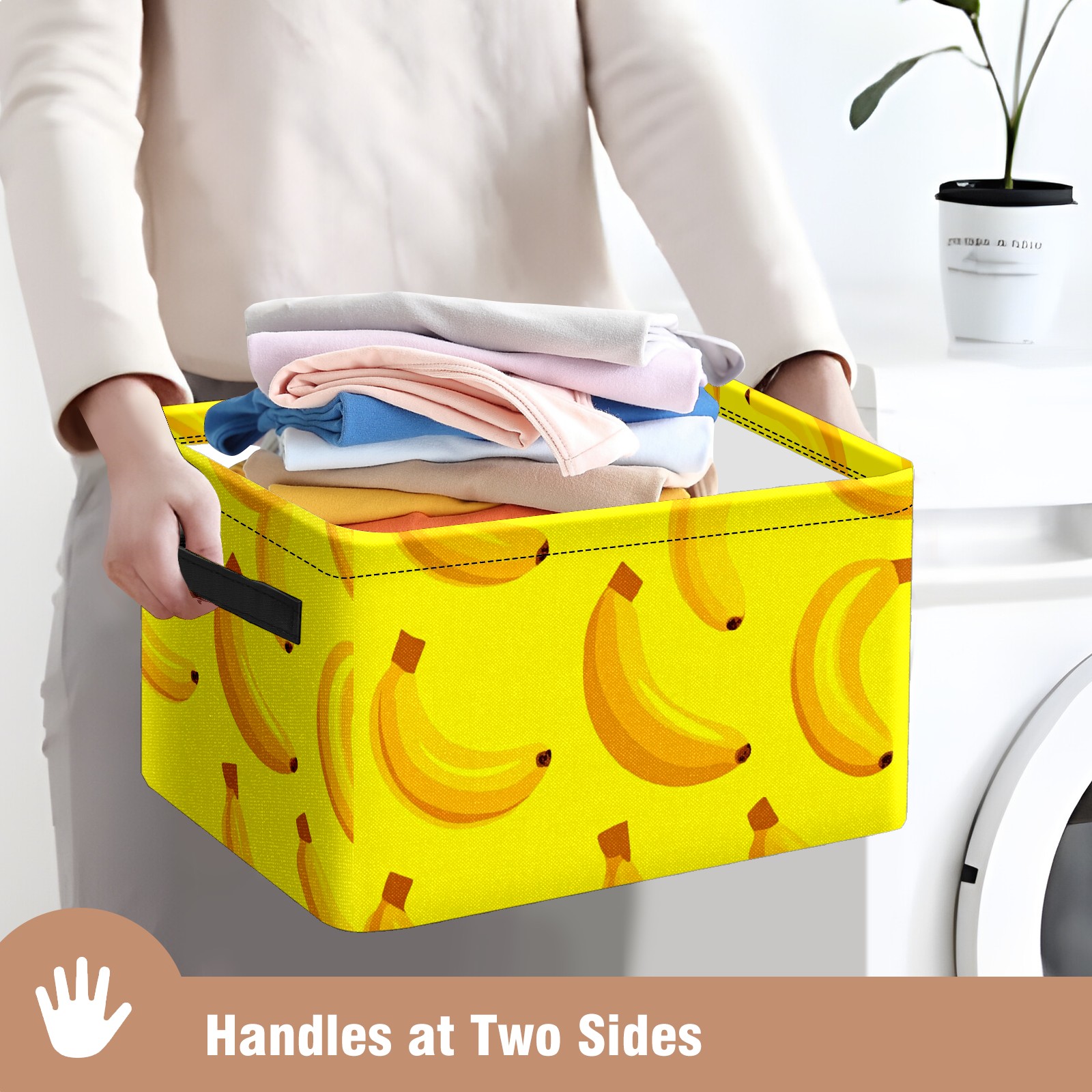 Foldable and Stackable Fabric Storage Basket for Home Organization with Handles, Decorative Closet Bins for Shelves and Laundry Storage( Yellow Bananas)