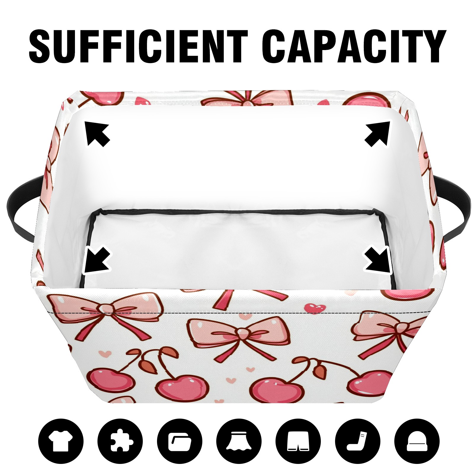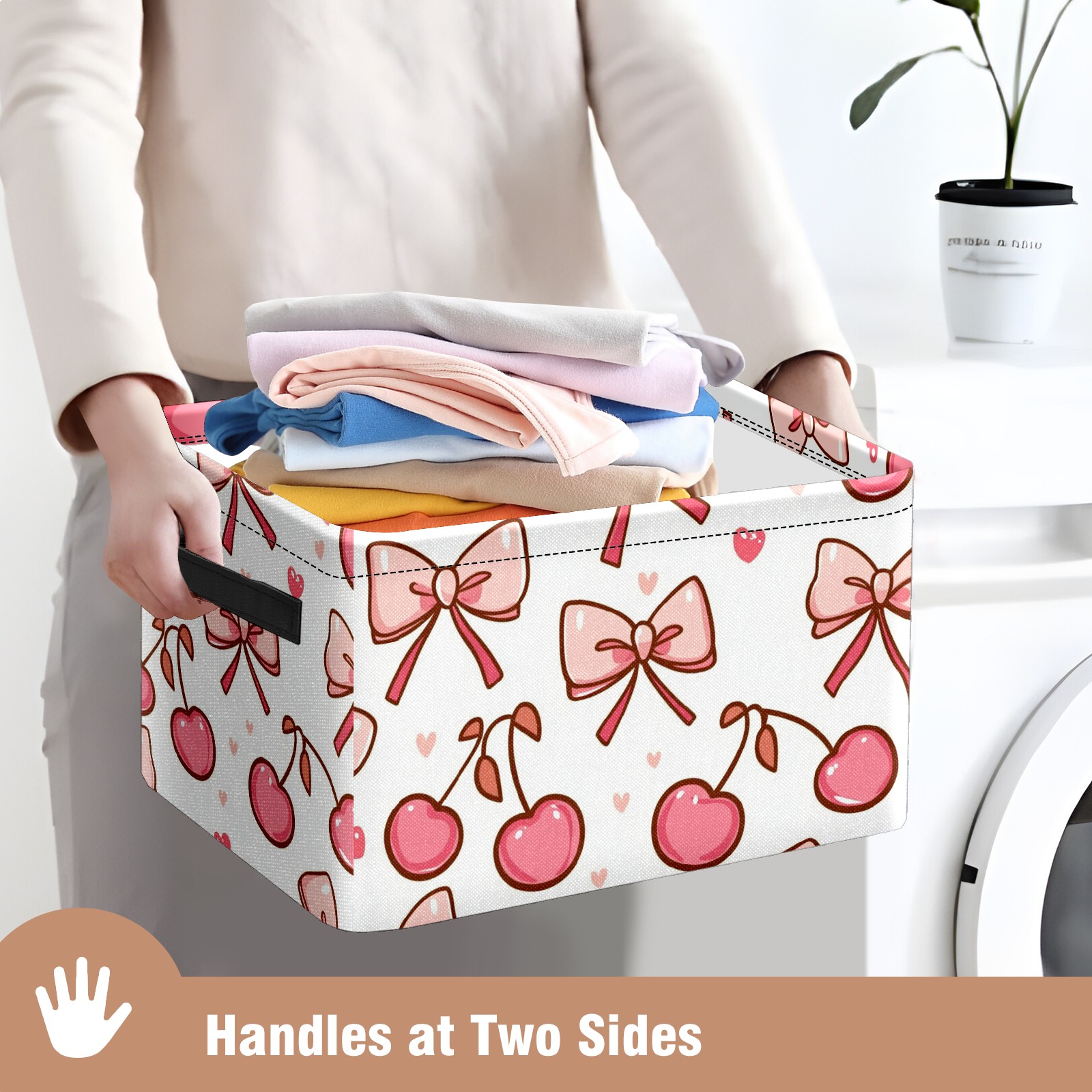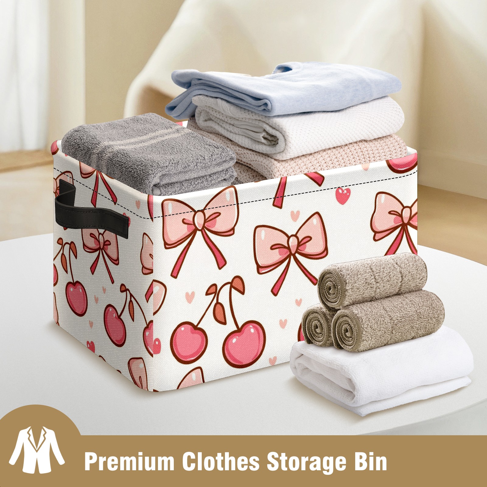 Foldable and Stackable Fabric Storage Basket for Home Organization with Handles, Decorative Closet Bins for Shelves and Laundry Storage( Cherry)