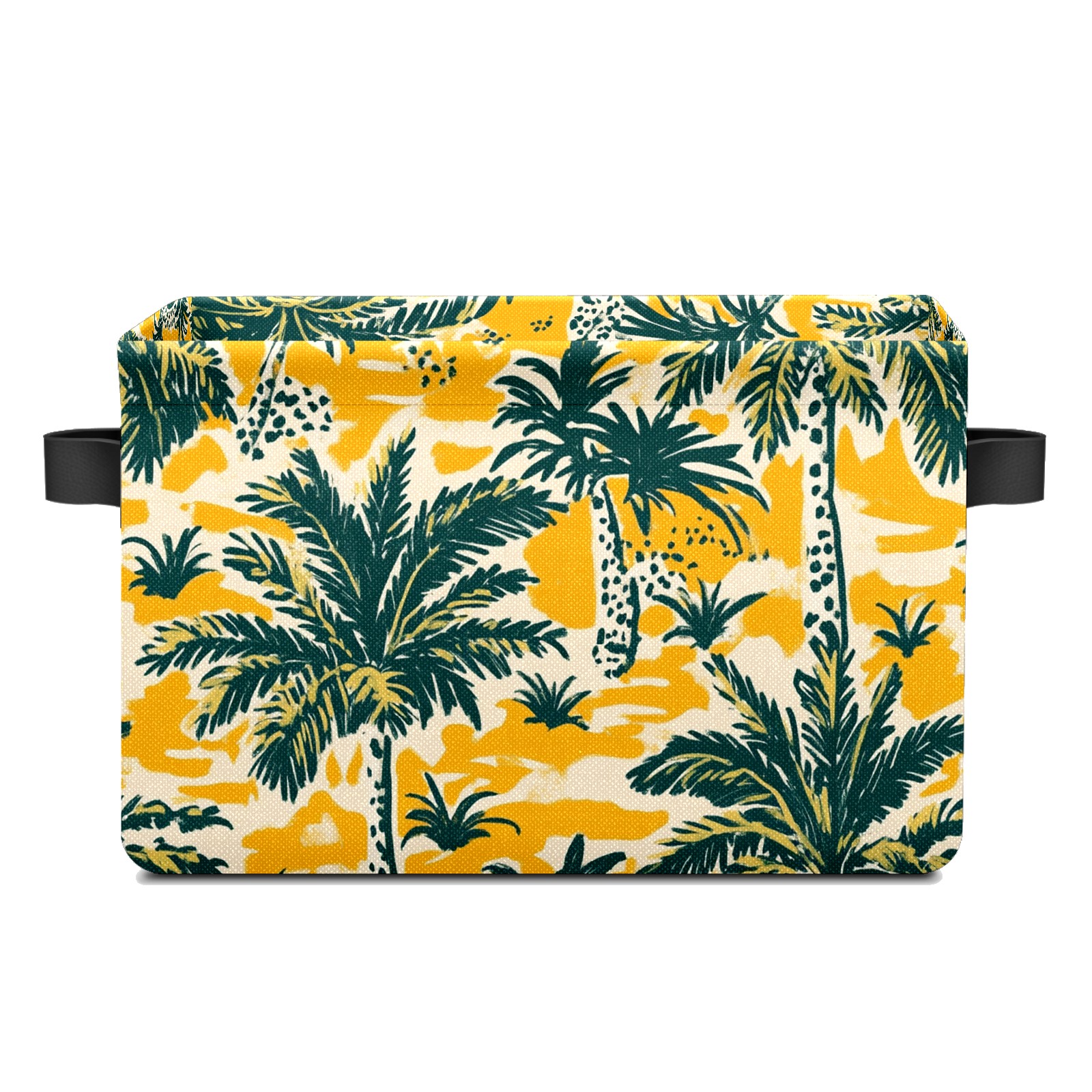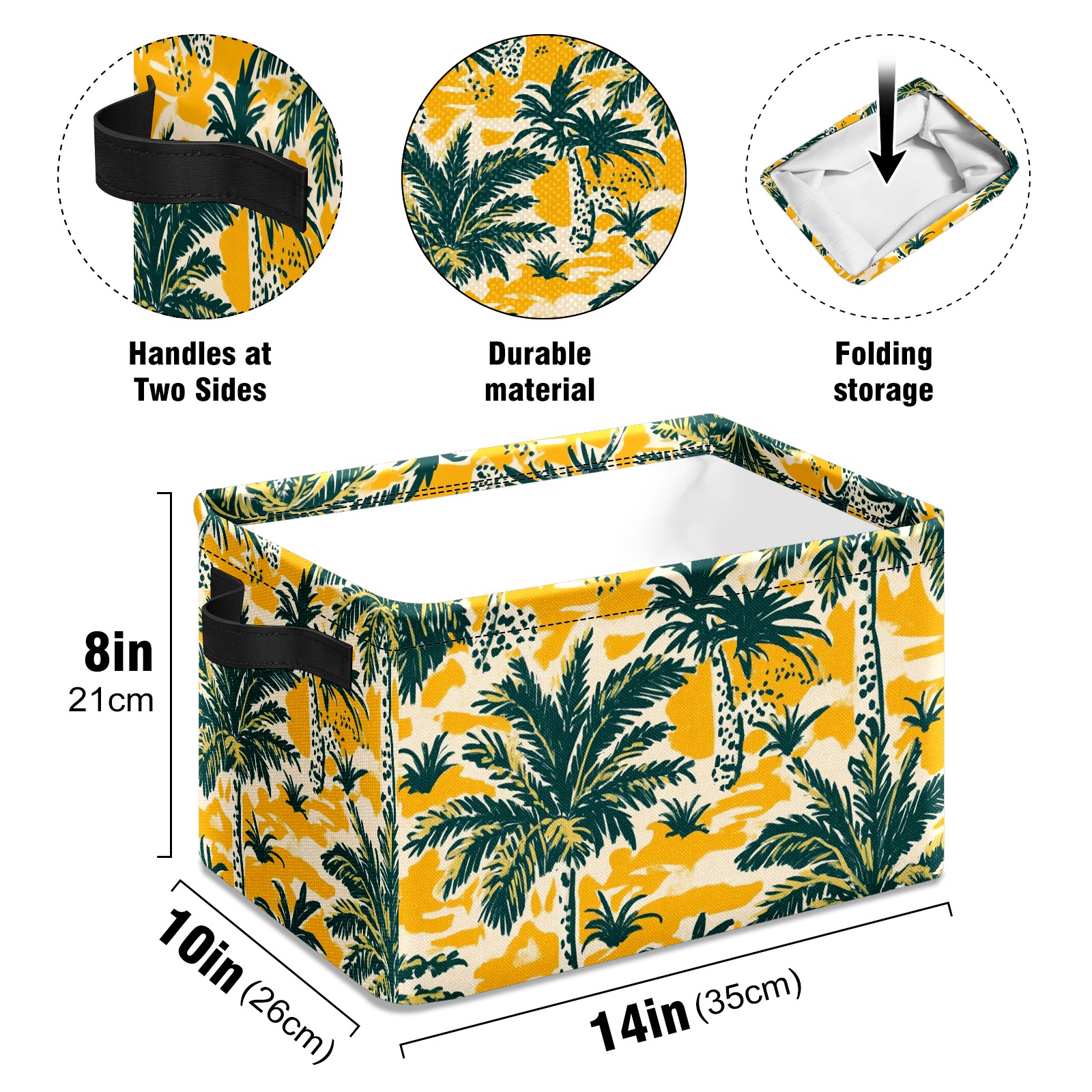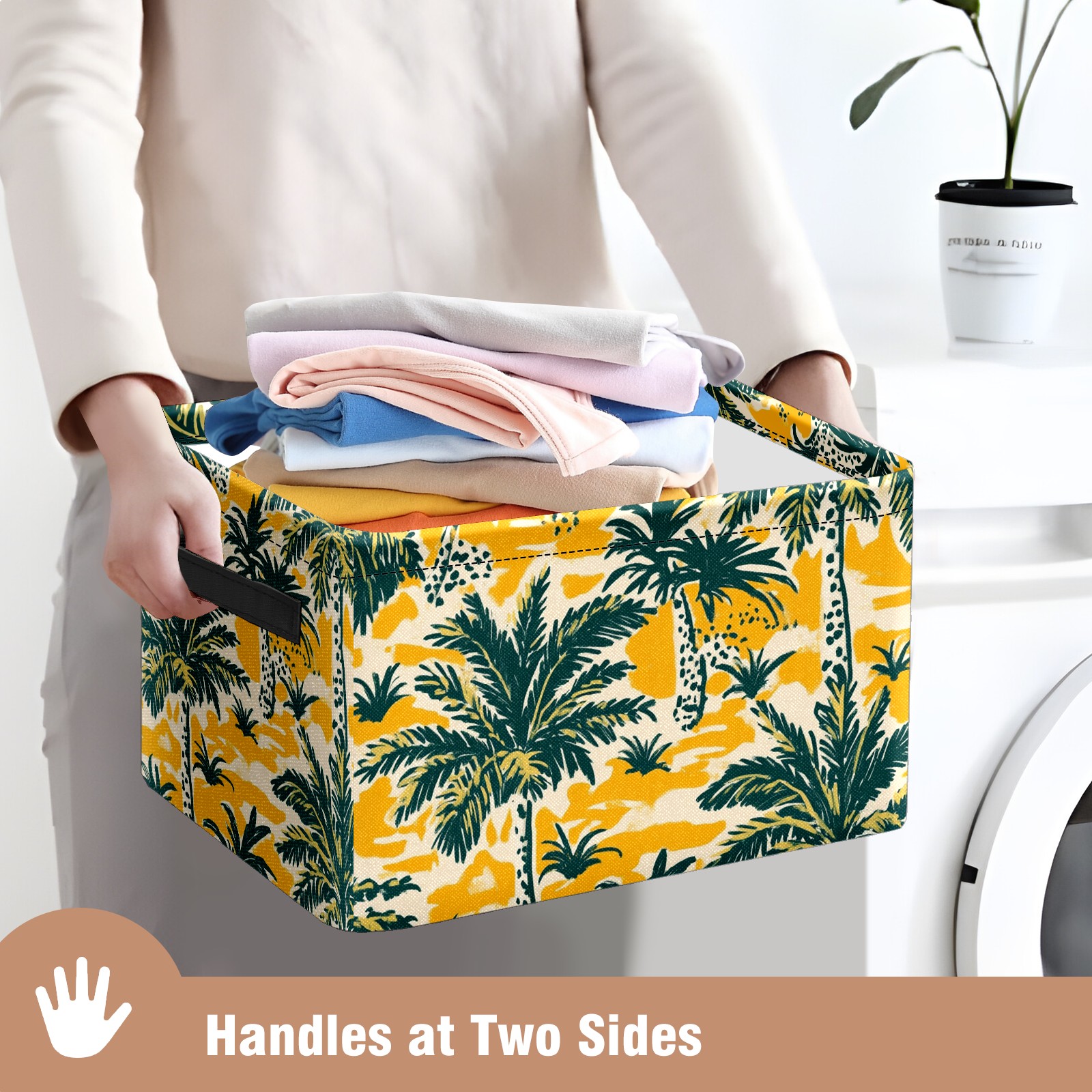 Foldable and Stackable Fabric Storage Basket for Home Organization with Handles, Decorative Closet Bins for Shelves and Laundry Storage( Yellow And Green With Palm Trees)