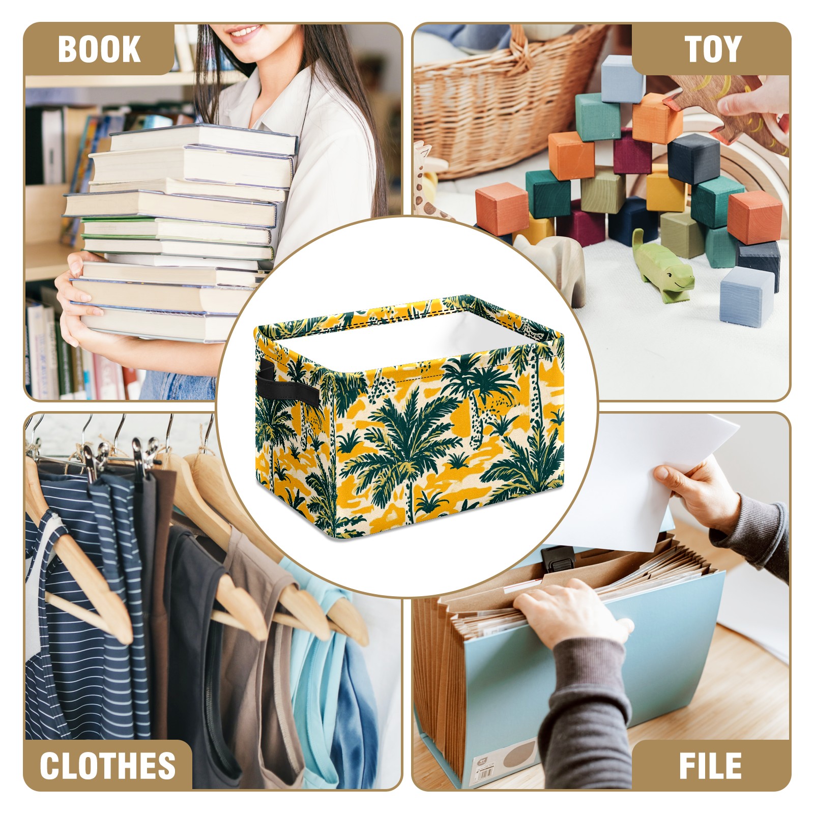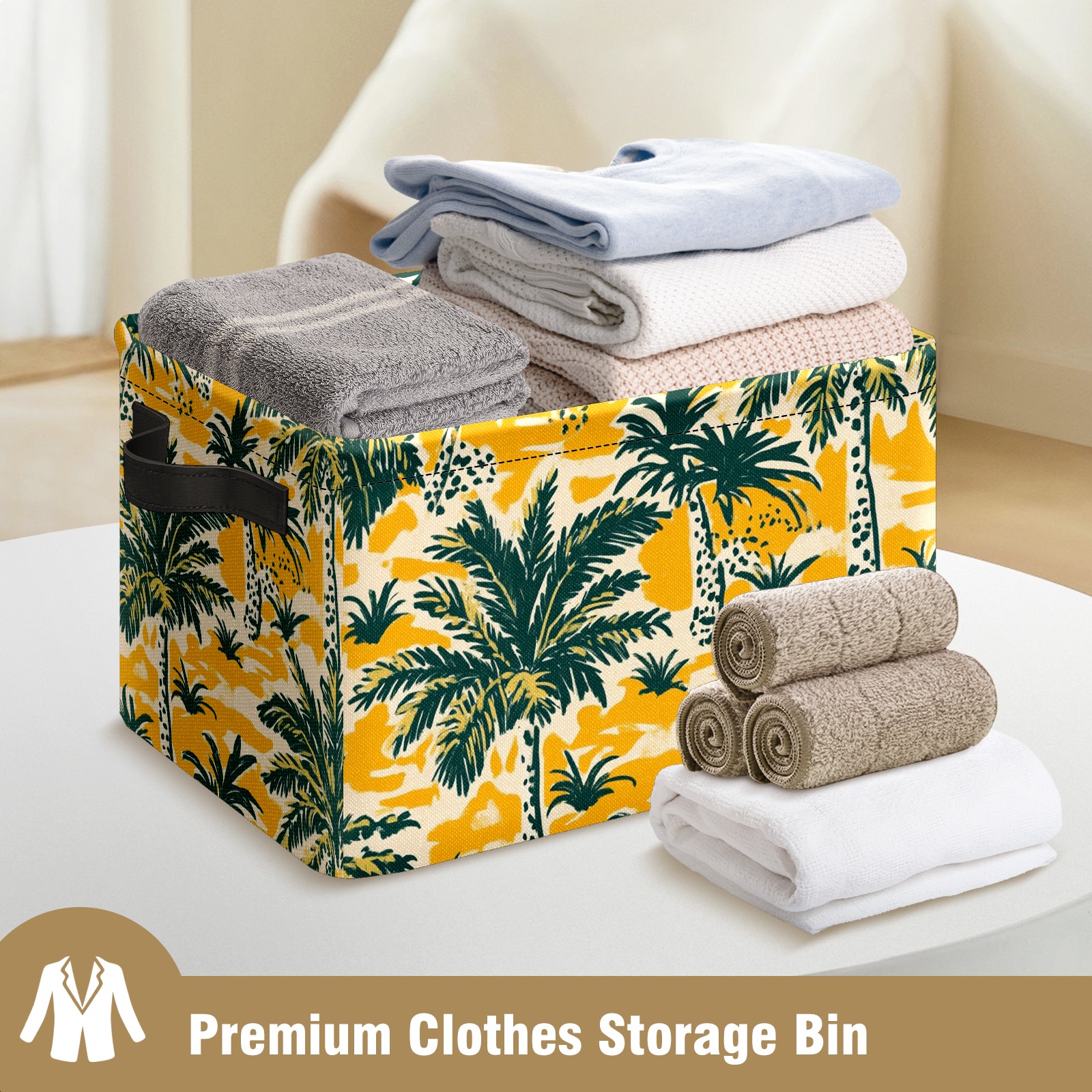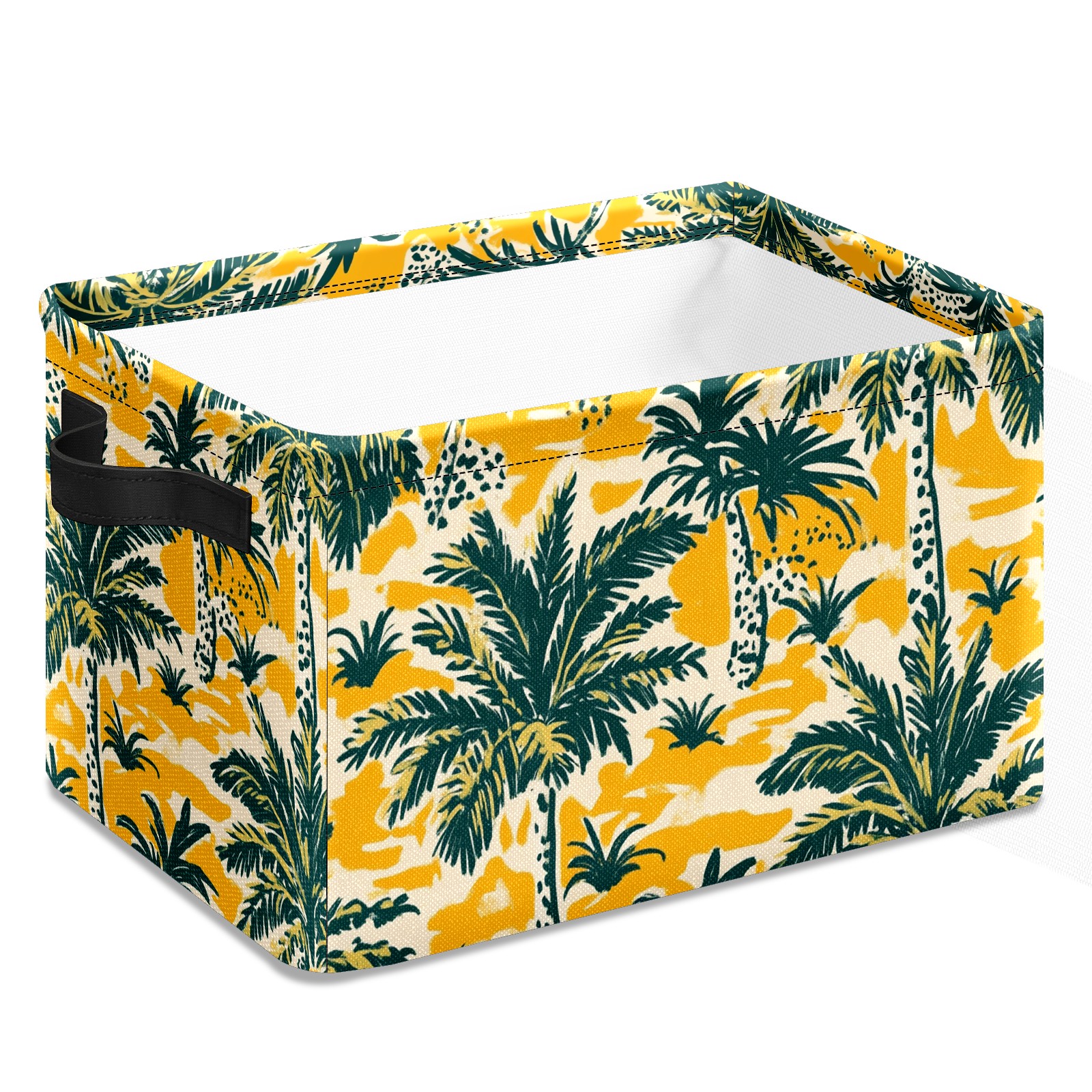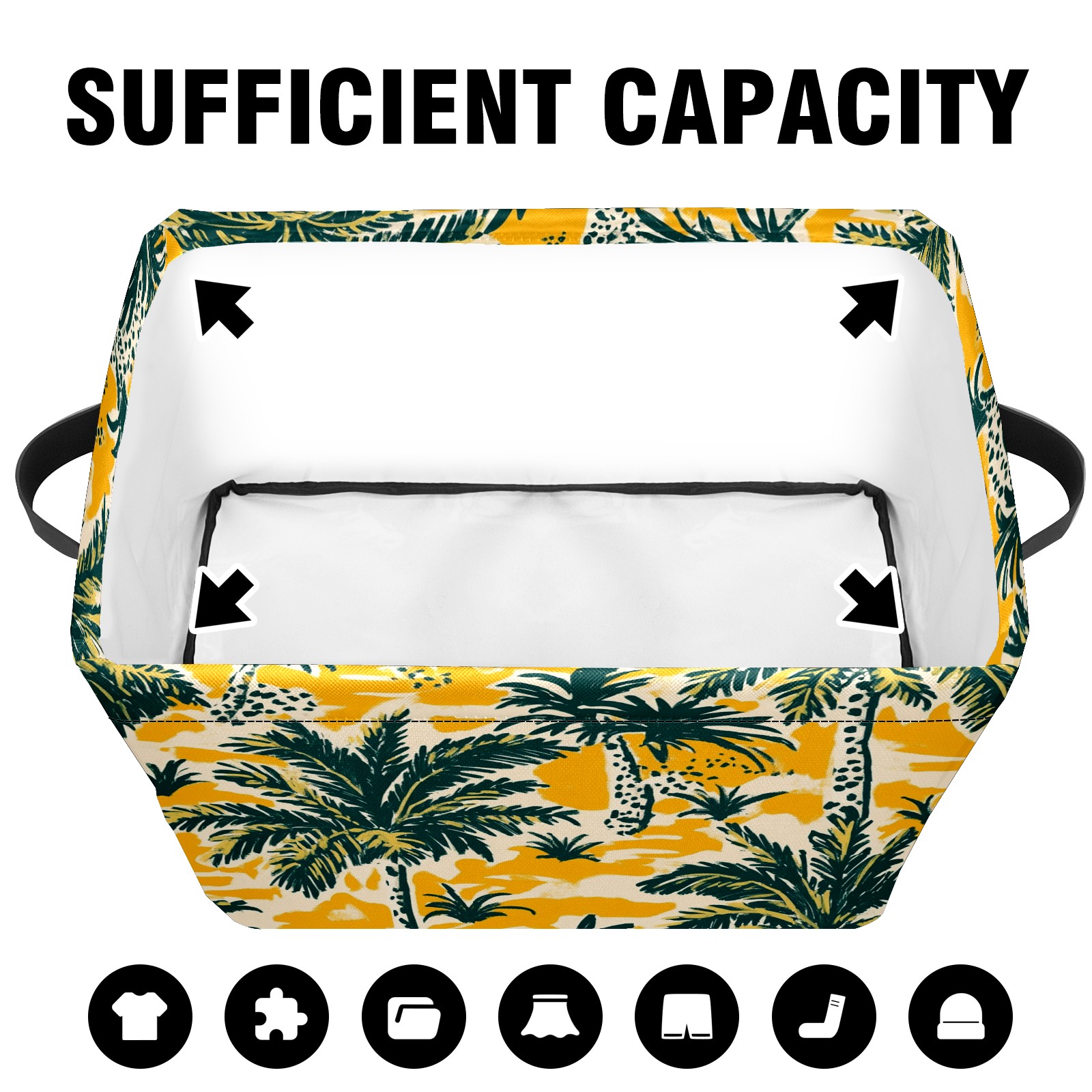 Foldable and Stackable Fabric Storage Basket for Home Organization with Handles, Decorative Closet Bins for Shelves and Laundry Storage( Yellow And Green With Palm Trees)