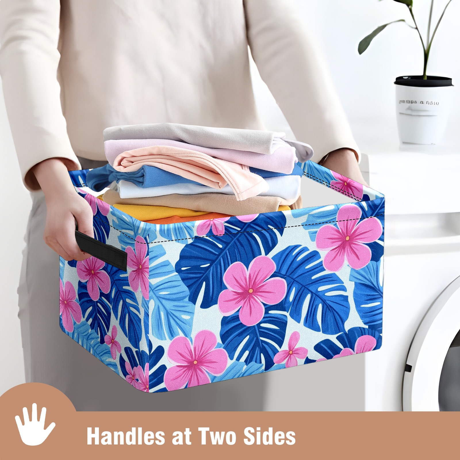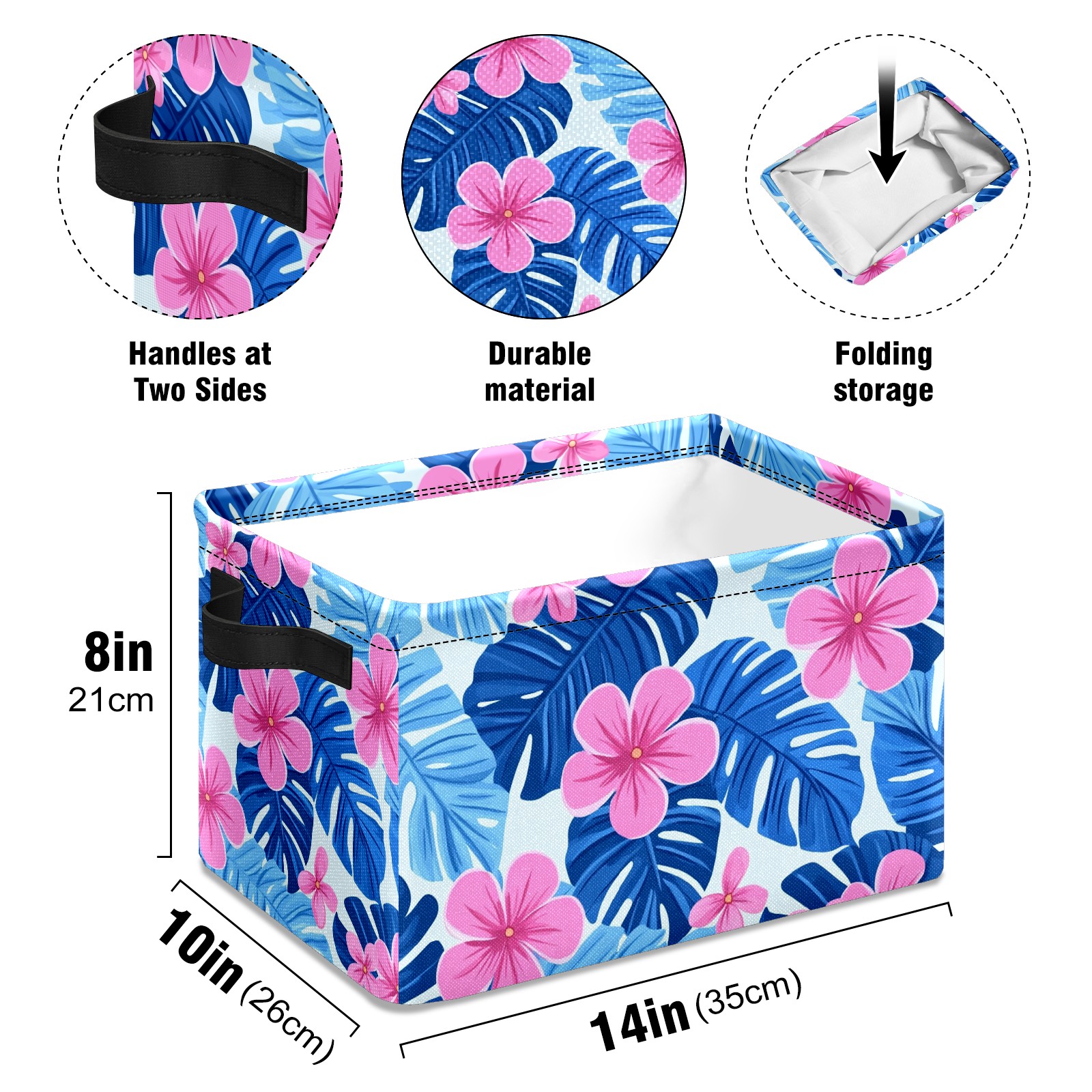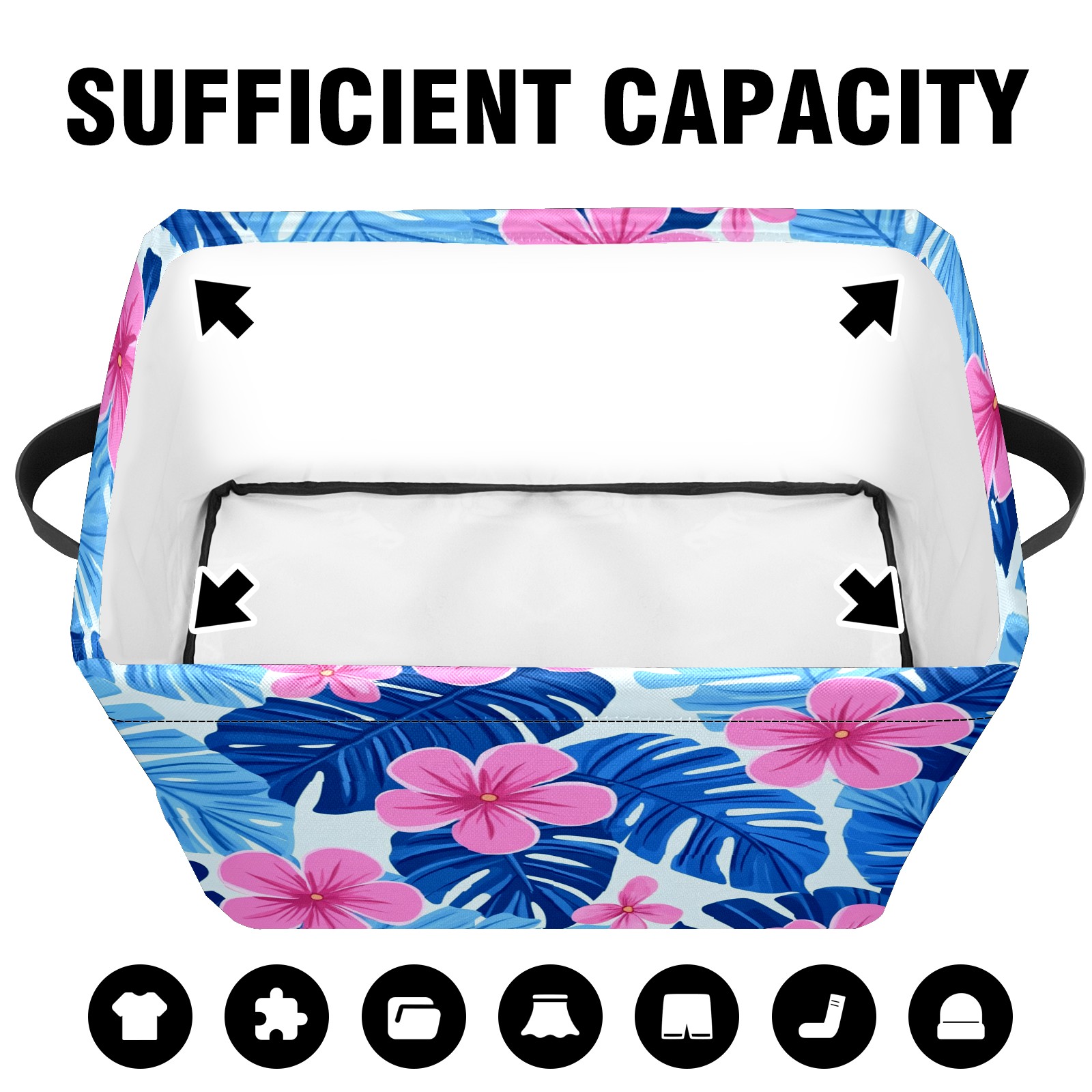 Foldable and Stackable Fabric Storage Basket for Home Organization with Handles, Decorative Closet Bins for Shelves and Laundry Storage( Pink Floral And Blue Leaves)