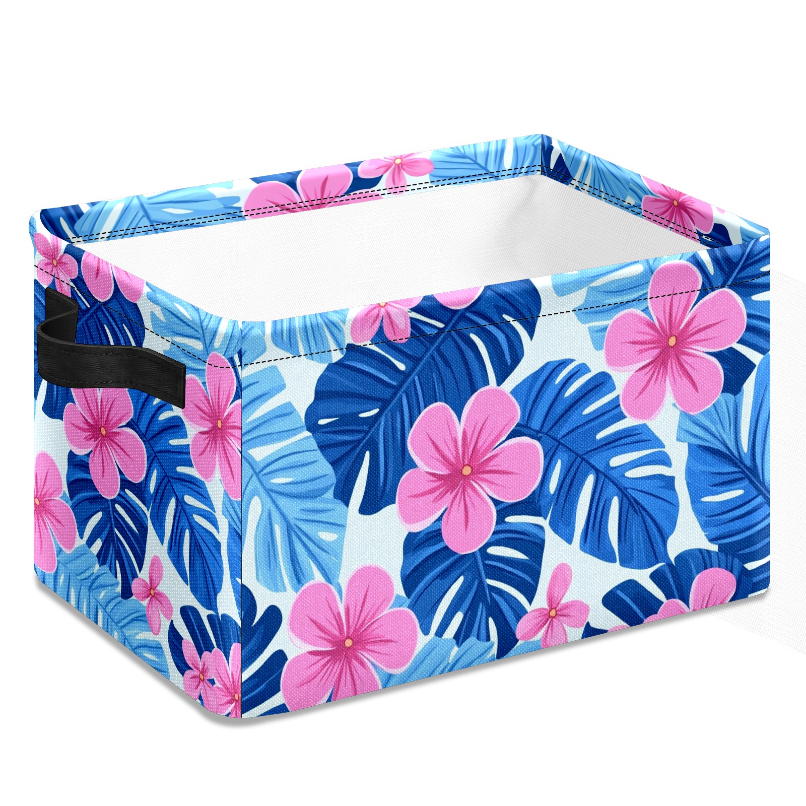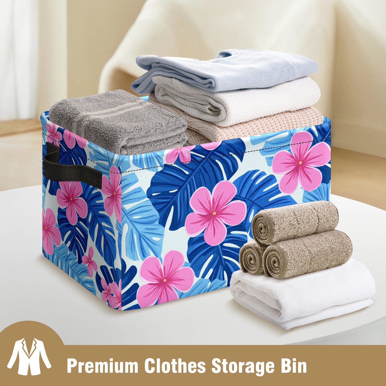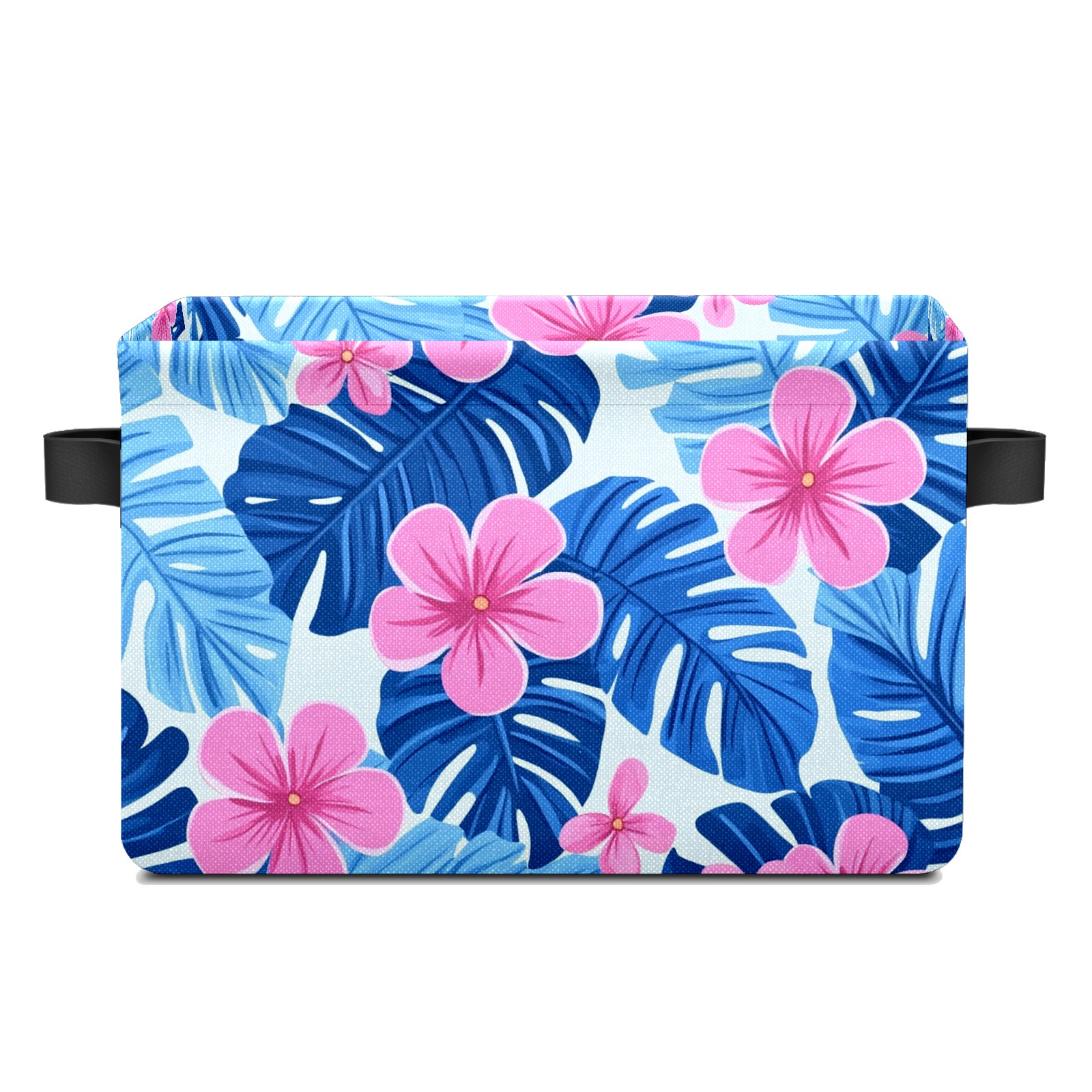 Foldable and Stackable Fabric Storage Basket for Home Organization with Handles, Decorative Closet Bins for Shelves and Laundry Storage( Pink Floral And Blue Leaves)