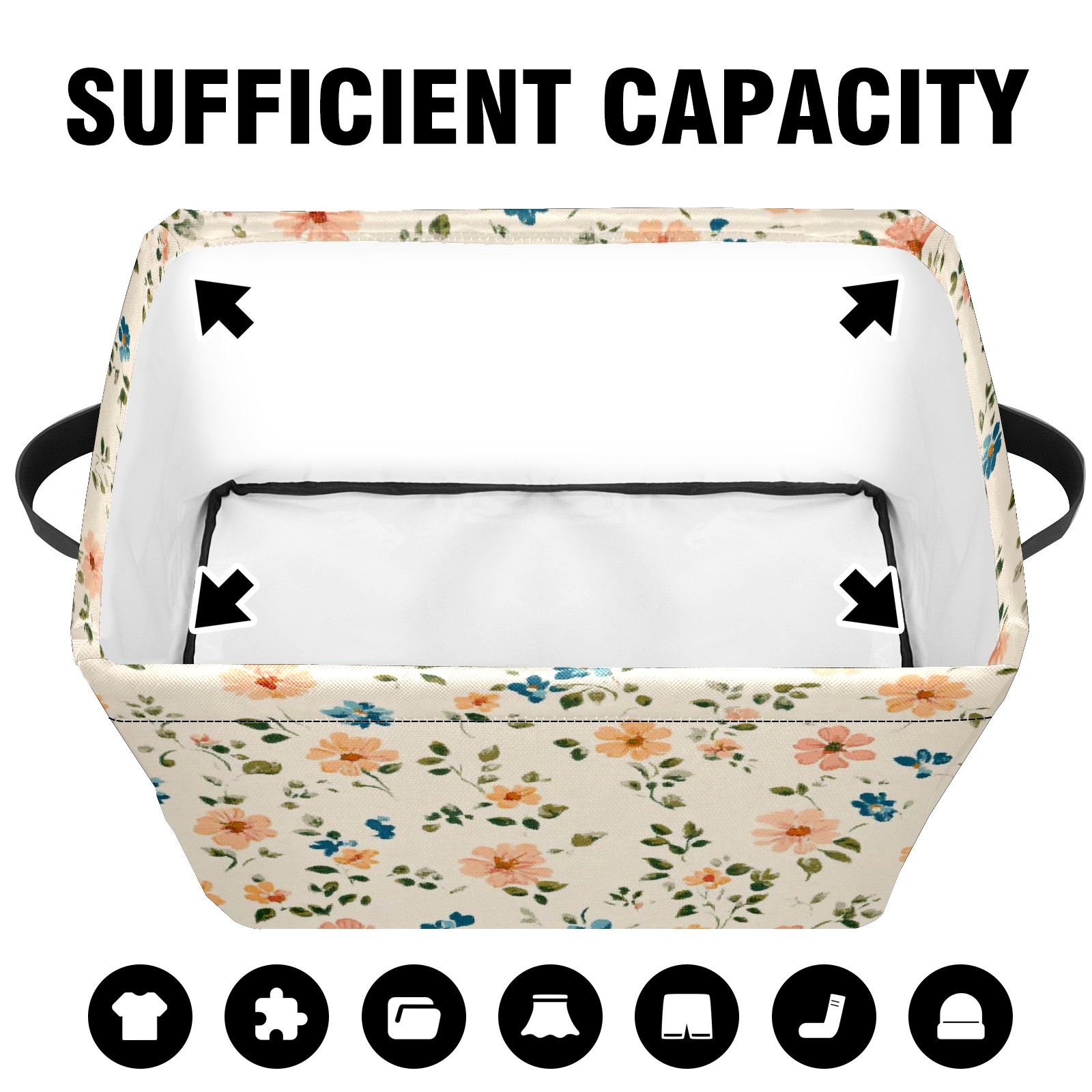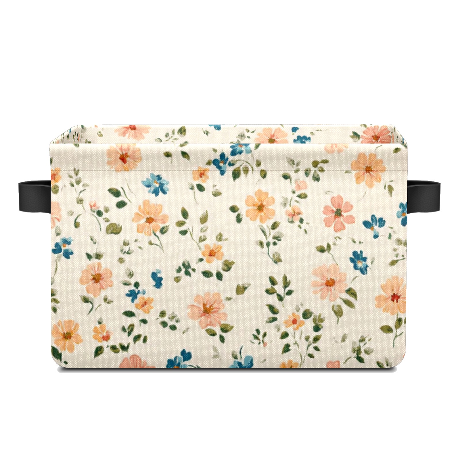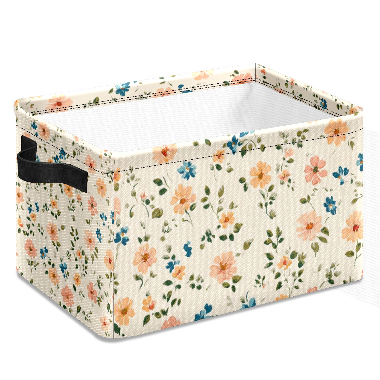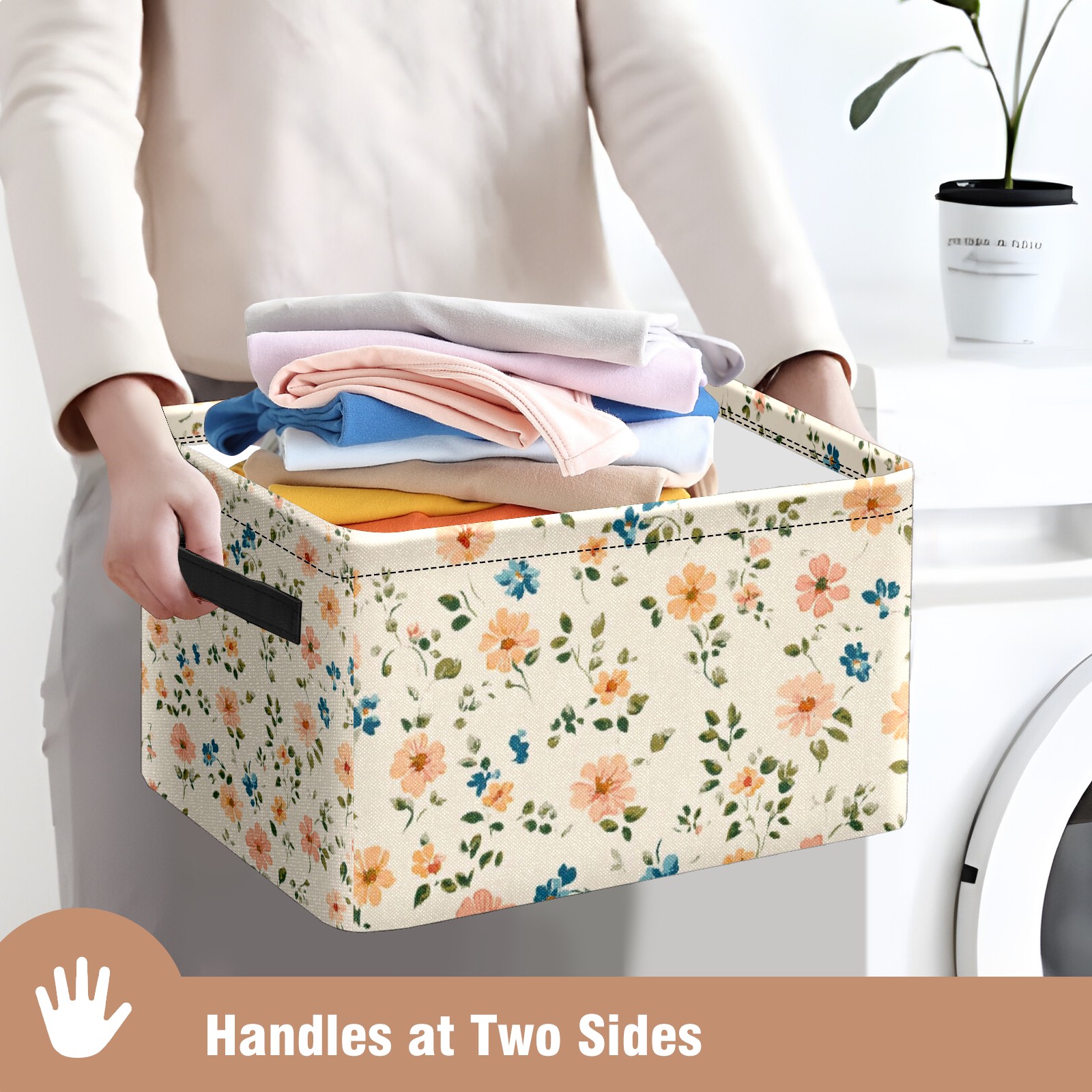 Foldable and Stackable Fabric Storage Basket for Home Organization with Handles, Decorative Closet Bins for Shelves and Laundry Storage( Peach And Blue Floral)