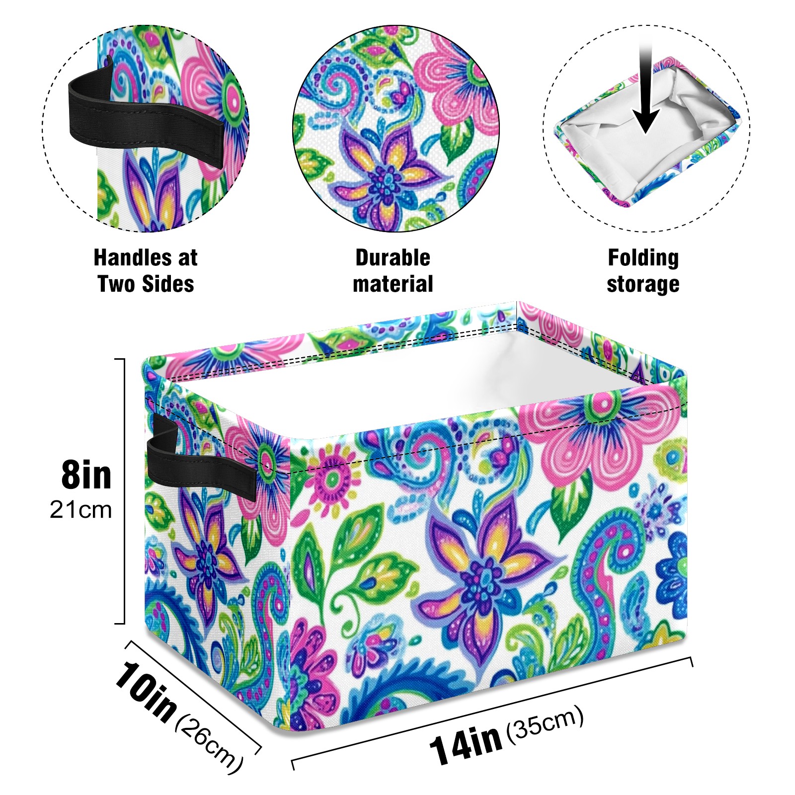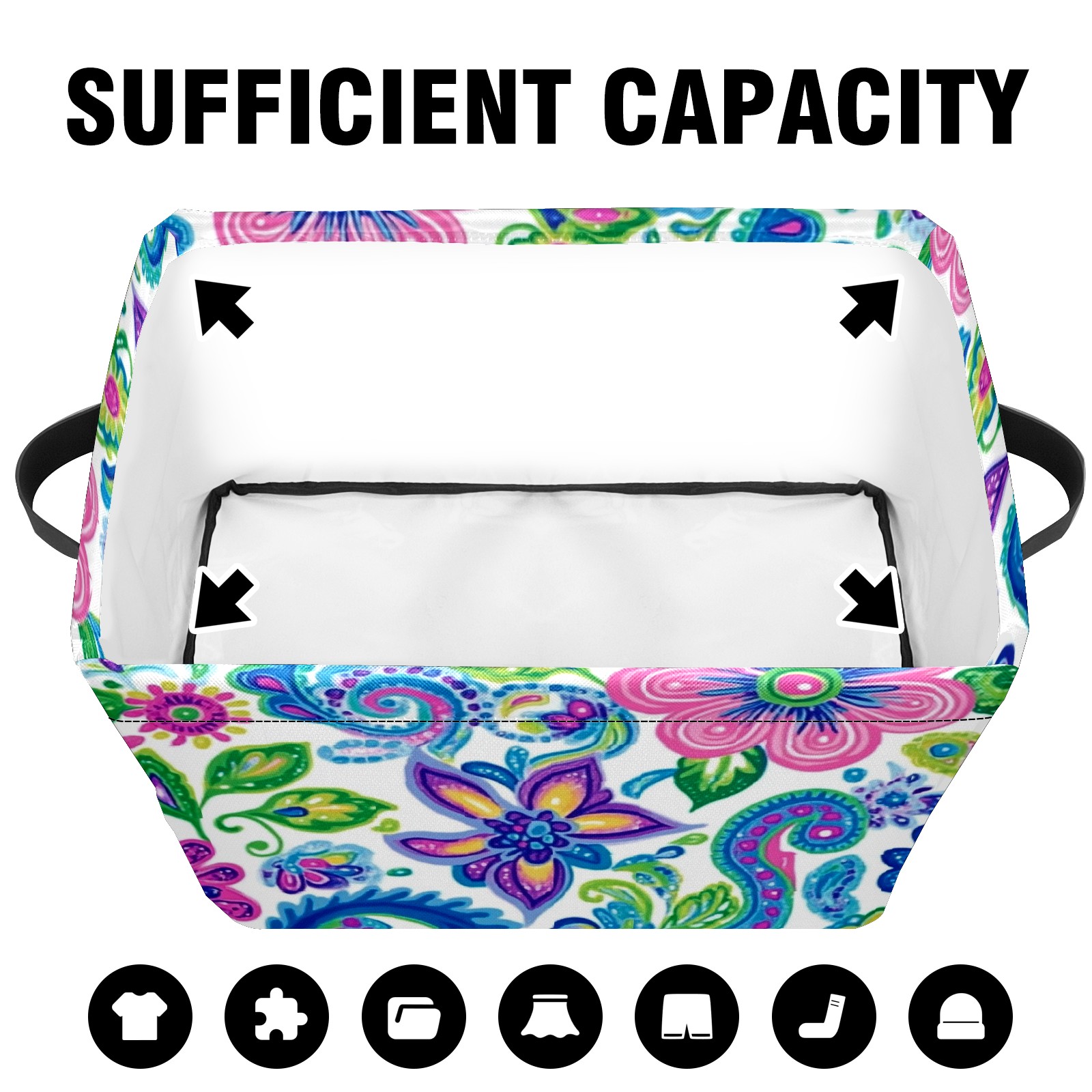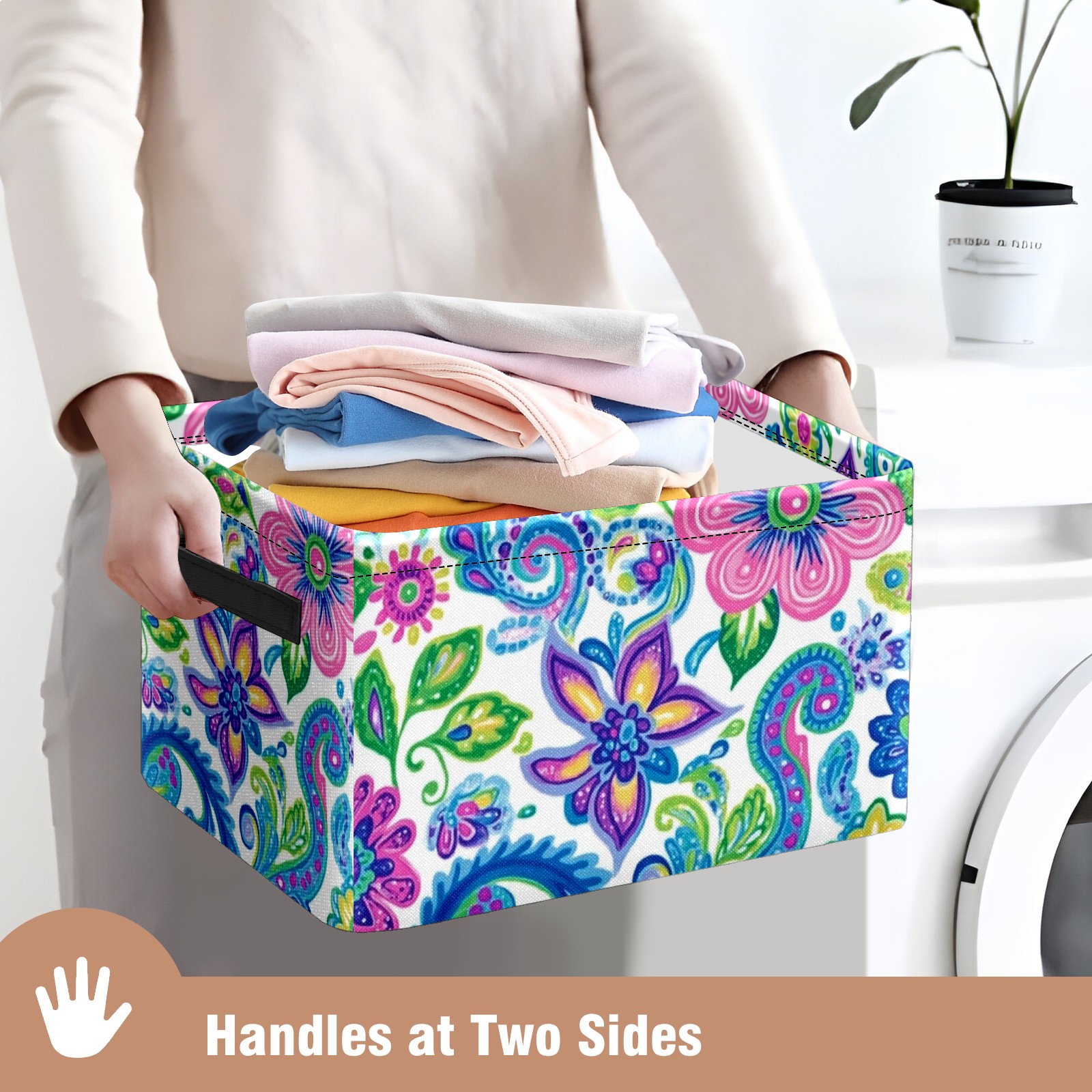 Foldable and Stackable Fabric Storage Basket for Home Organization with Handles, Decorative Closet Bins for Shelves and Laundry Storage( Vibrant And Colorful Flowers)