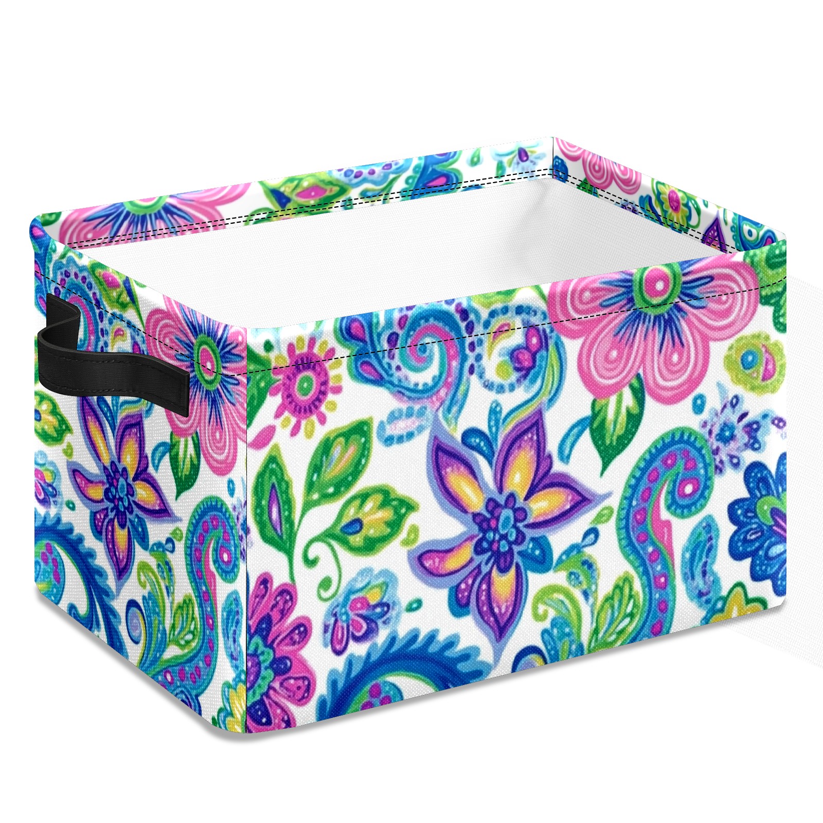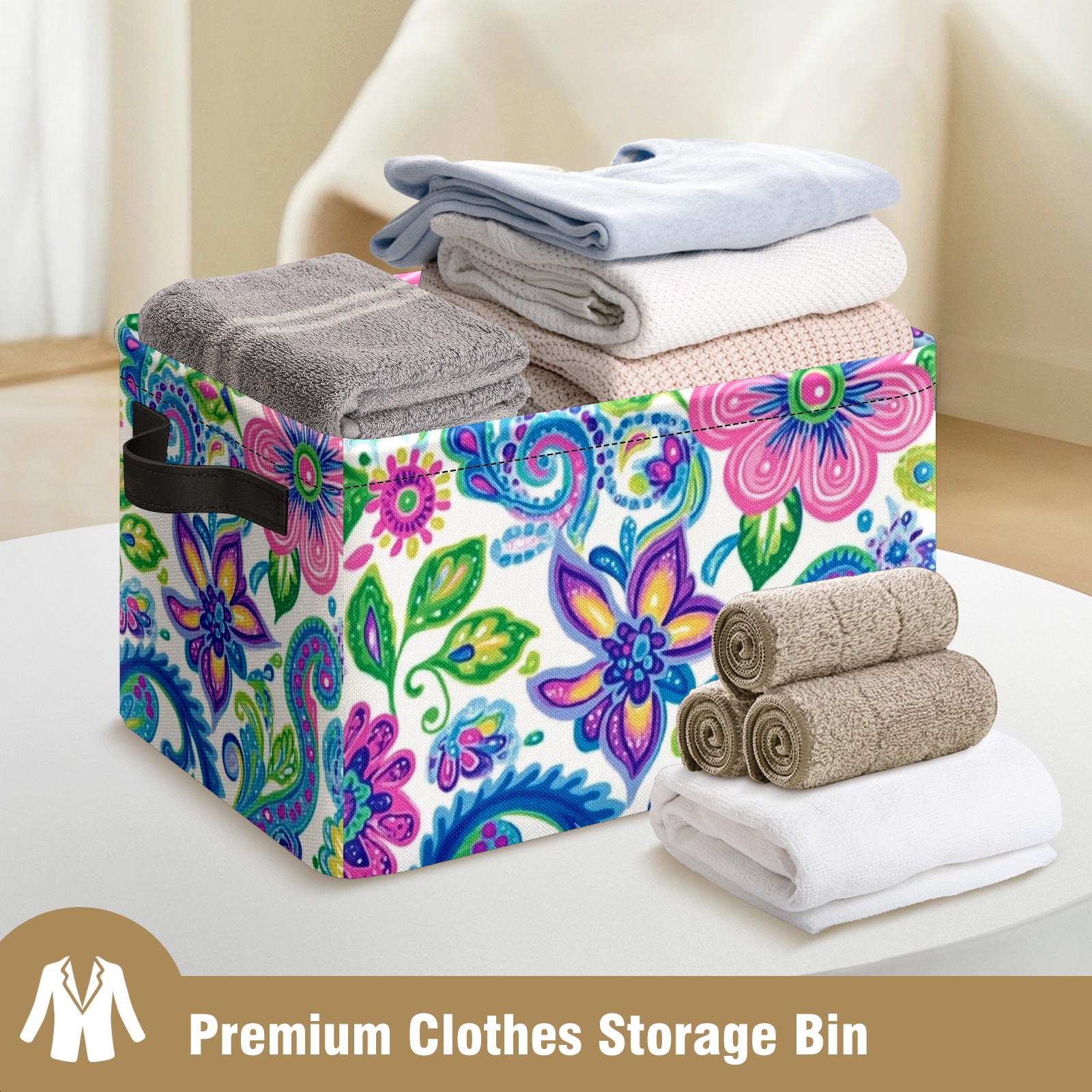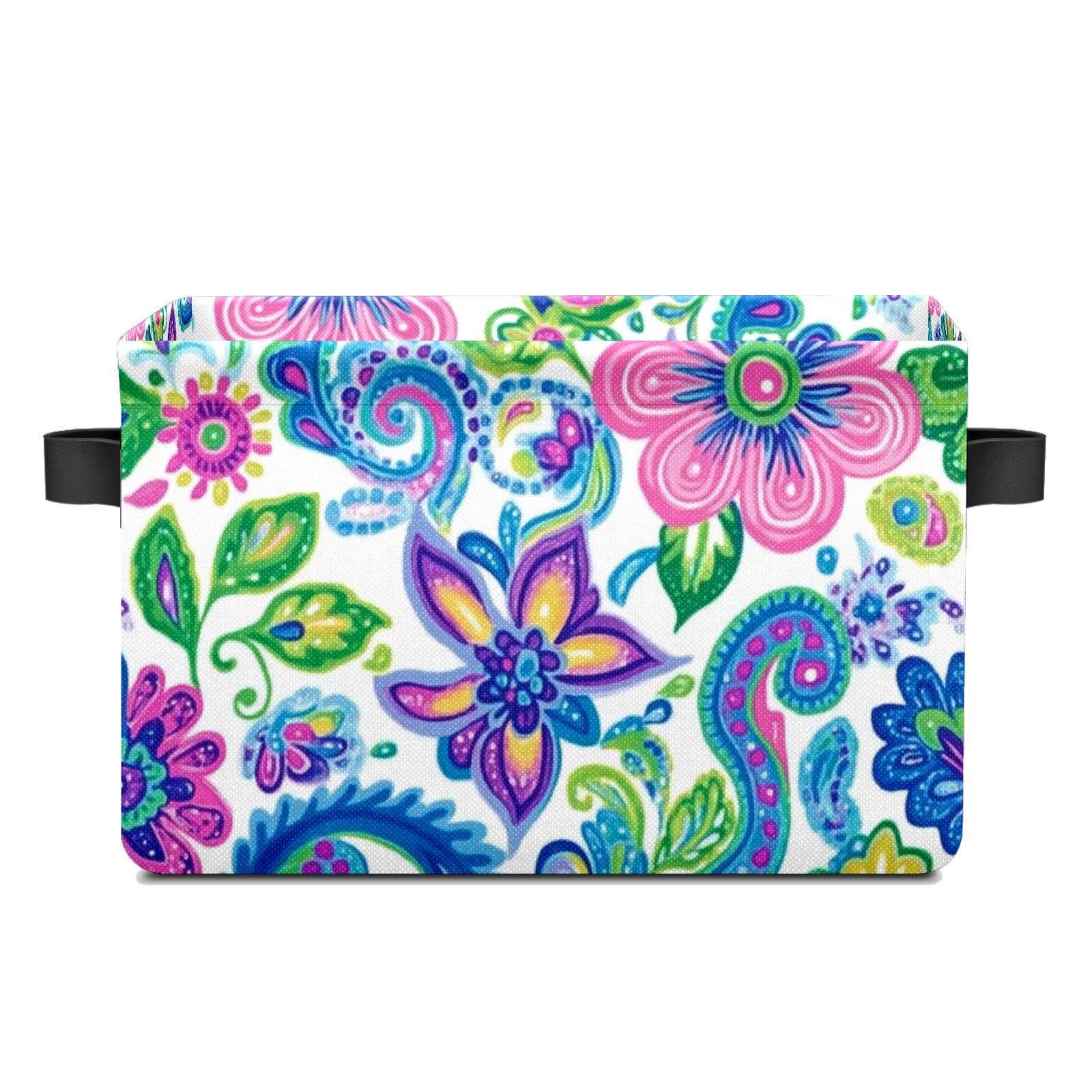 Foldable and Stackable Fabric Storage Basket for Home Organization with Handles, Decorative Closet Bins for Shelves and Laundry Storage( Vibrant And Colorful Flowers)