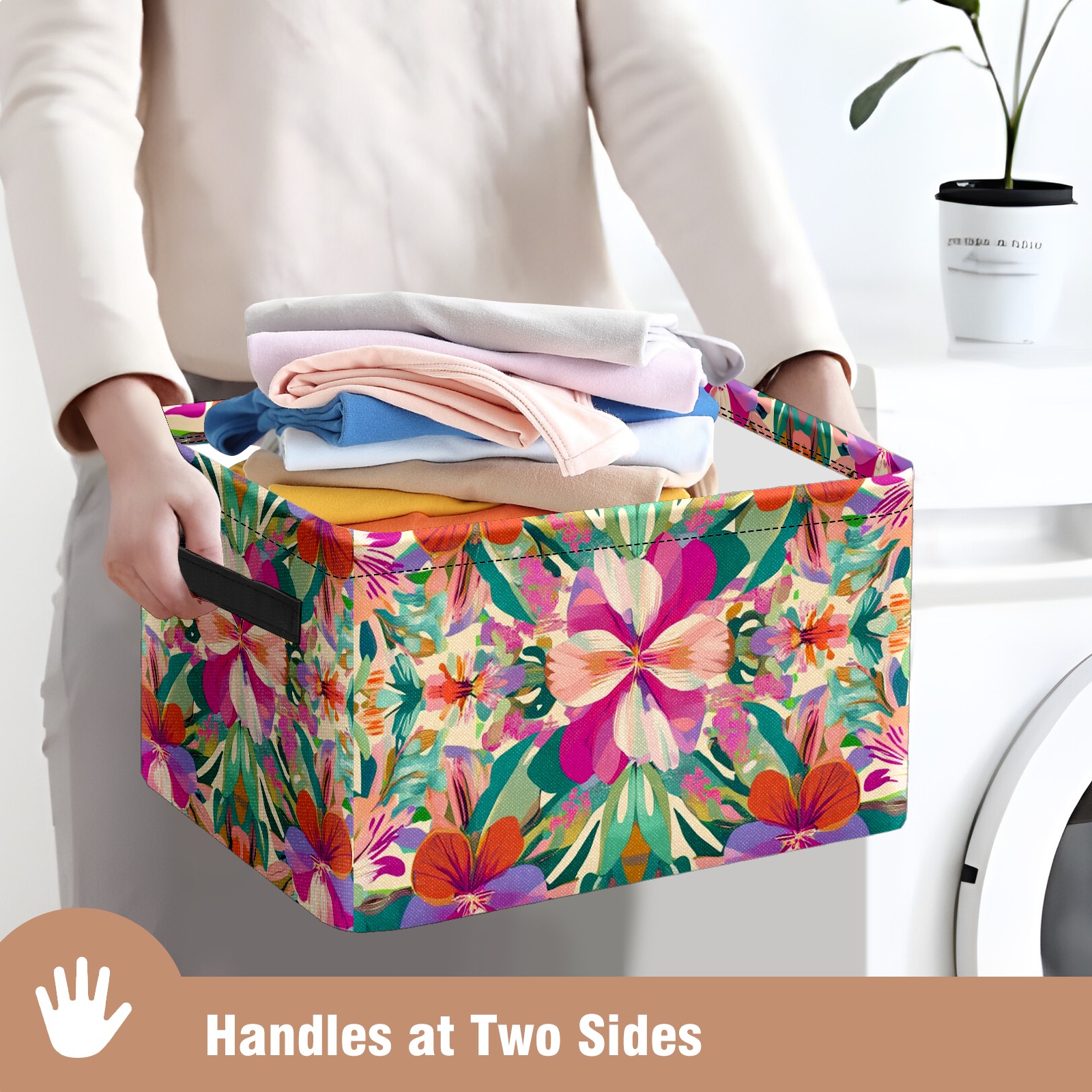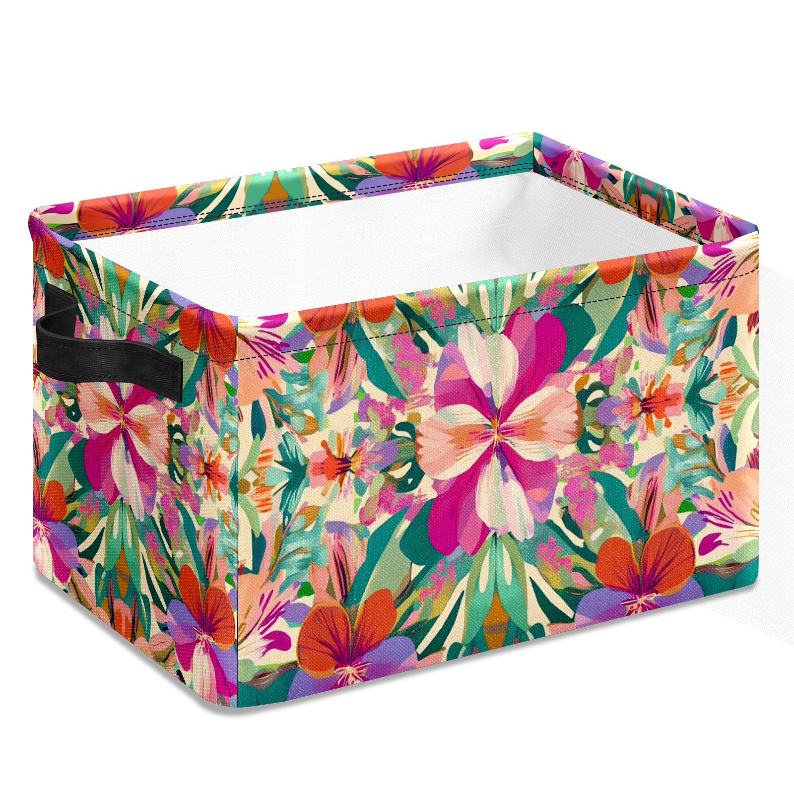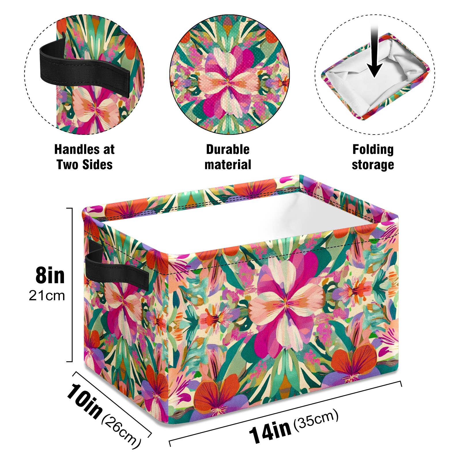 Foldable and Stackable Fabric Storage Basket for Home Organization with Handles, Decorative Closet Bins for Shelves and Laundry Storage( Exotic Flowers)