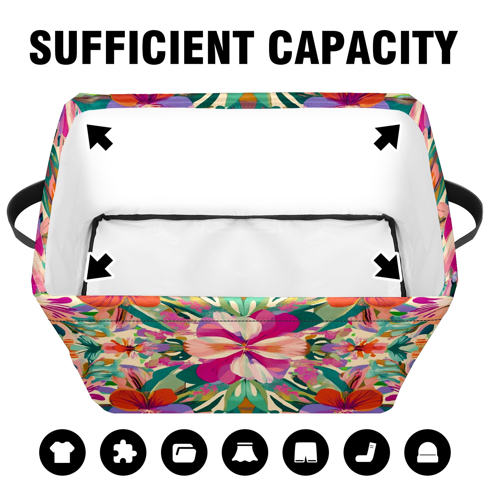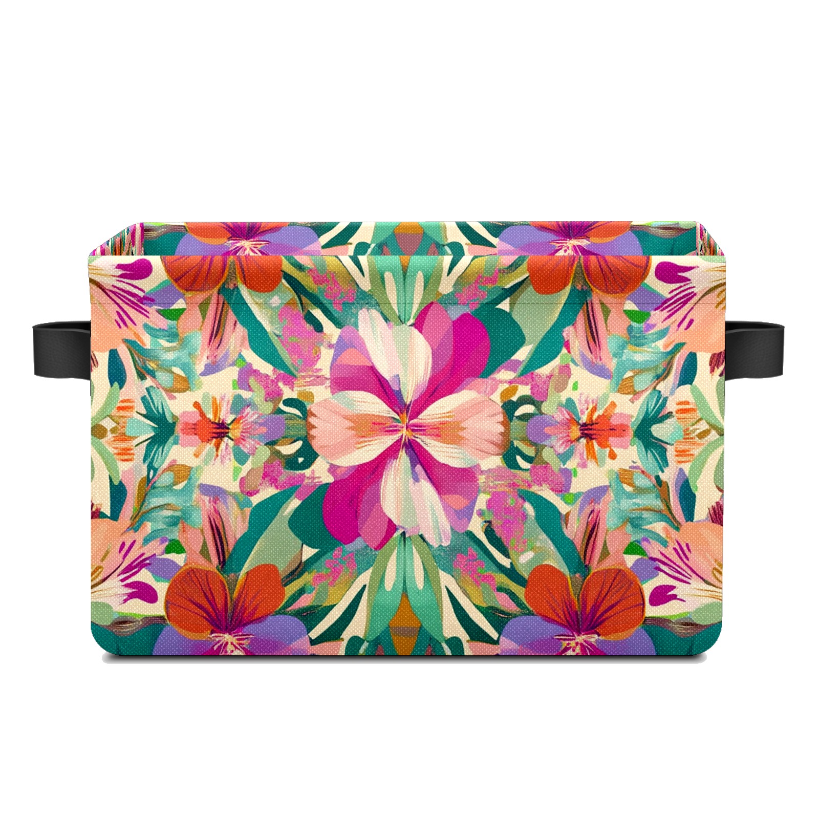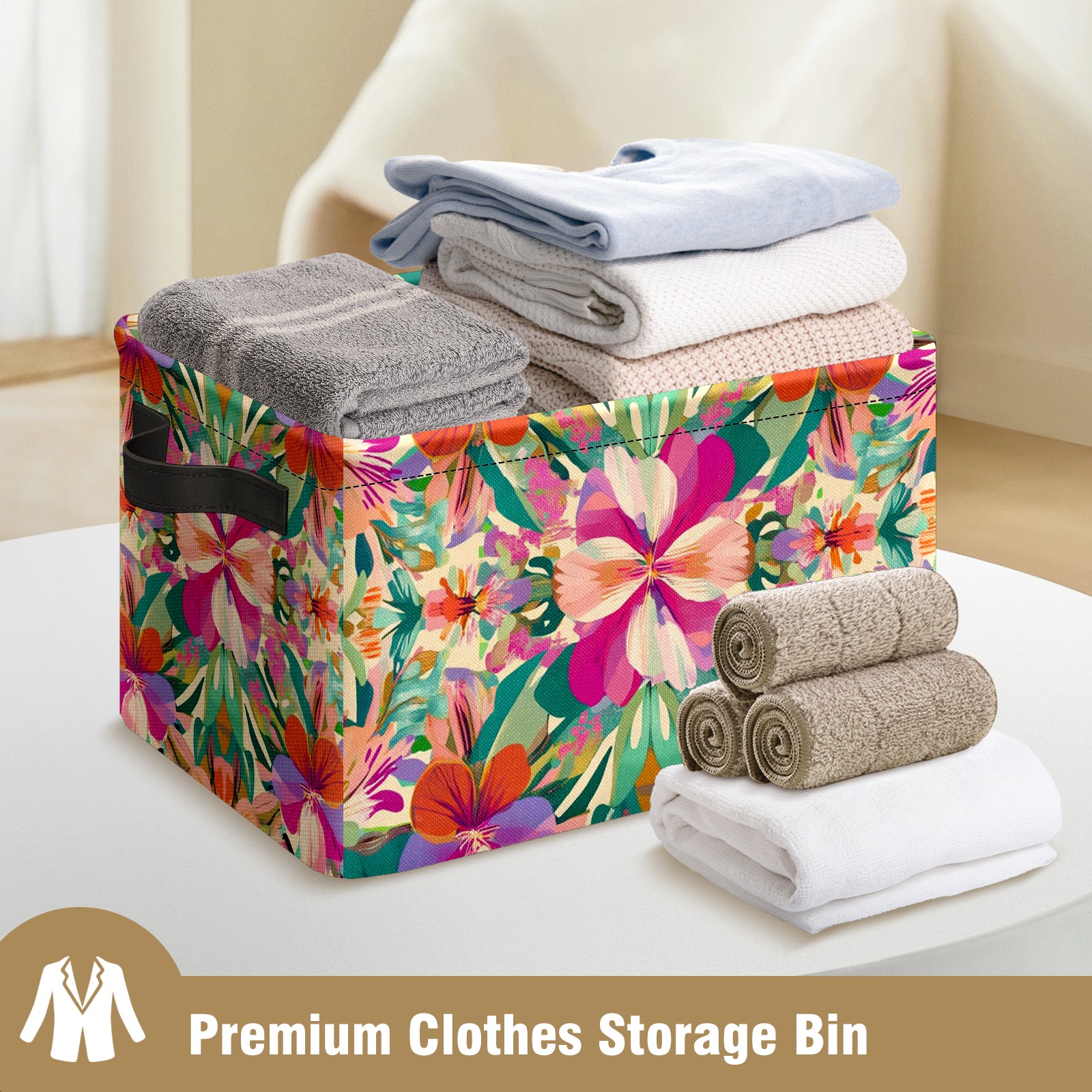 Foldable and Stackable Fabric Storage Basket for Home Organization with Handles, Decorative Closet Bins for Shelves and Laundry Storage( Exotic Flowers)