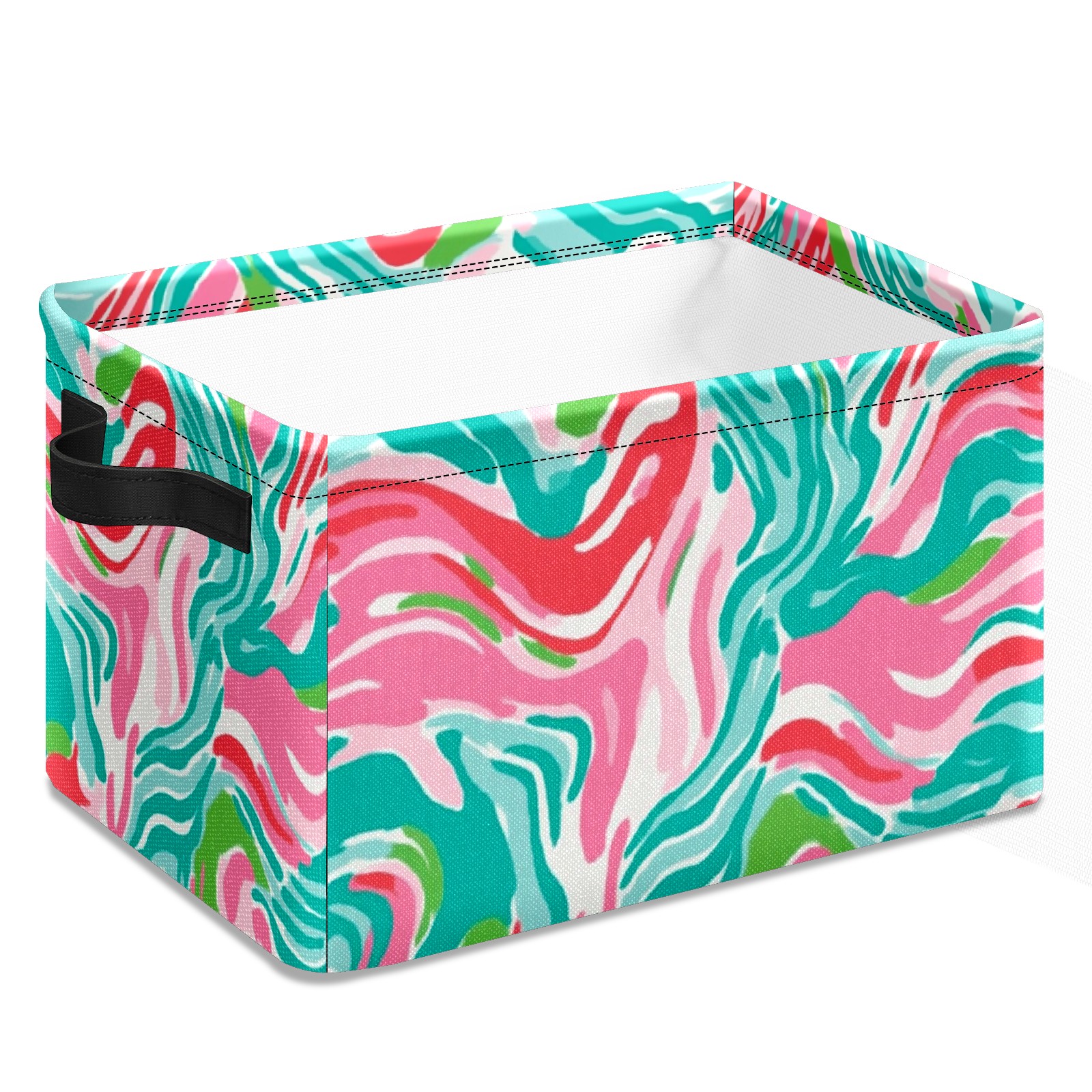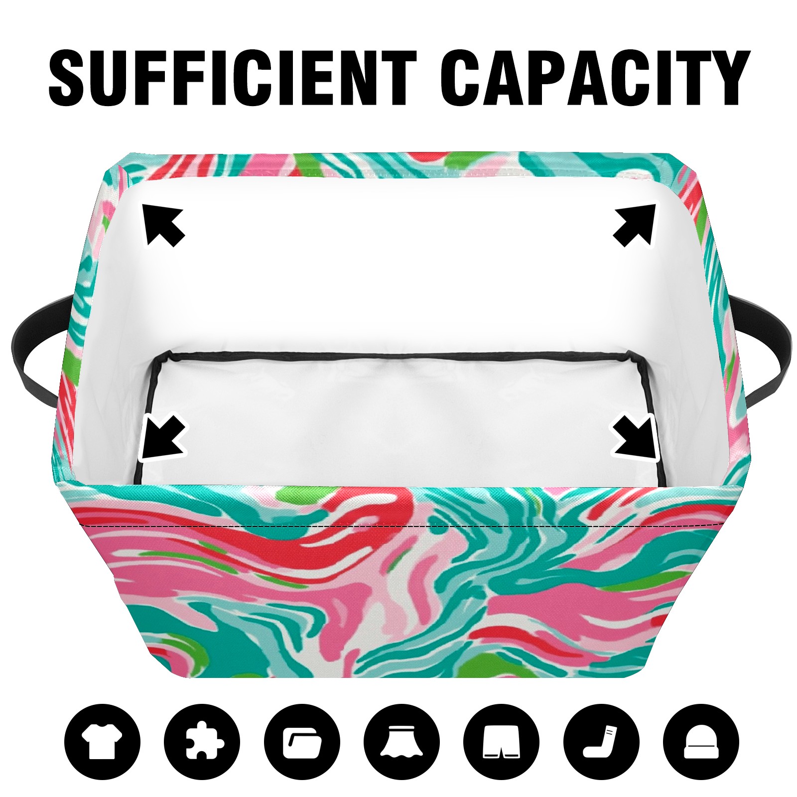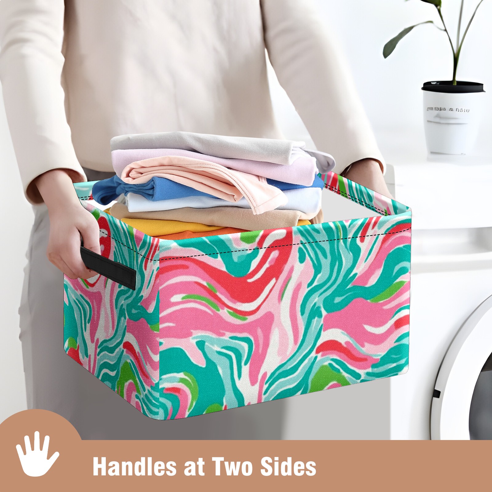 Foldable and Stackable Fabric Storage Basket for Home Organization with Handles, Decorative Closet Bins for Shelves and Laundry Storage( Pink And Teal Abstract Waves)