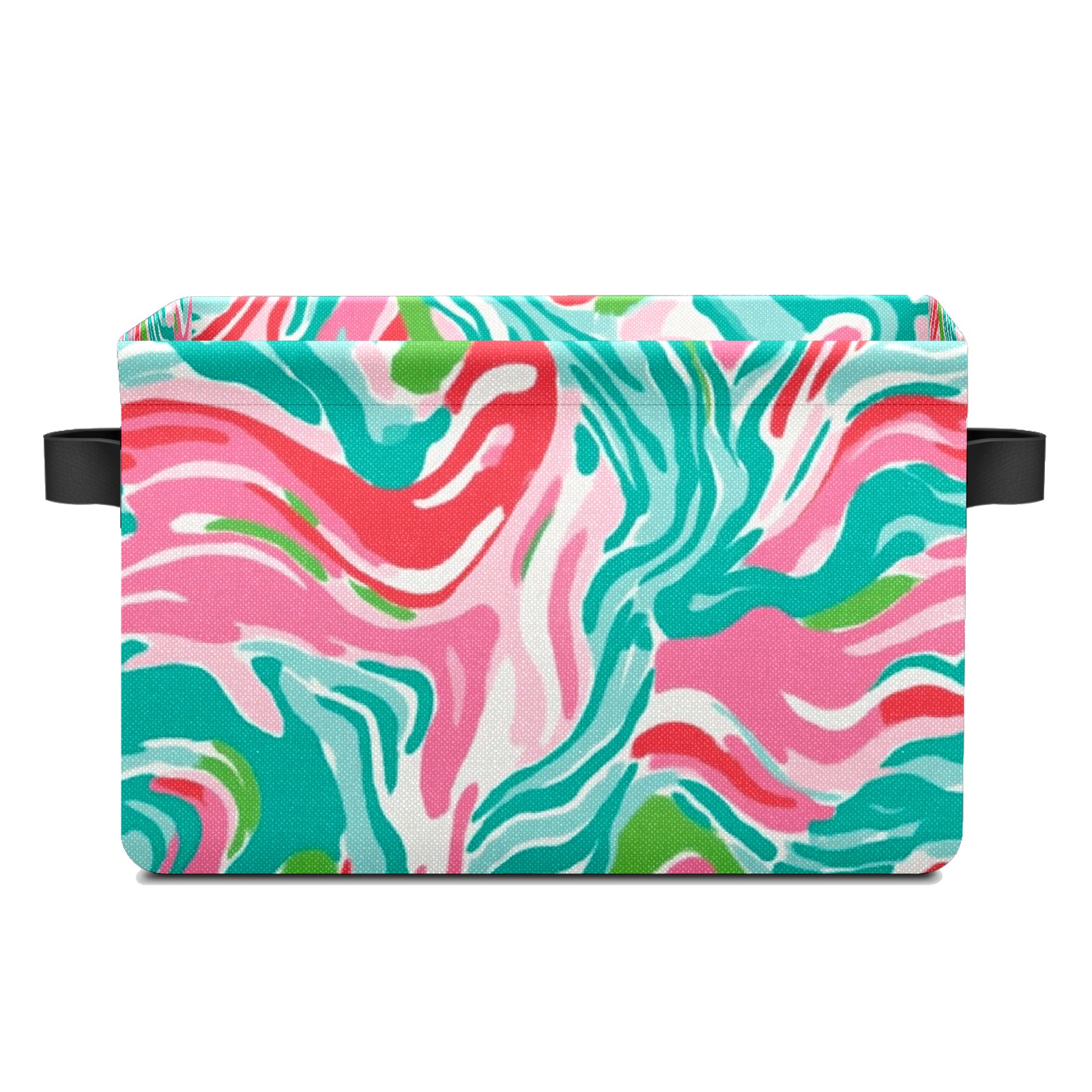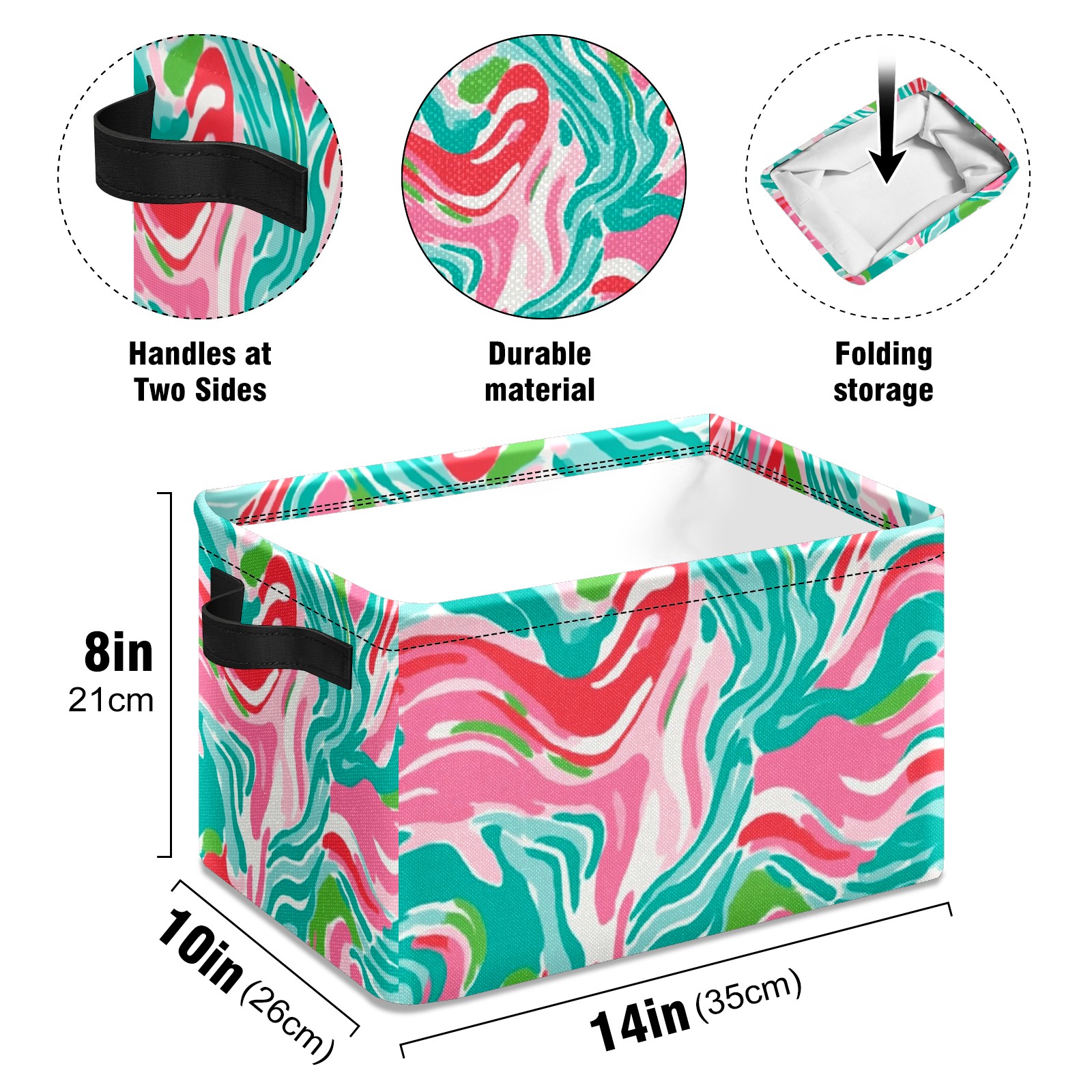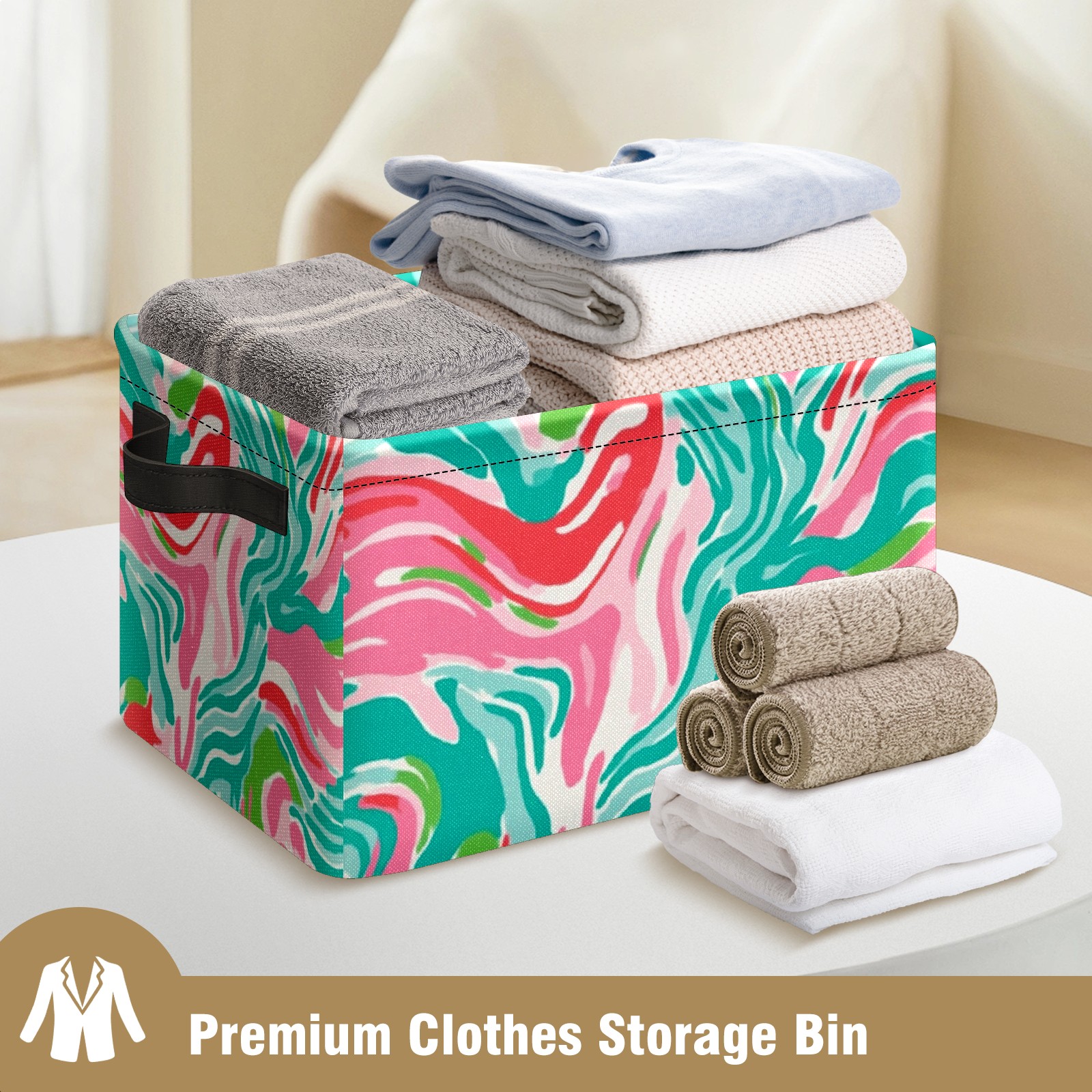 Foldable and Stackable Fabric Storage Basket for Home Organization with Handles, Decorative Closet Bins for Shelves and Laundry Storage( Pink And Teal Abstract Waves)
