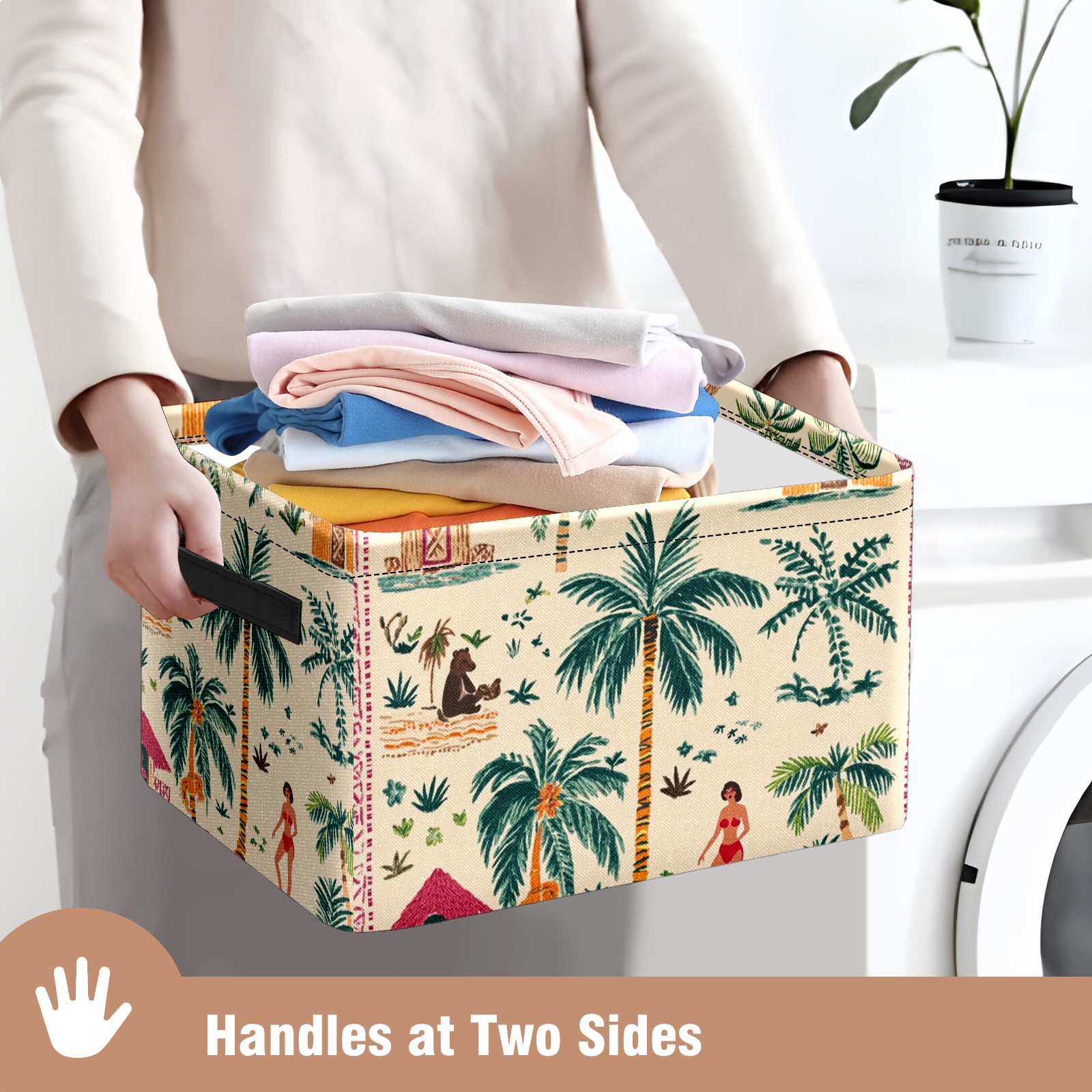 Foldable and Stackable Fabric Storage Basket for Home Organization with Handles, Decorative Closet Bins for Shelves and Laundry Storage( Vintage)