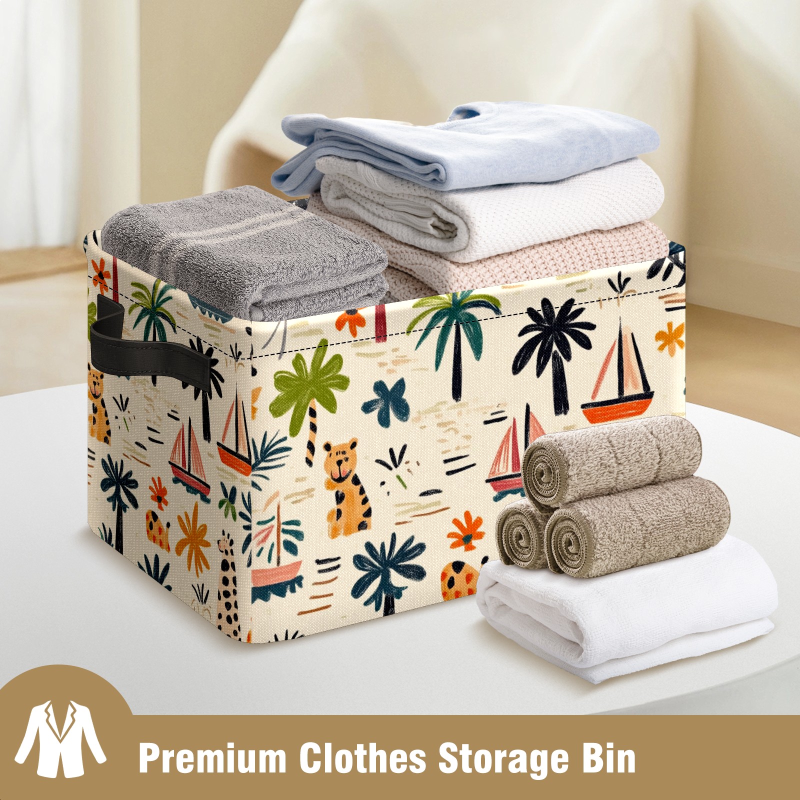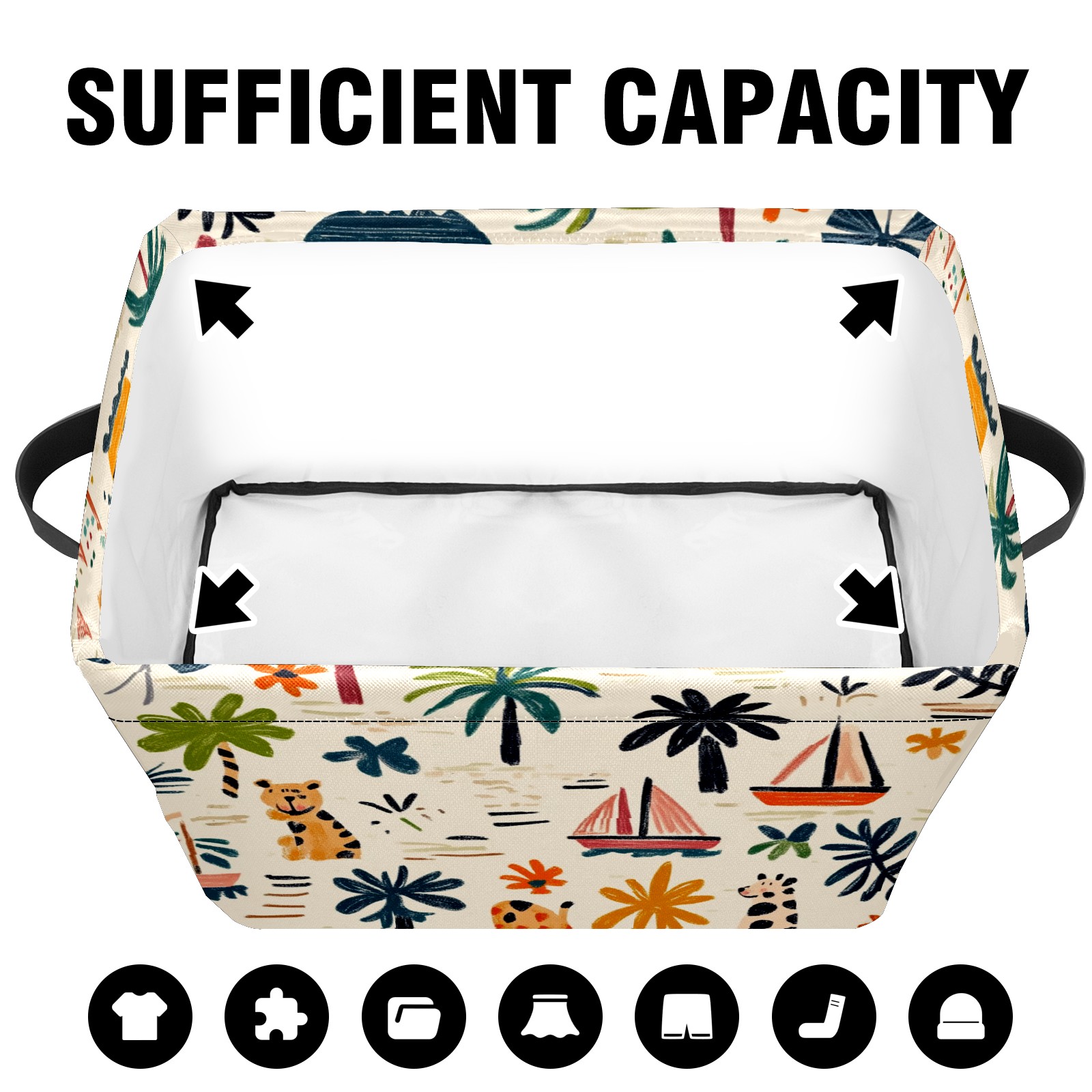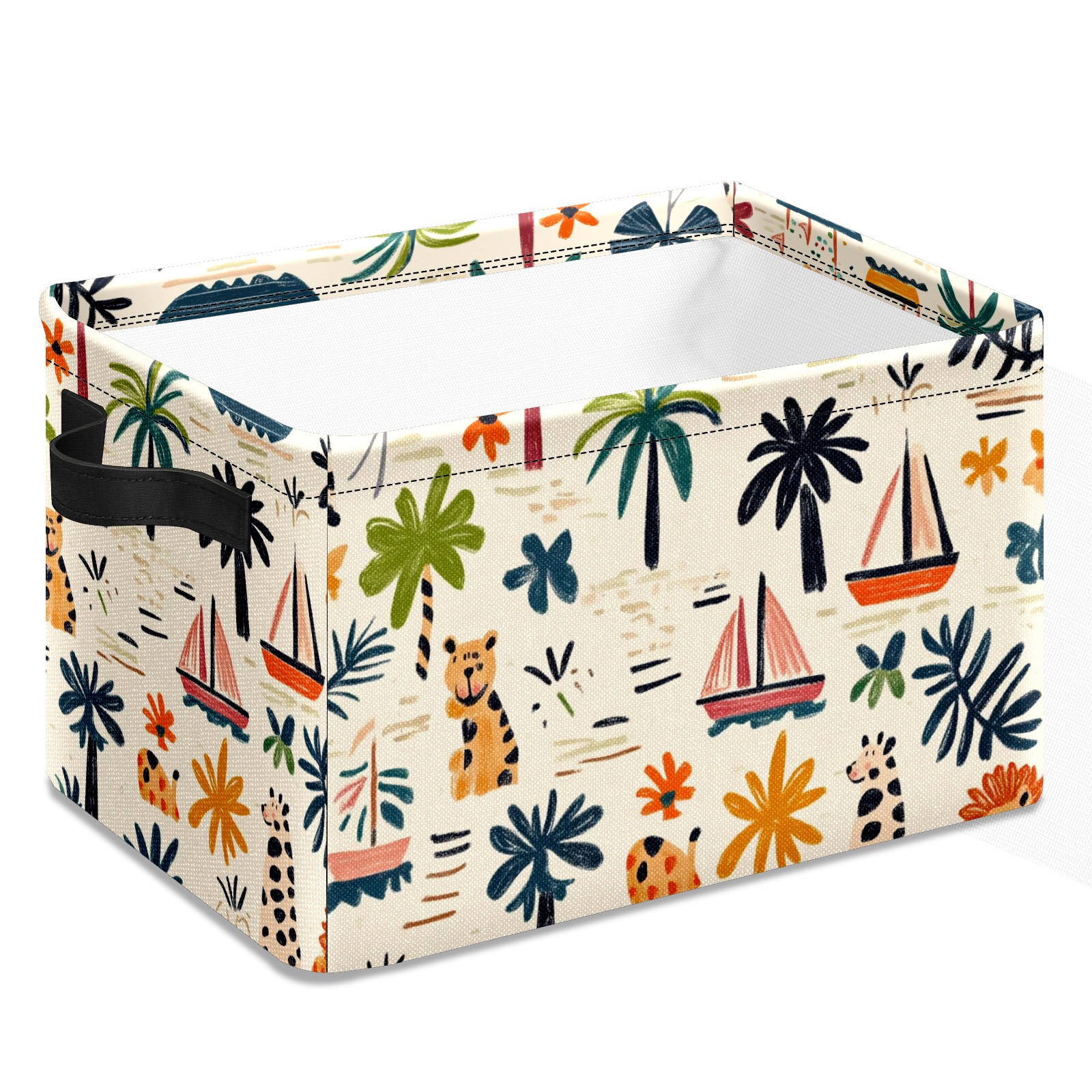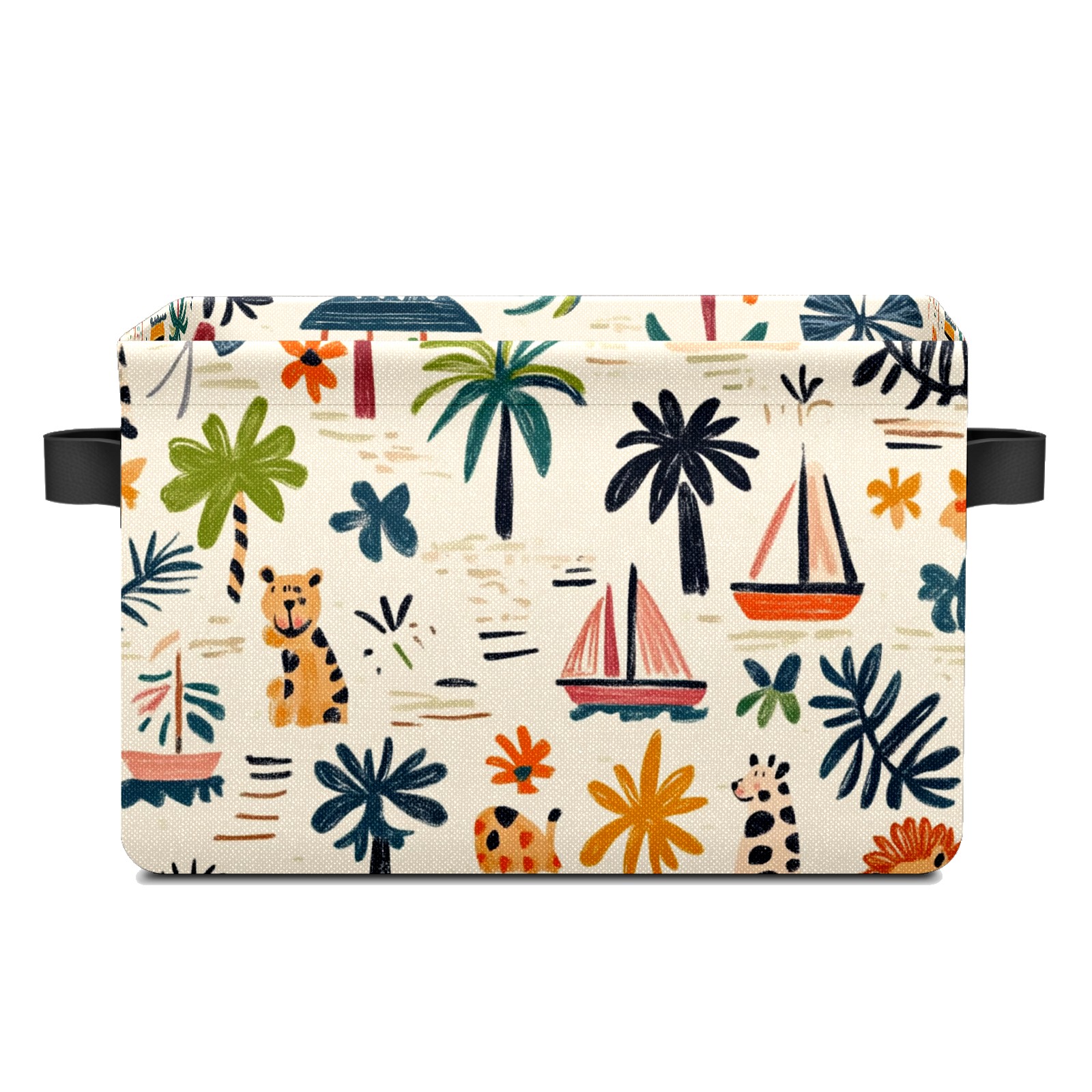 Foldable and Stackable Fabric Storage Basket for Home Organization with Handles, Decorative Closet Bins for Shelves and Laundry Storage( Palm Trees Boats And Lions)