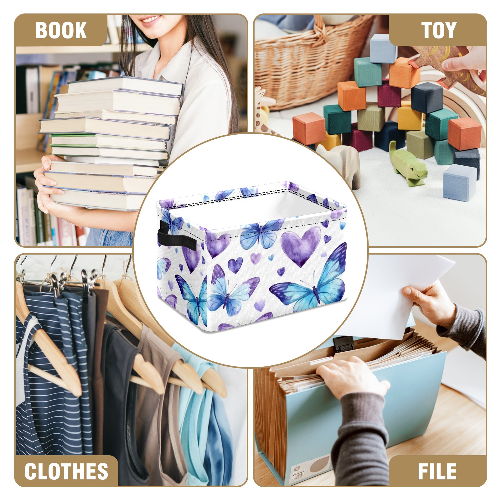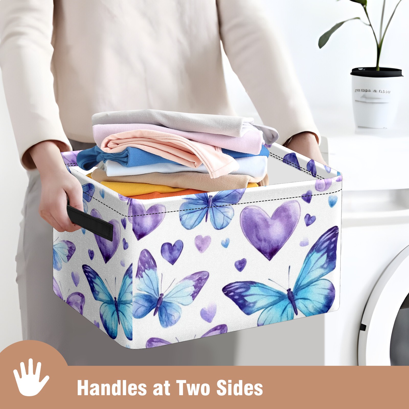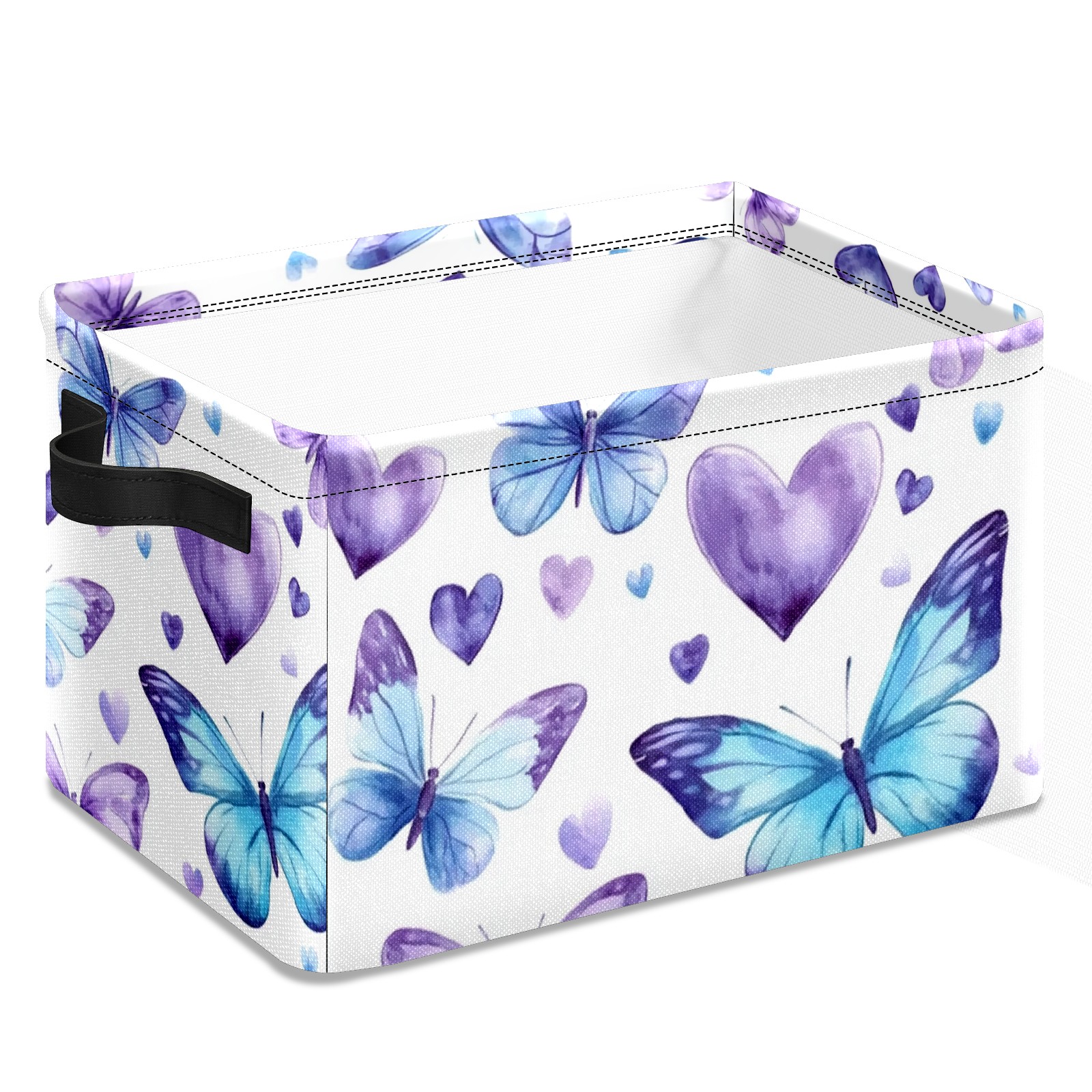 Foldable and Stackable Fabric Storage Basket for Home Organization with Handles, Decorative Closet Bins for Shelves and Laundry Storage( Watercolor Butterfly)