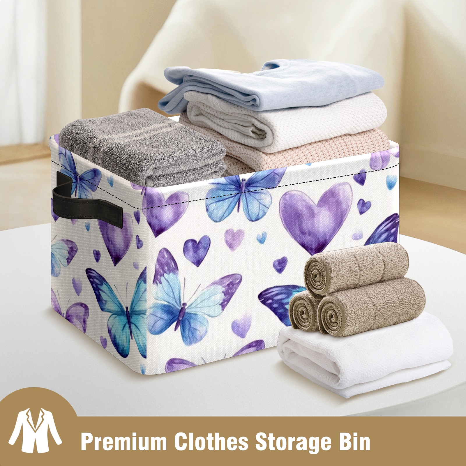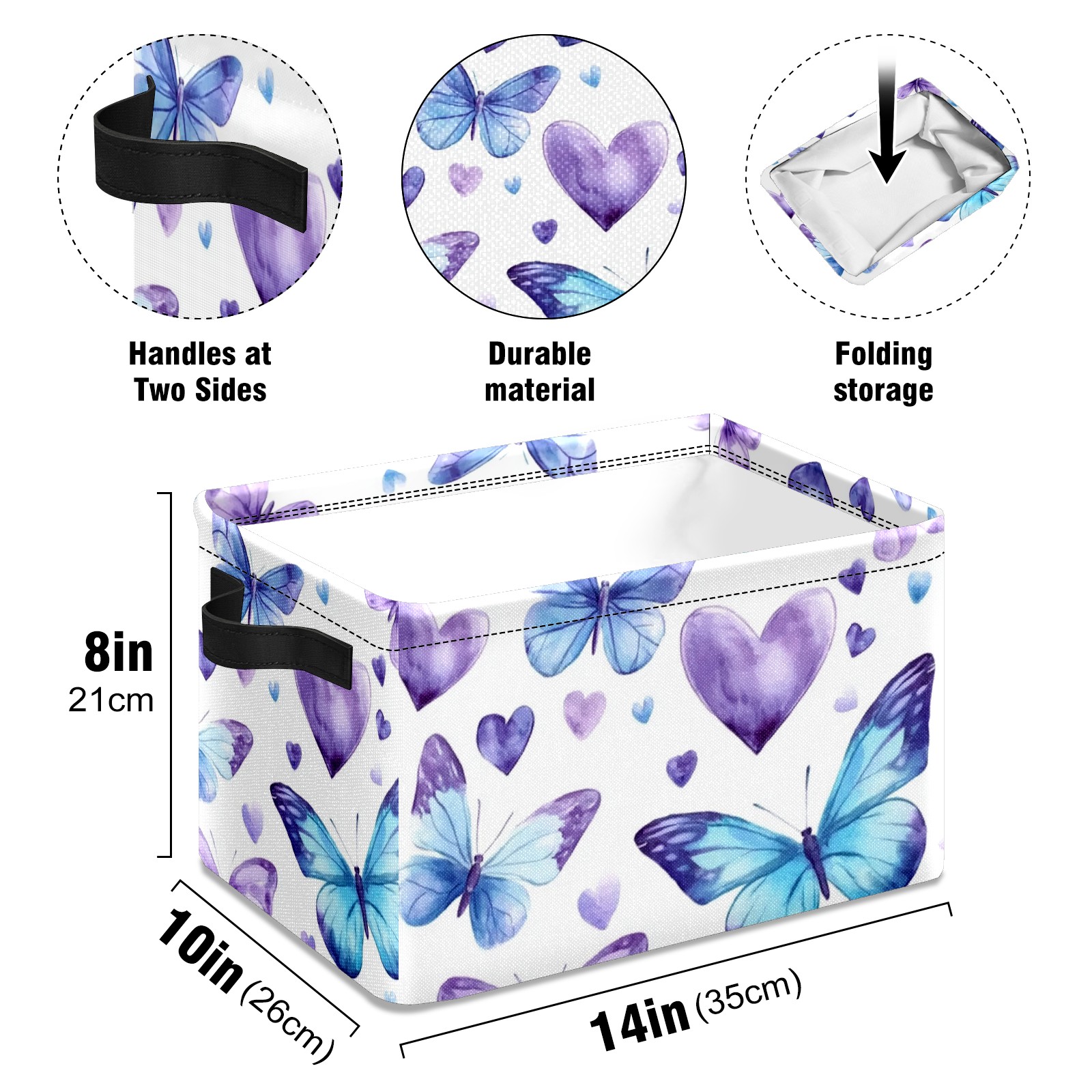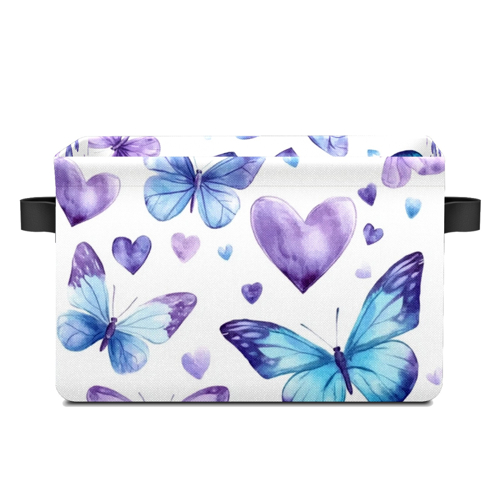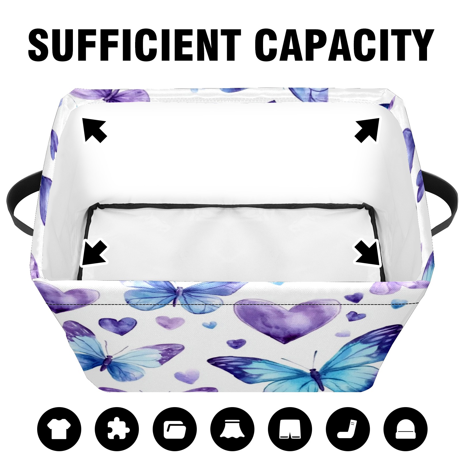 Foldable and Stackable Fabric Storage Basket for Home Organization with Handles, Decorative Closet Bins for Shelves and Laundry Storage( Watercolor Butterfly)