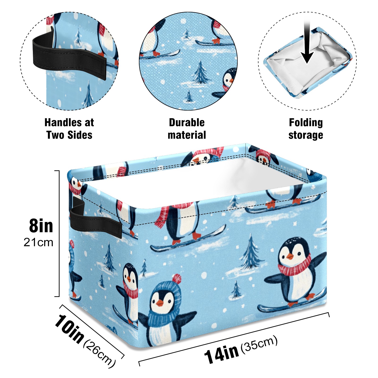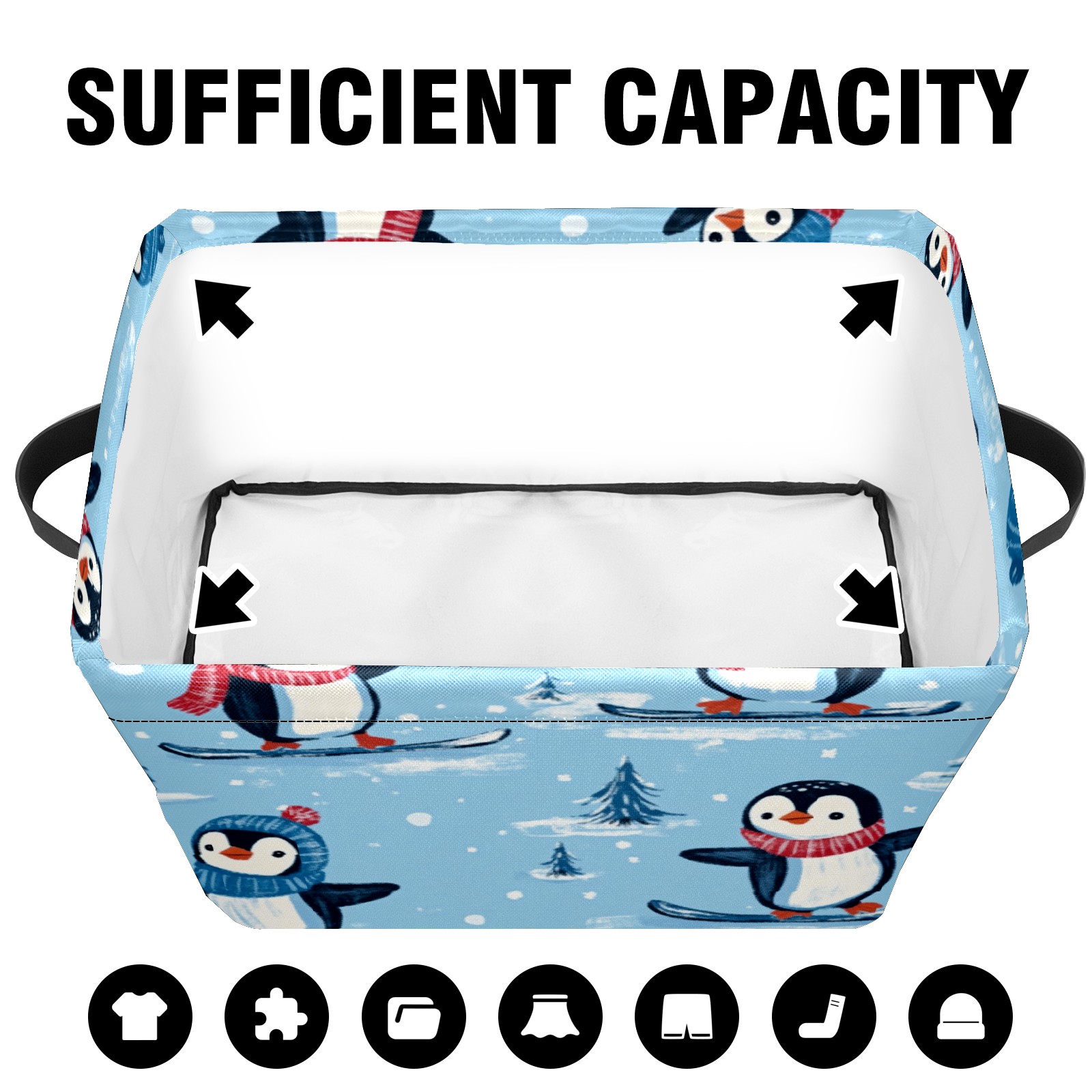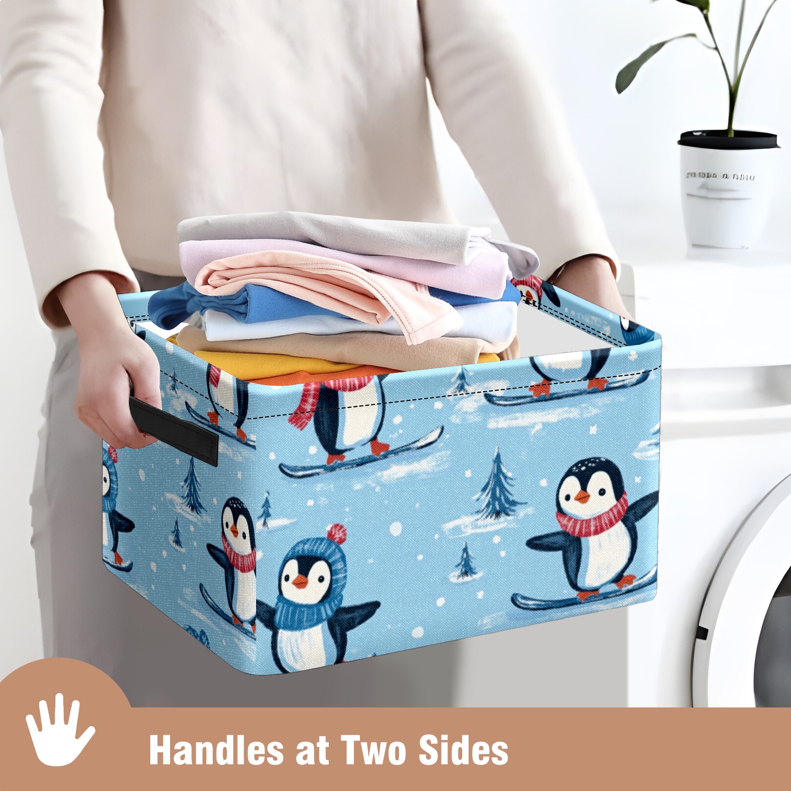 Foldable and Stackable Fabric Storage Basket for Home Organization with Handles, Decorative Closet Bins for Shelves and Laundry Storage( Penguins)
