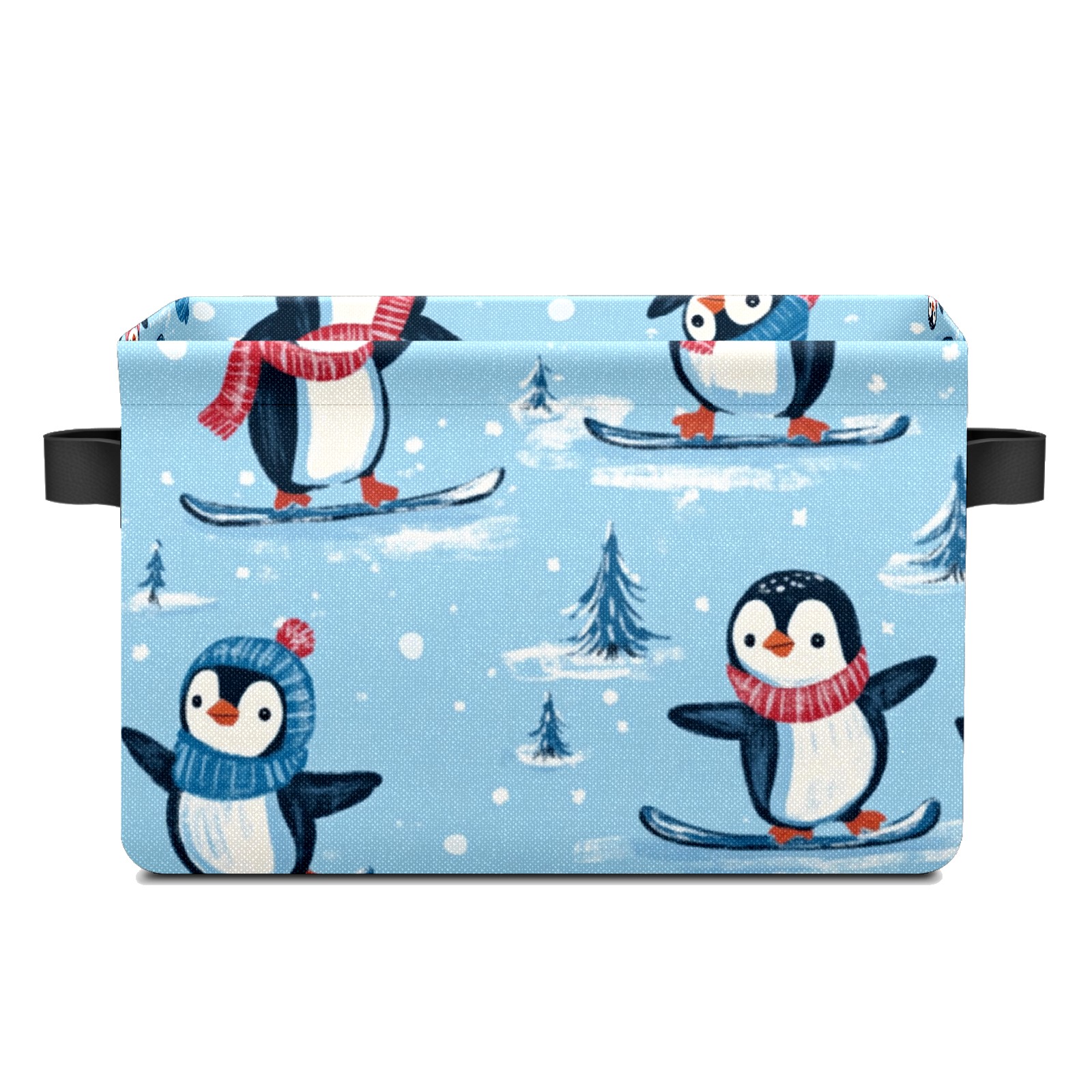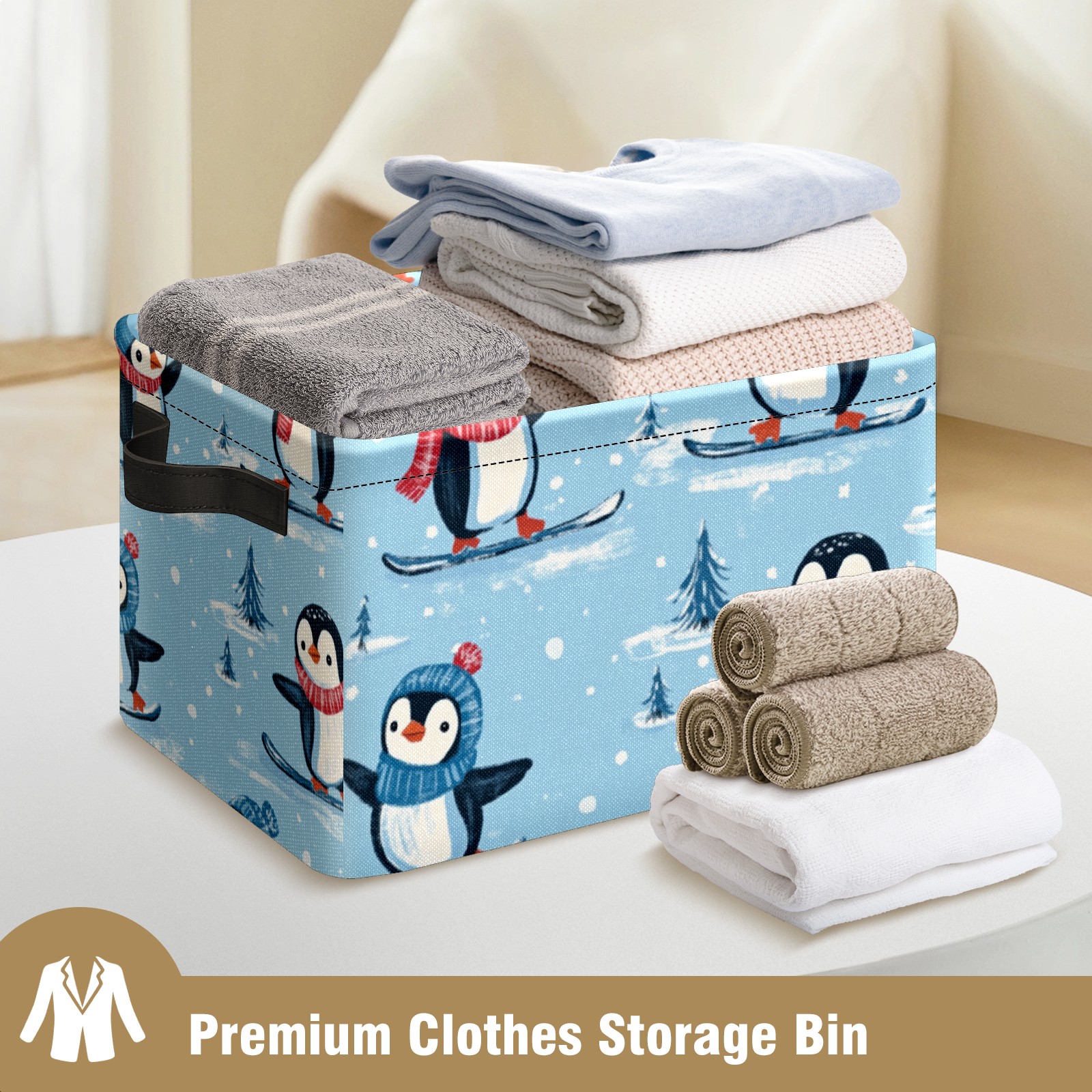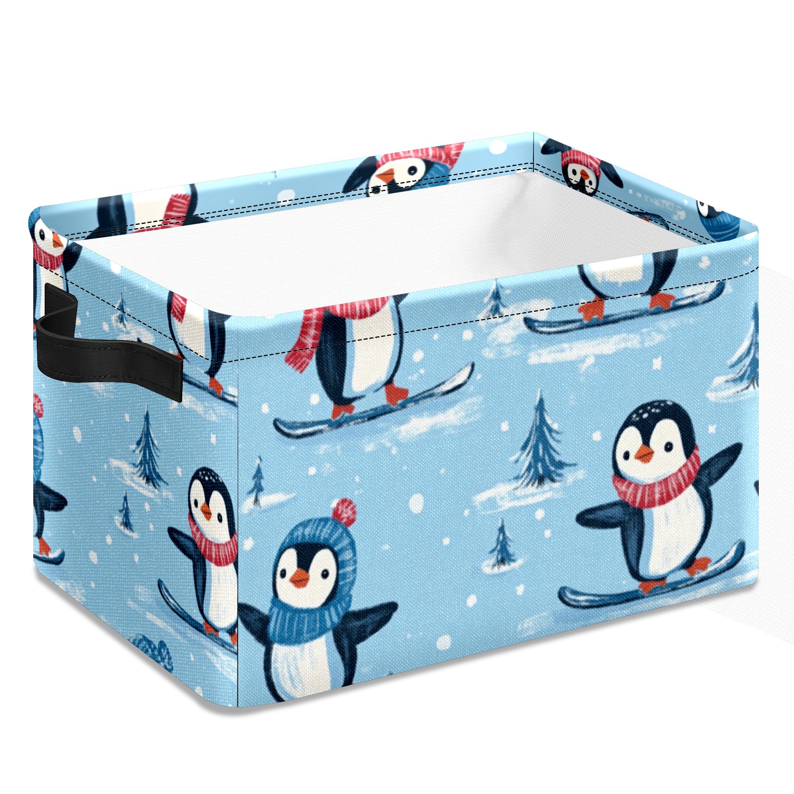 Foldable and Stackable Fabric Storage Basket for Home Organization with Handles, Decorative Closet Bins for Shelves and Laundry Storage( Penguins)